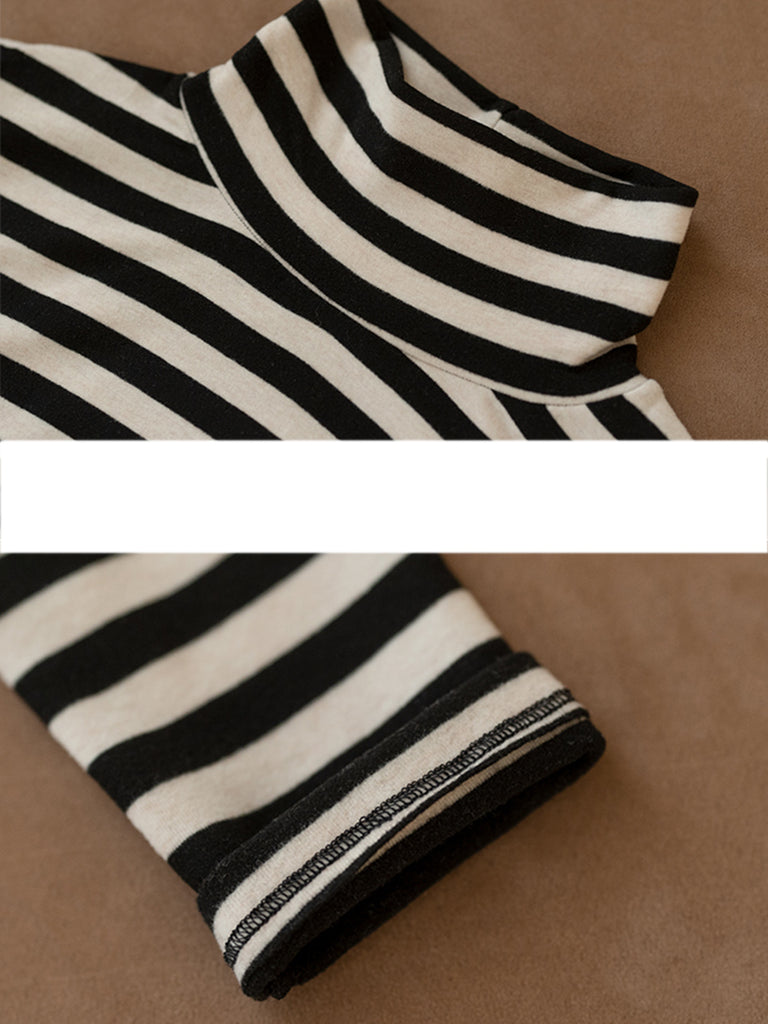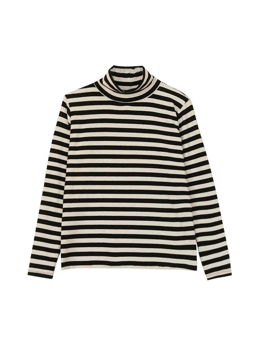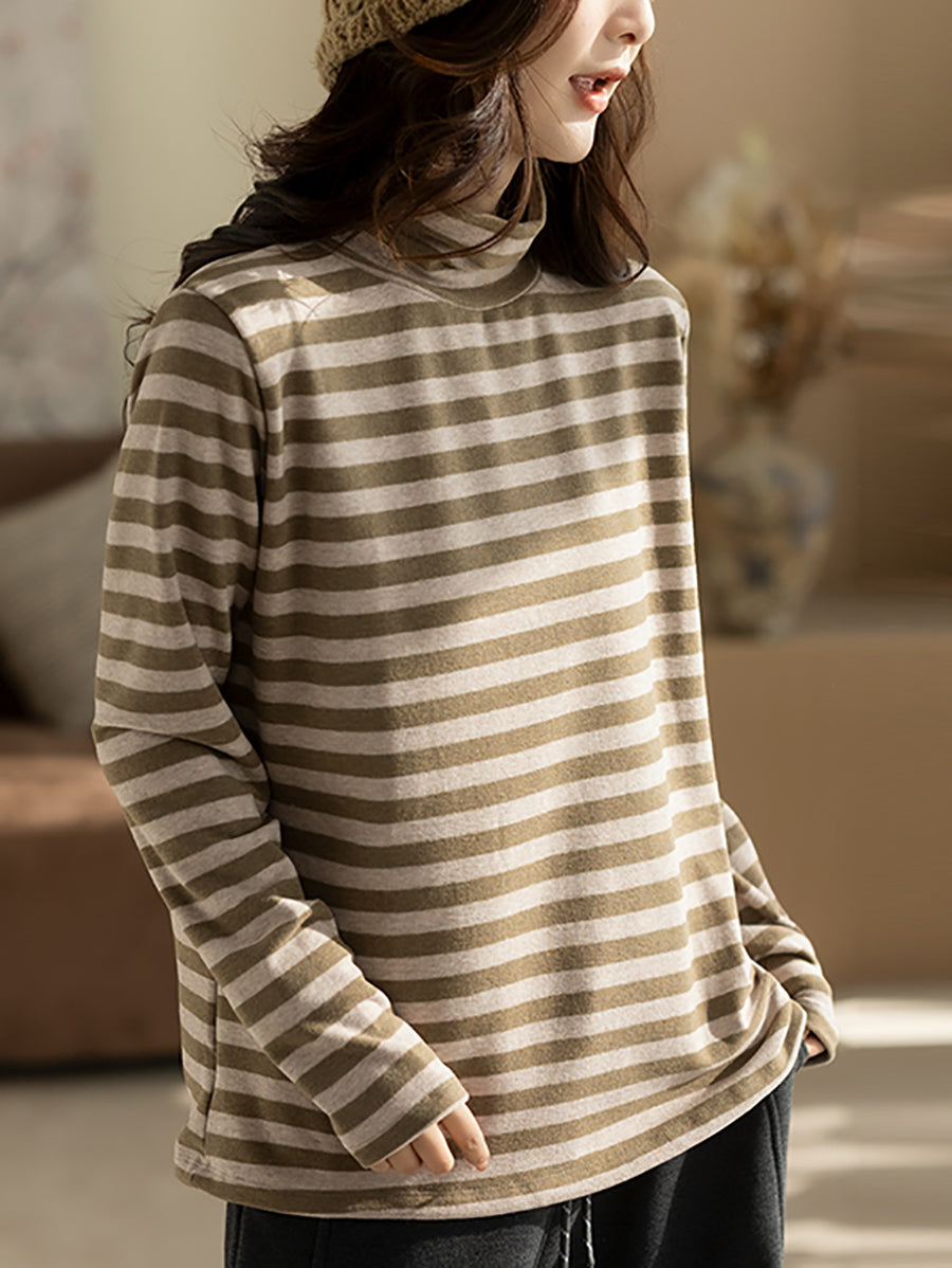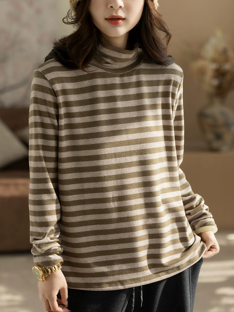 Women Vintage Autumn Stripe Turtleneck Blouse