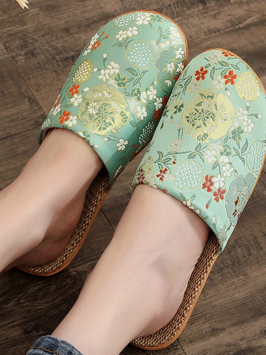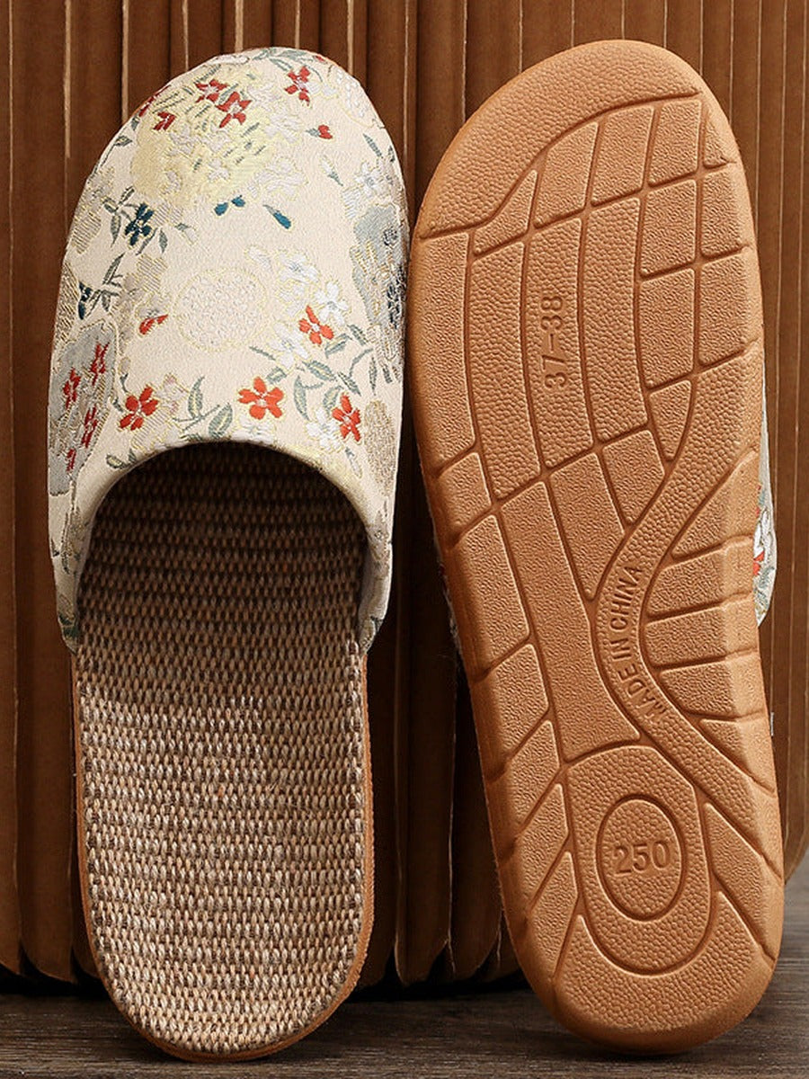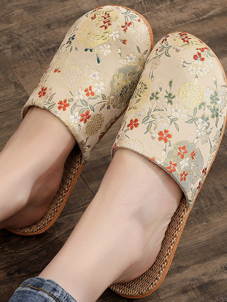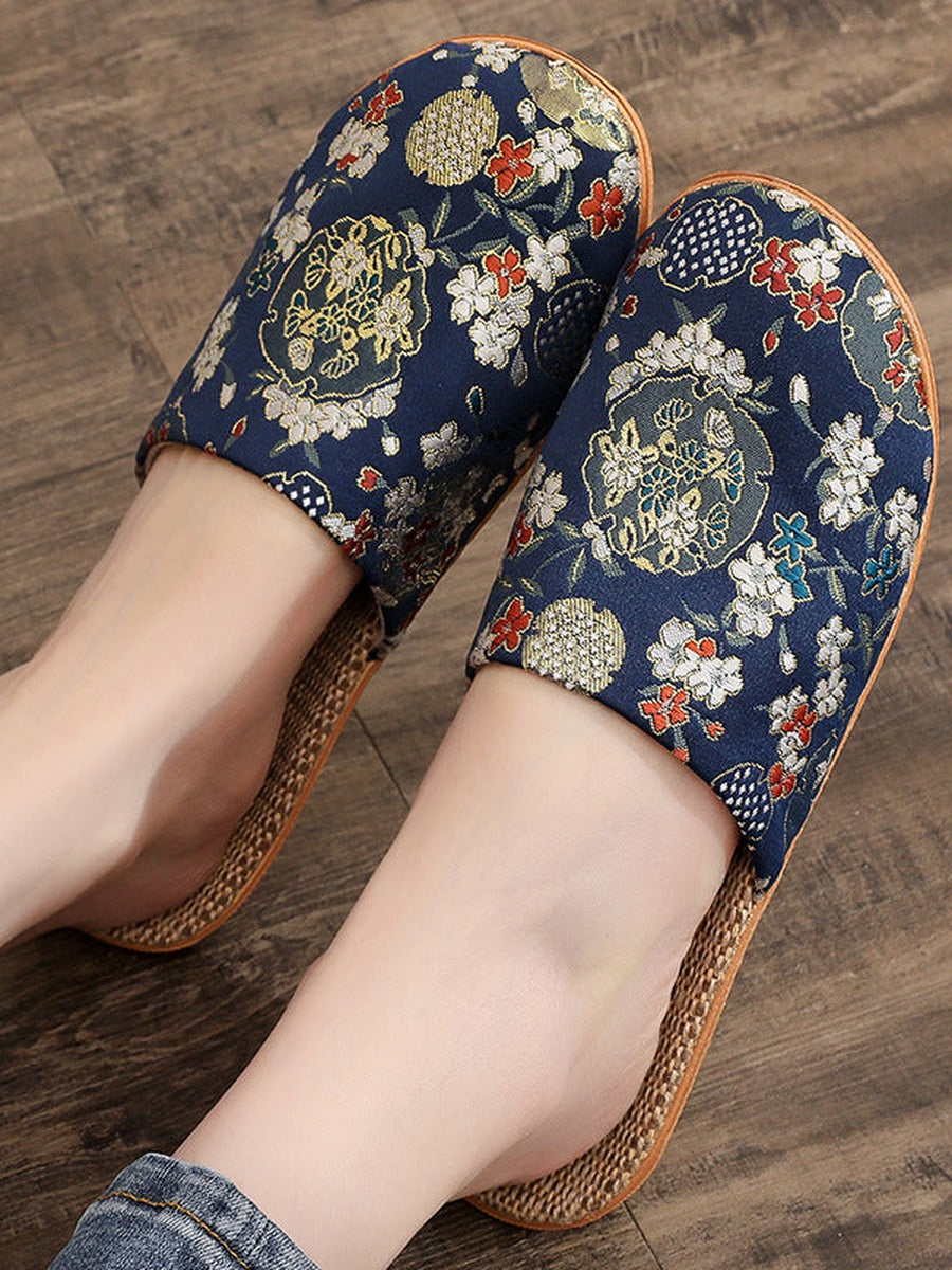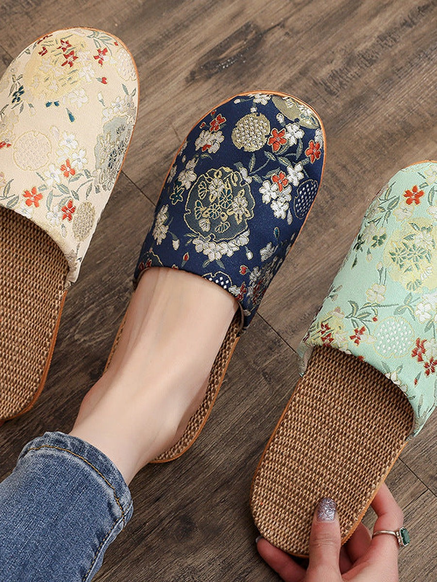 Women Vintage Chinese Style Embroidered Linen Slippers