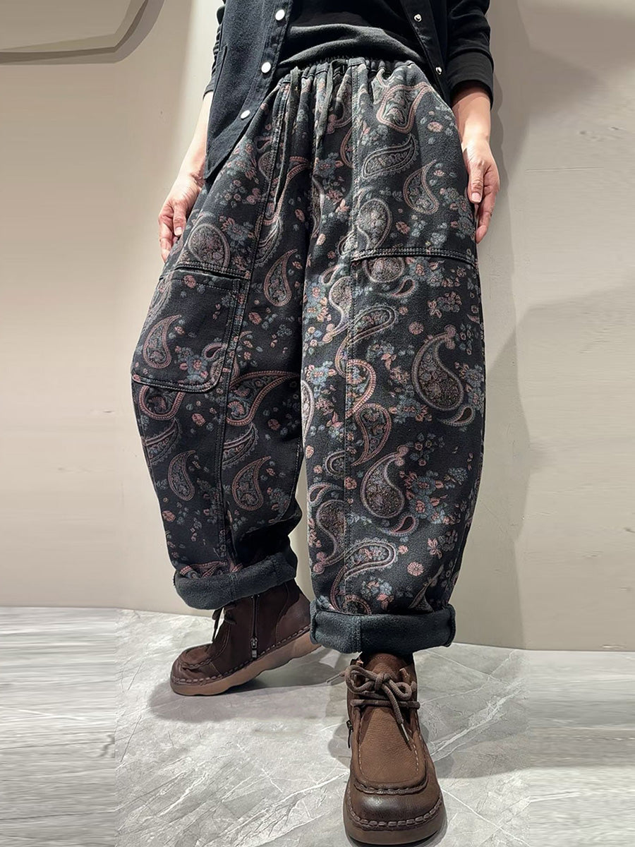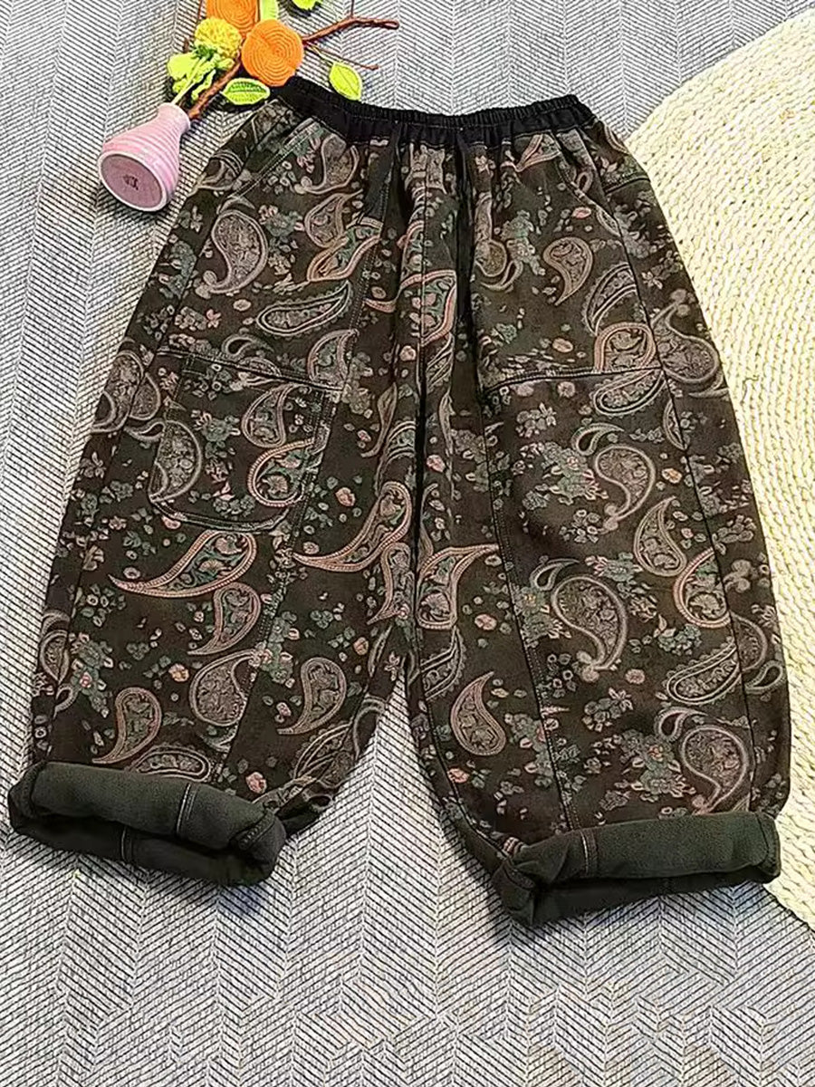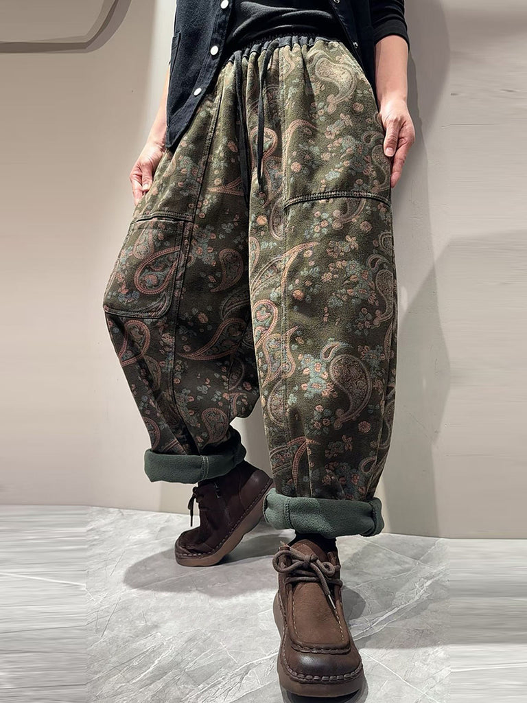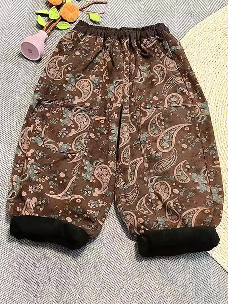 Women Vintage Flower Fleece-lined Harem Pants