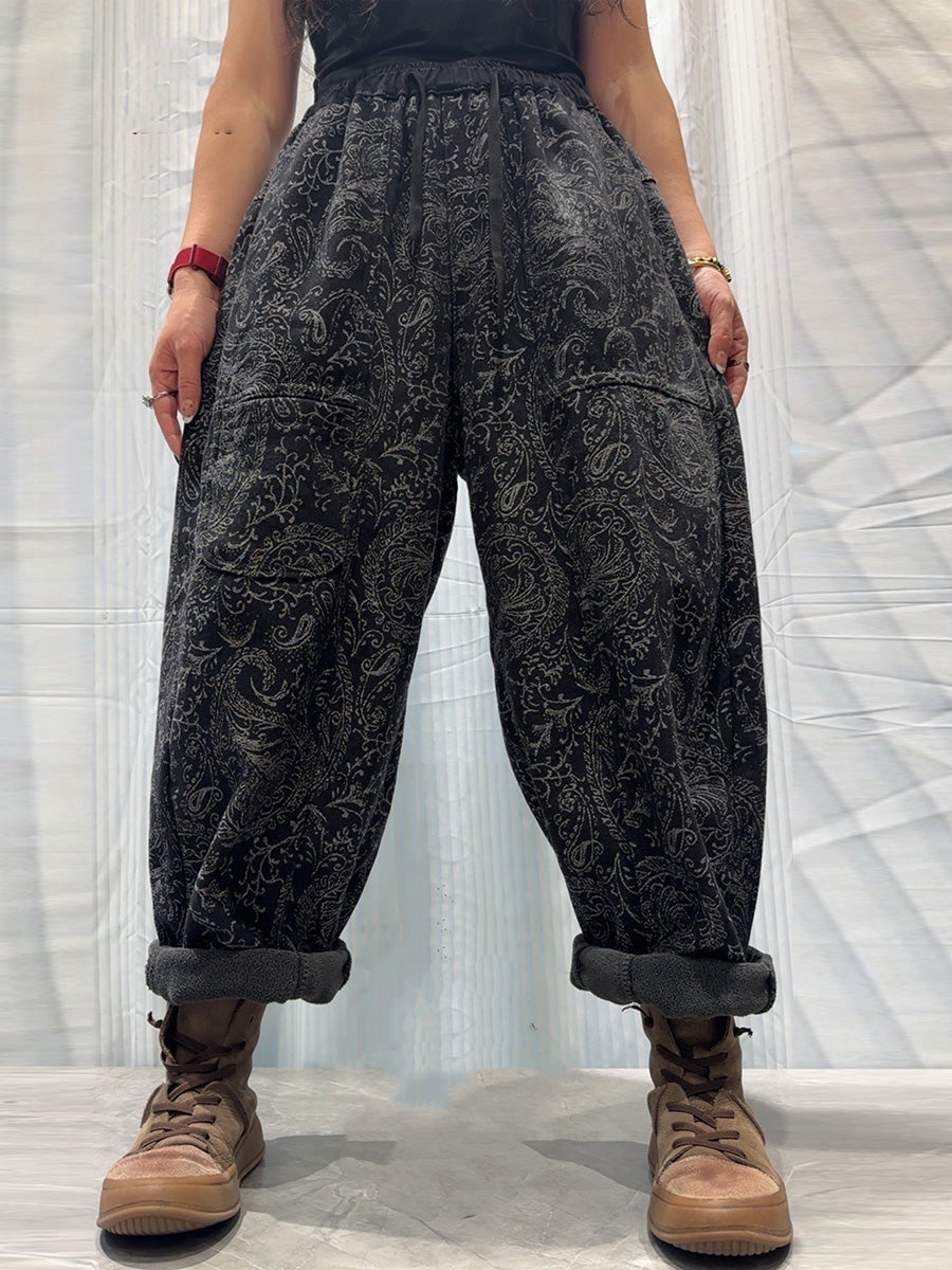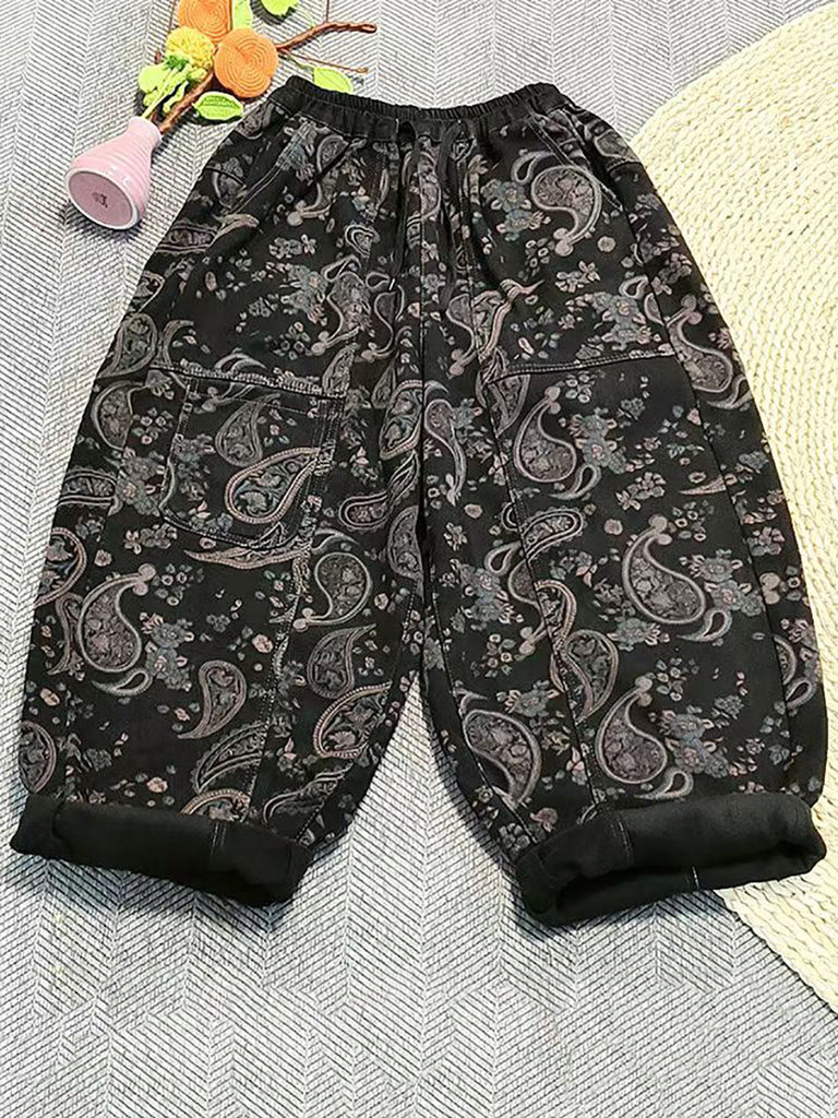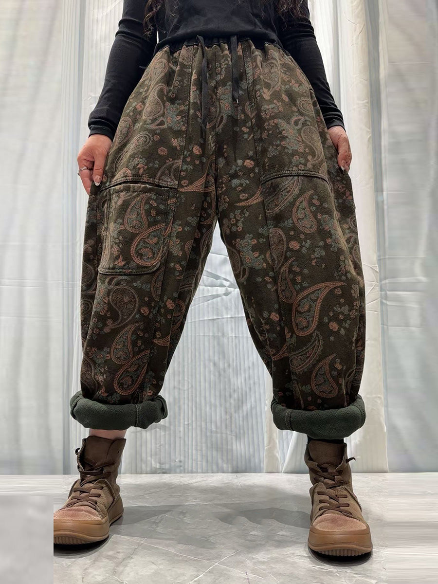 Women Vintage Flower Fleece-lined Harem Pants