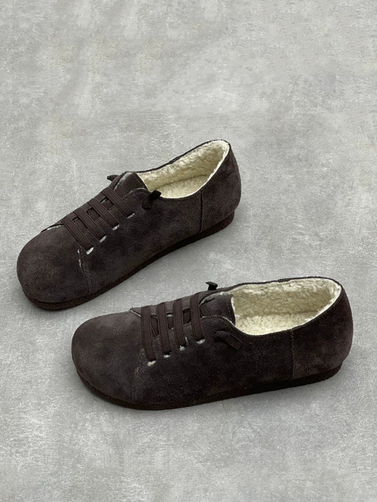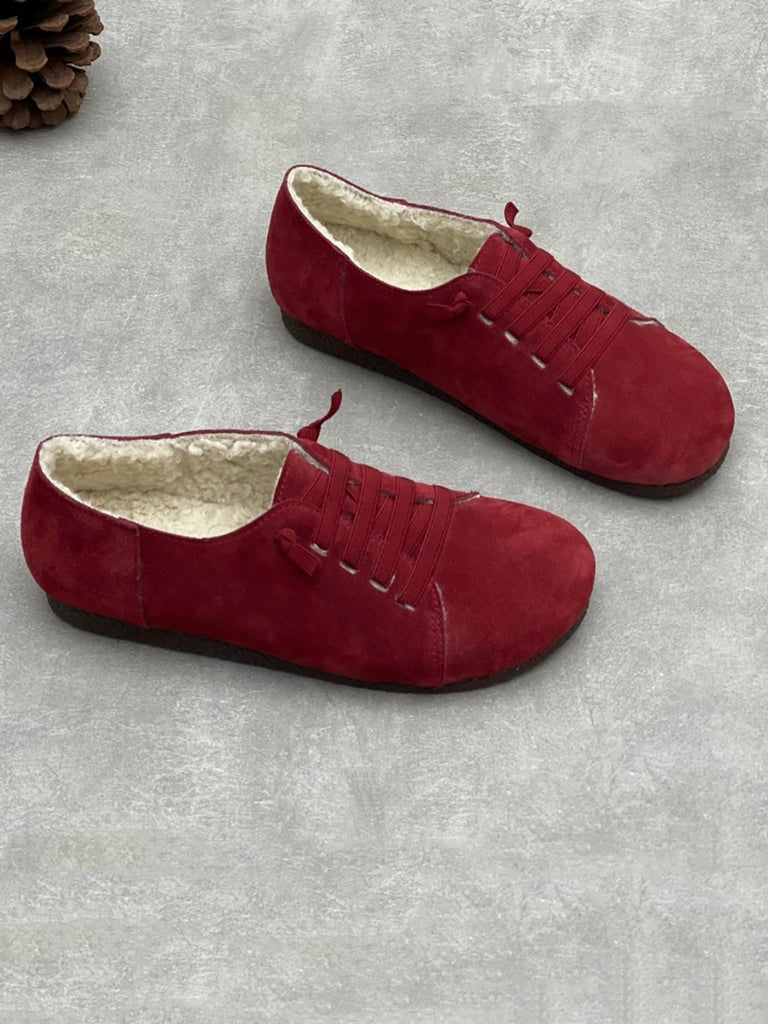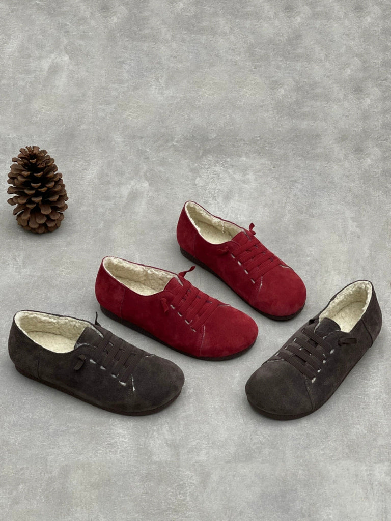 Women Vintage Genuine Leather Fleece-lined Shoes