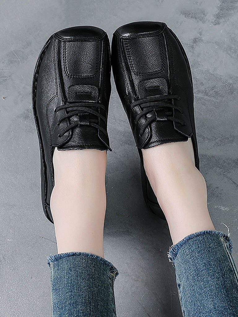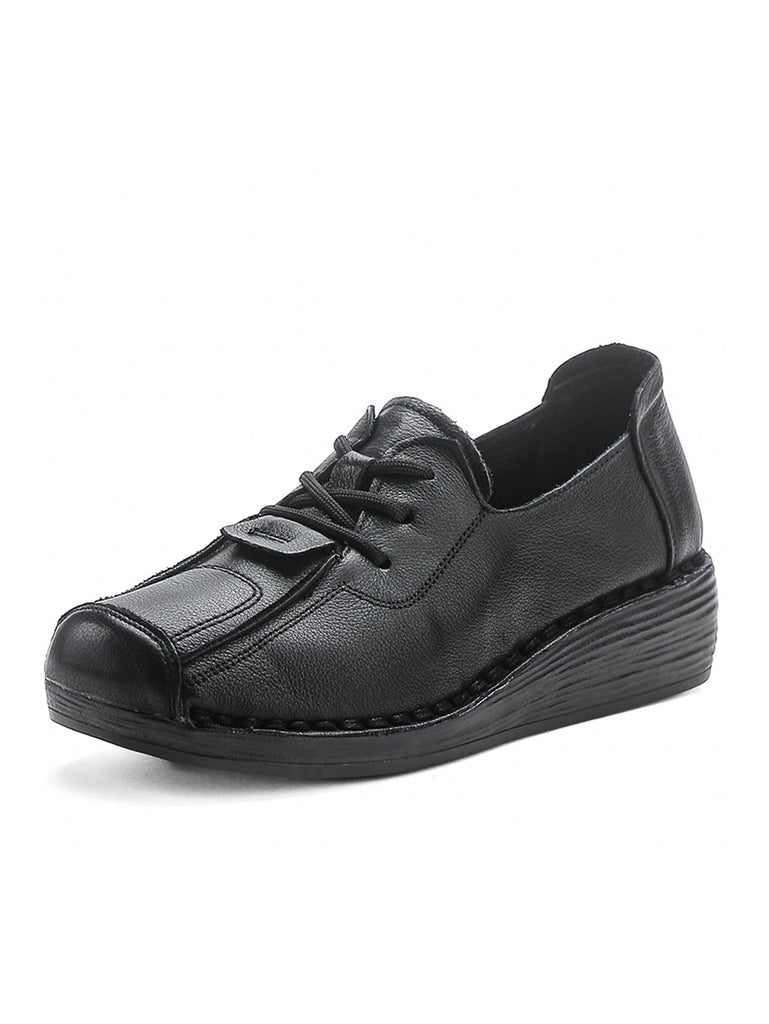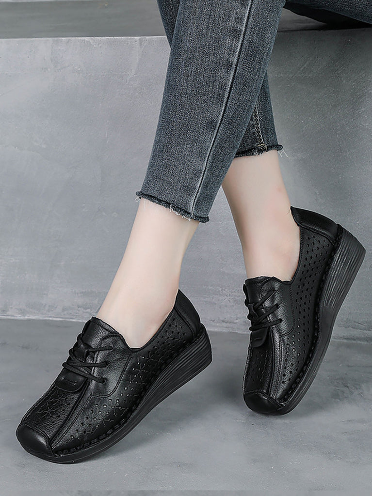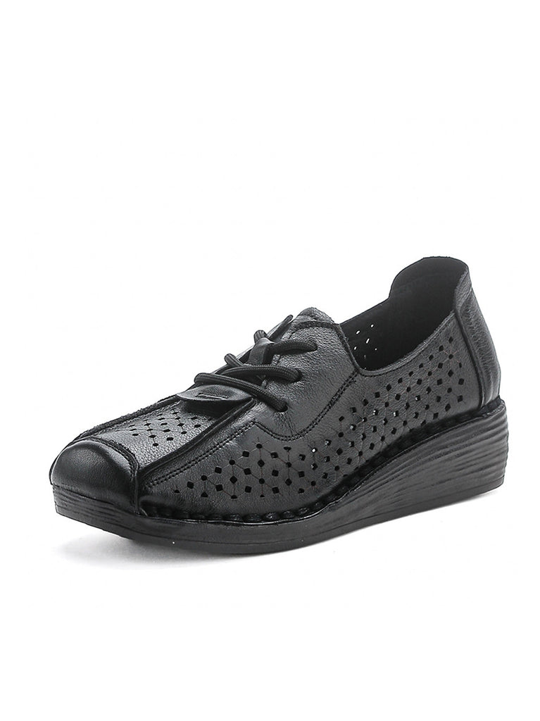 Women Vintage Genuine Leather Hollow Out Platform Shoes