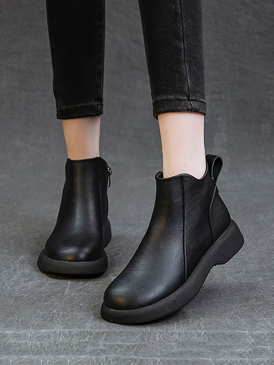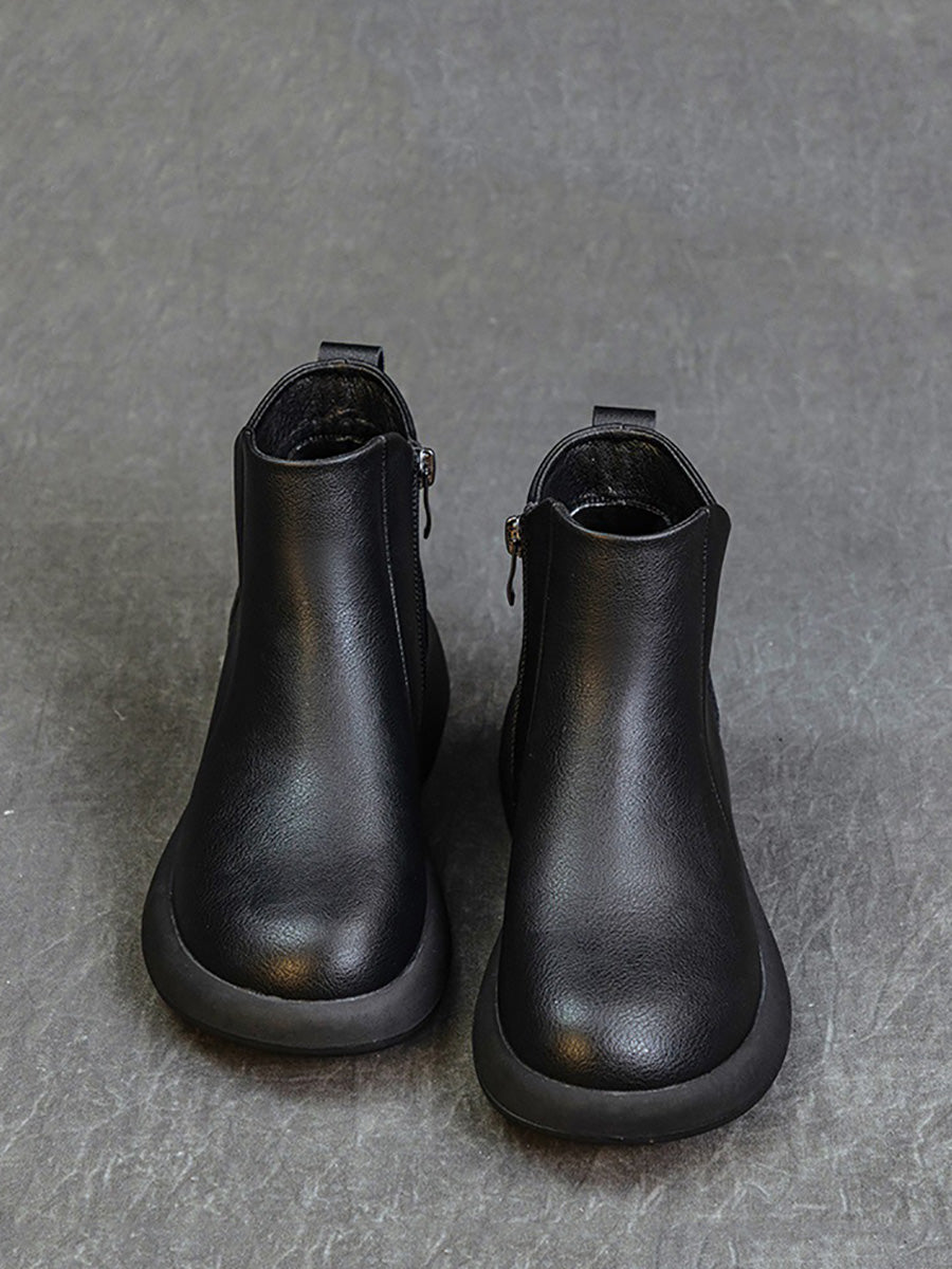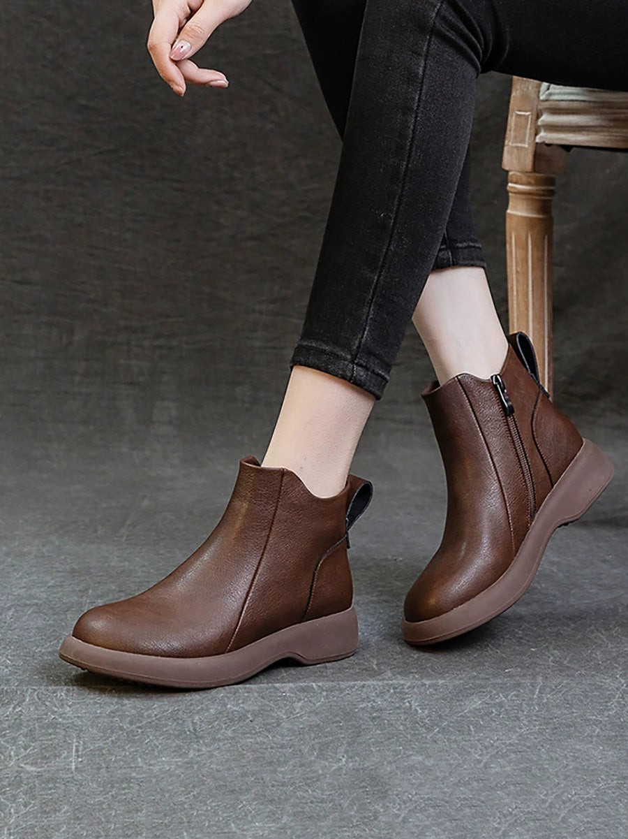 Women Vintage Genuine Leather Low Heel Boots