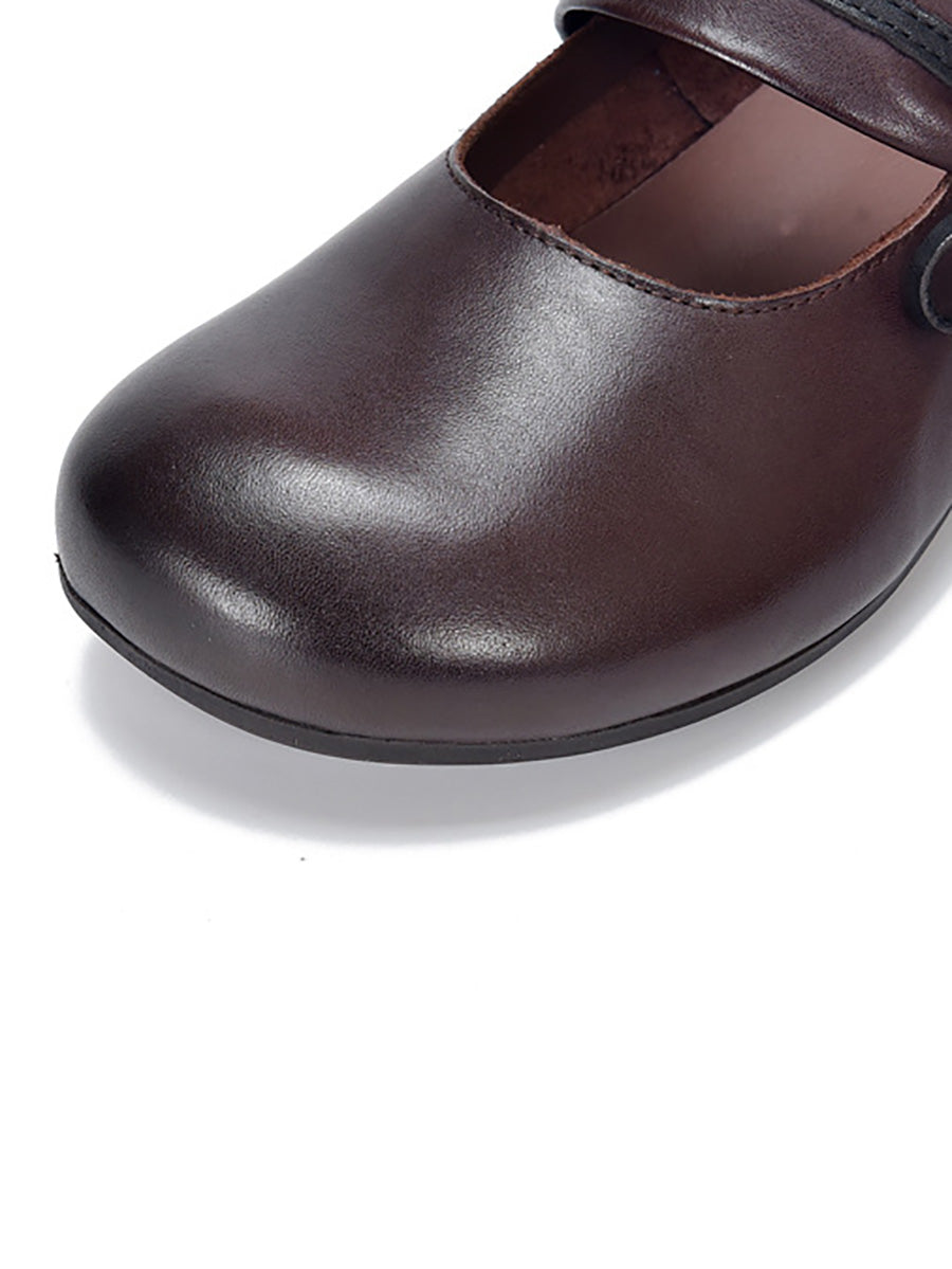 Women Vintage Genuine Leather Mid-Heel Shoes