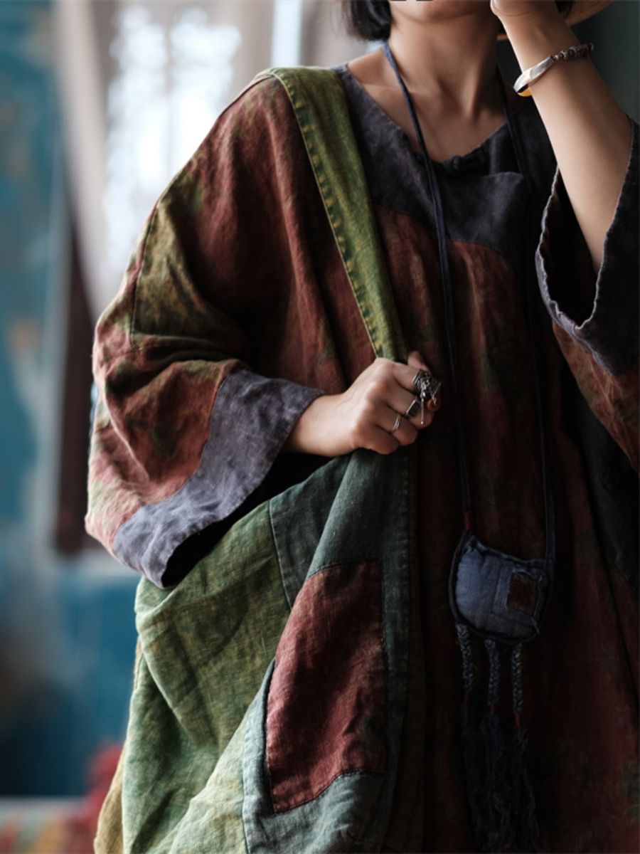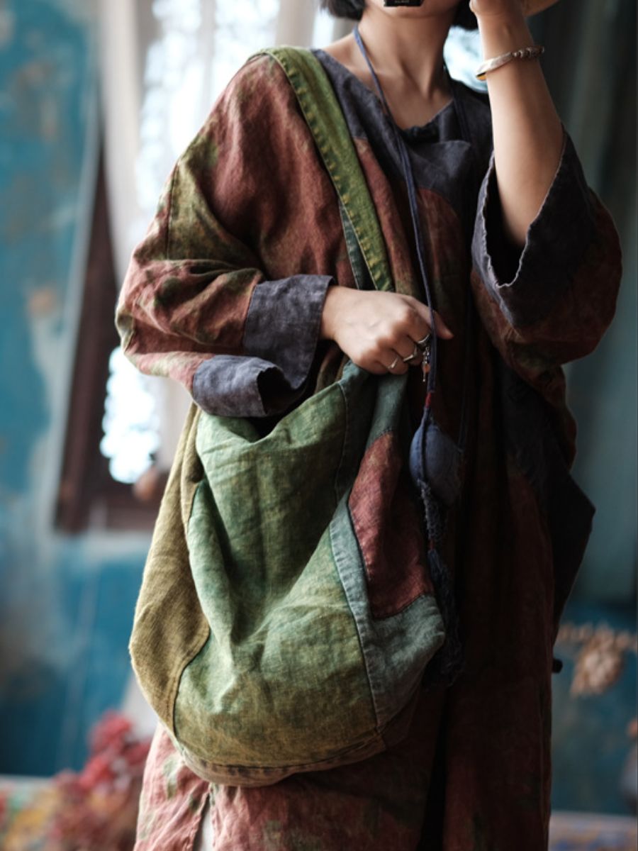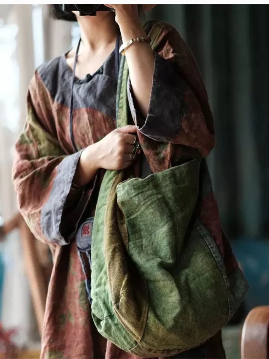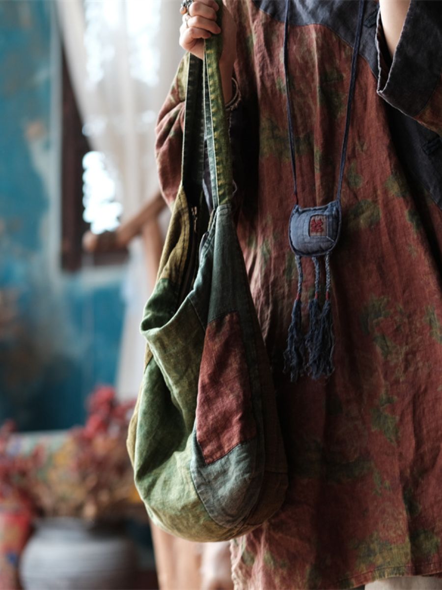 Women Vintage Green Patchwork Cotton Shoulder Bag