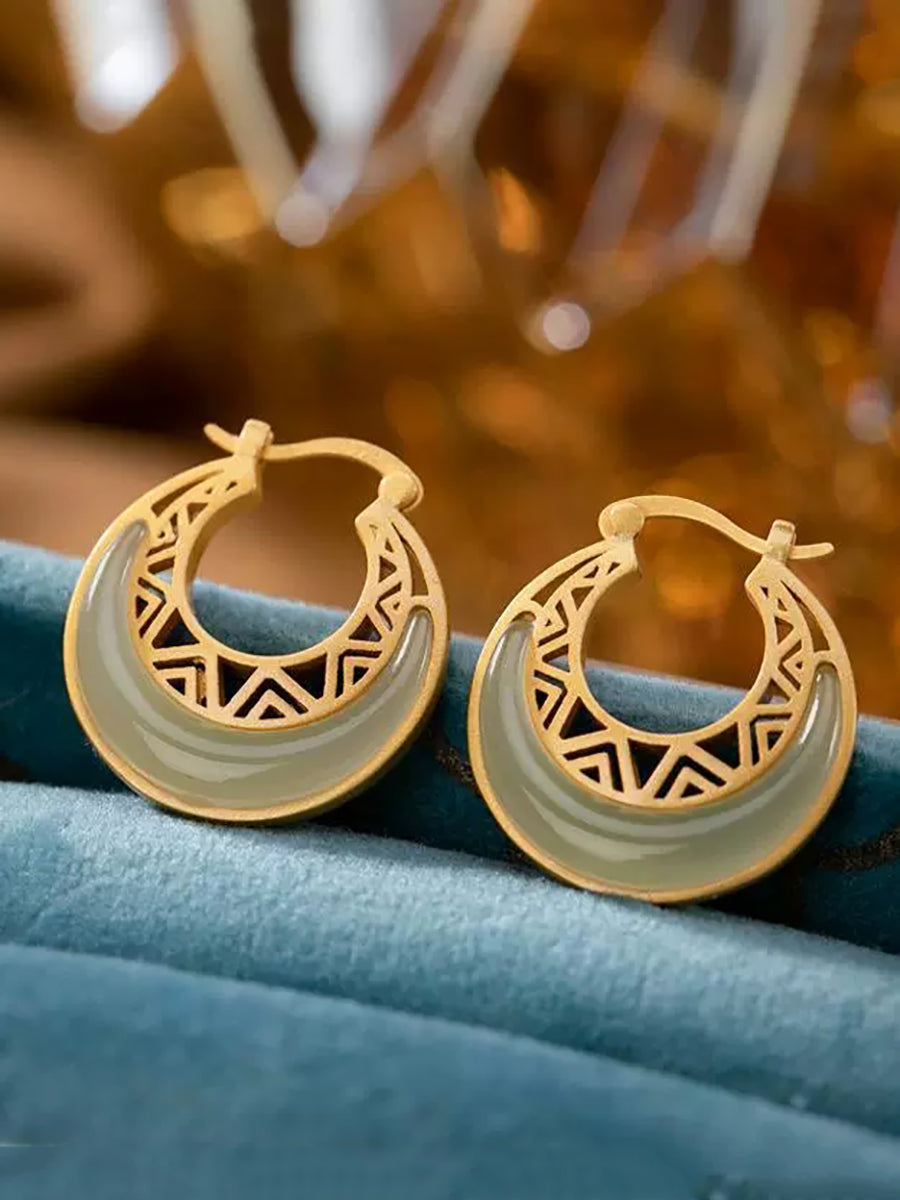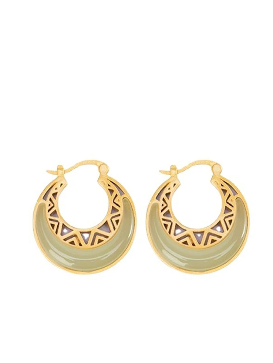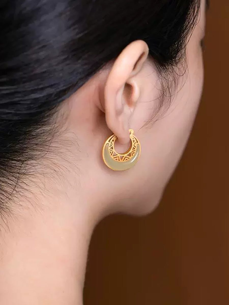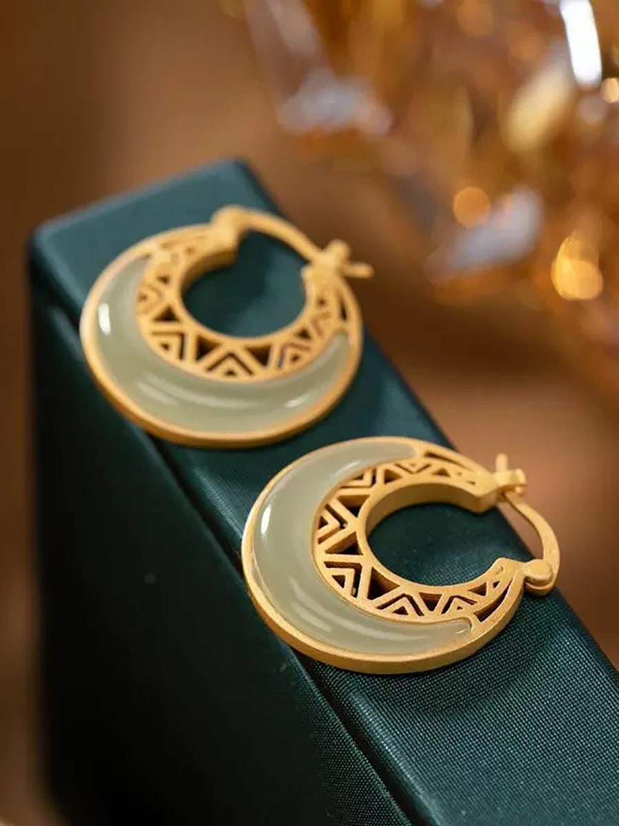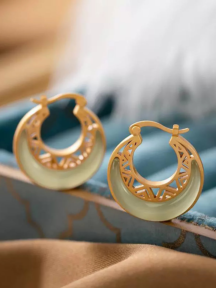 Women Vintage Jade Moon Alloy Earrings