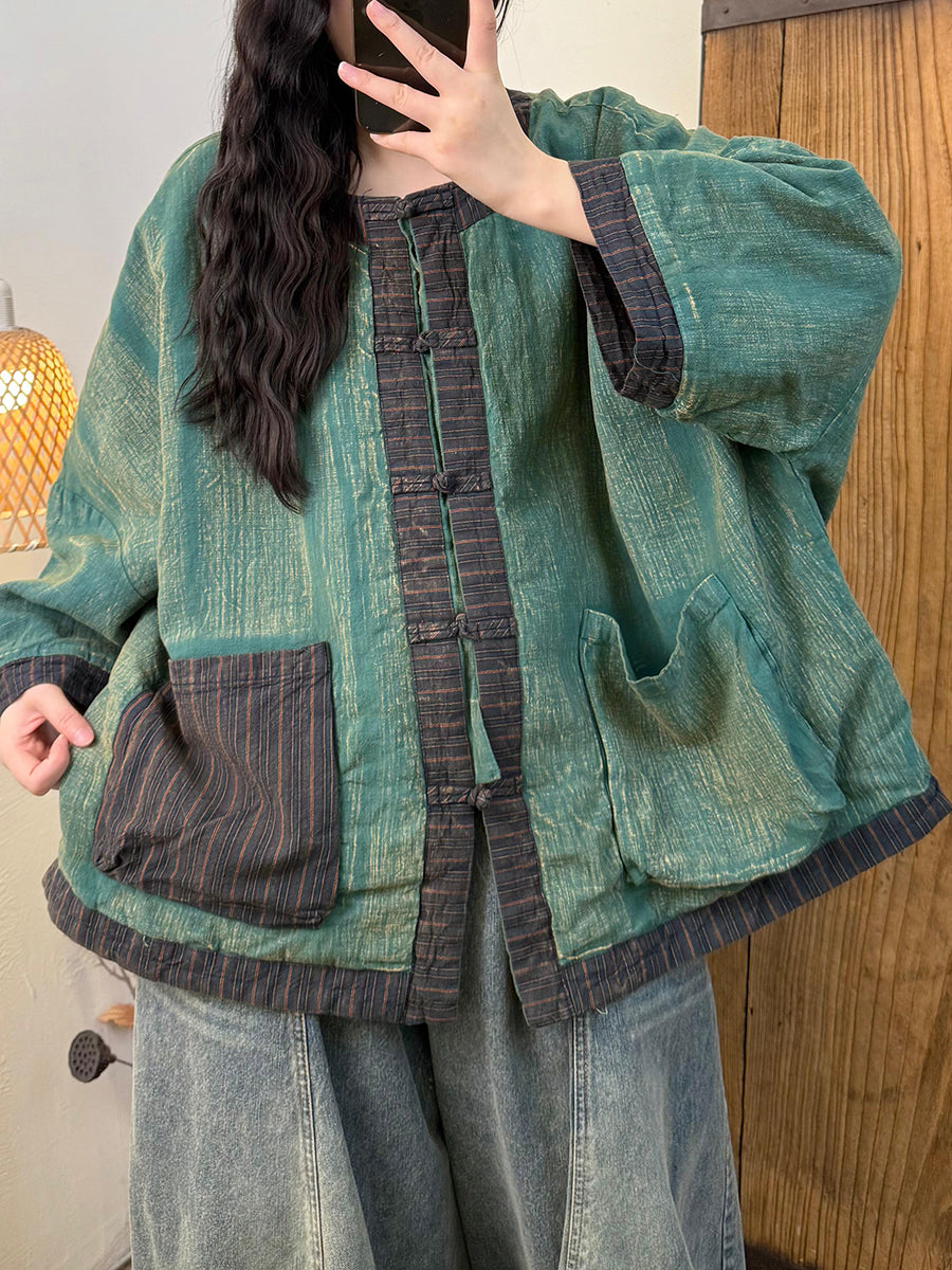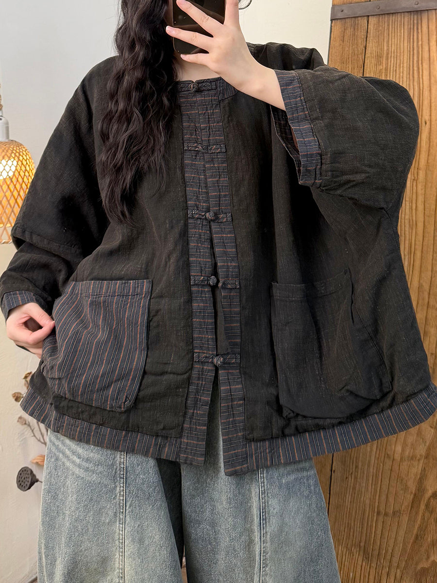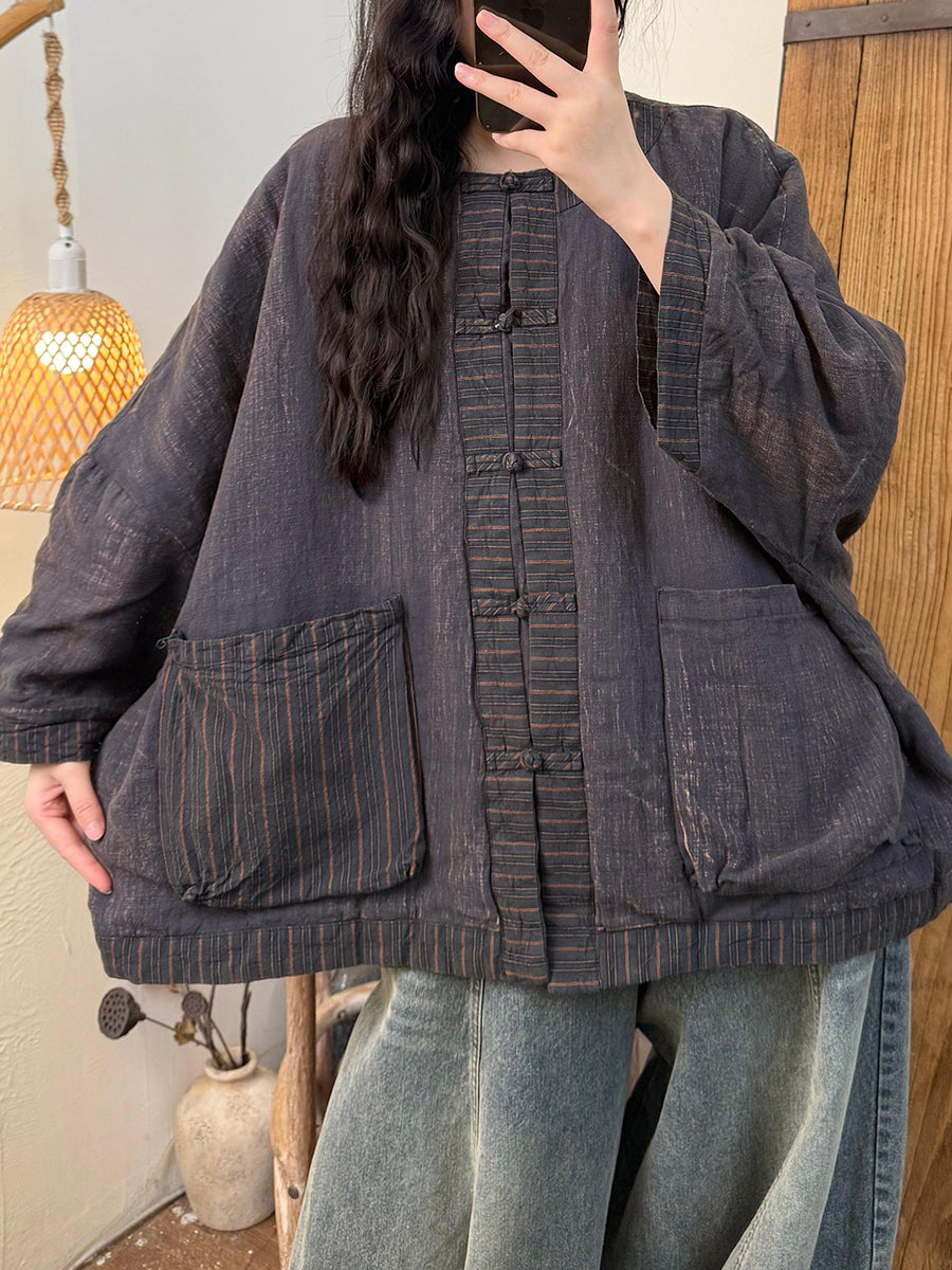 Crafted from premium linen, this vintage-inspired padded coat features a timeless striped pattern that effortlessly bridges seasons. The relaxed O-neck collar and distinctive raglan sleeves deliver both comfort and retro sophistication, while full-length sleeves provide essential warmth. Designed for autumn and winter wear, this piece combines classic tailoring with contemporary ease, making it an essential layering staple for the discerning wardrobe.