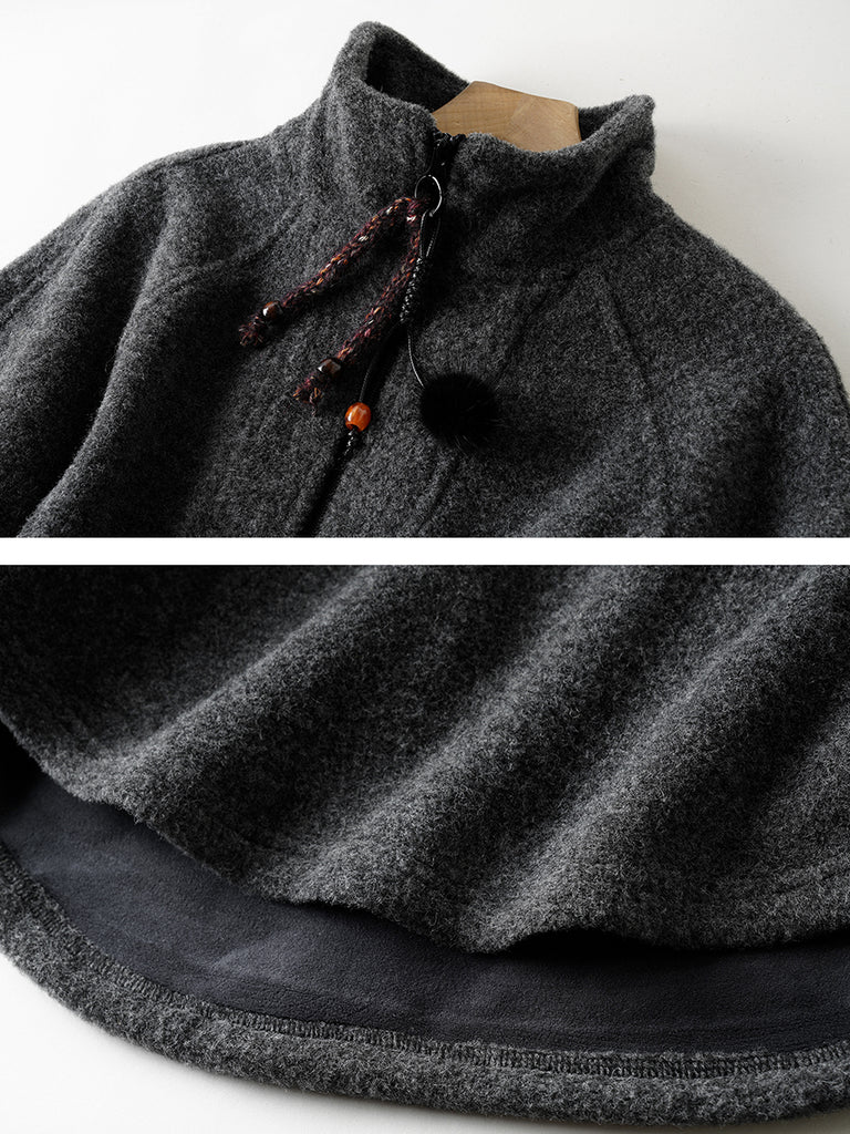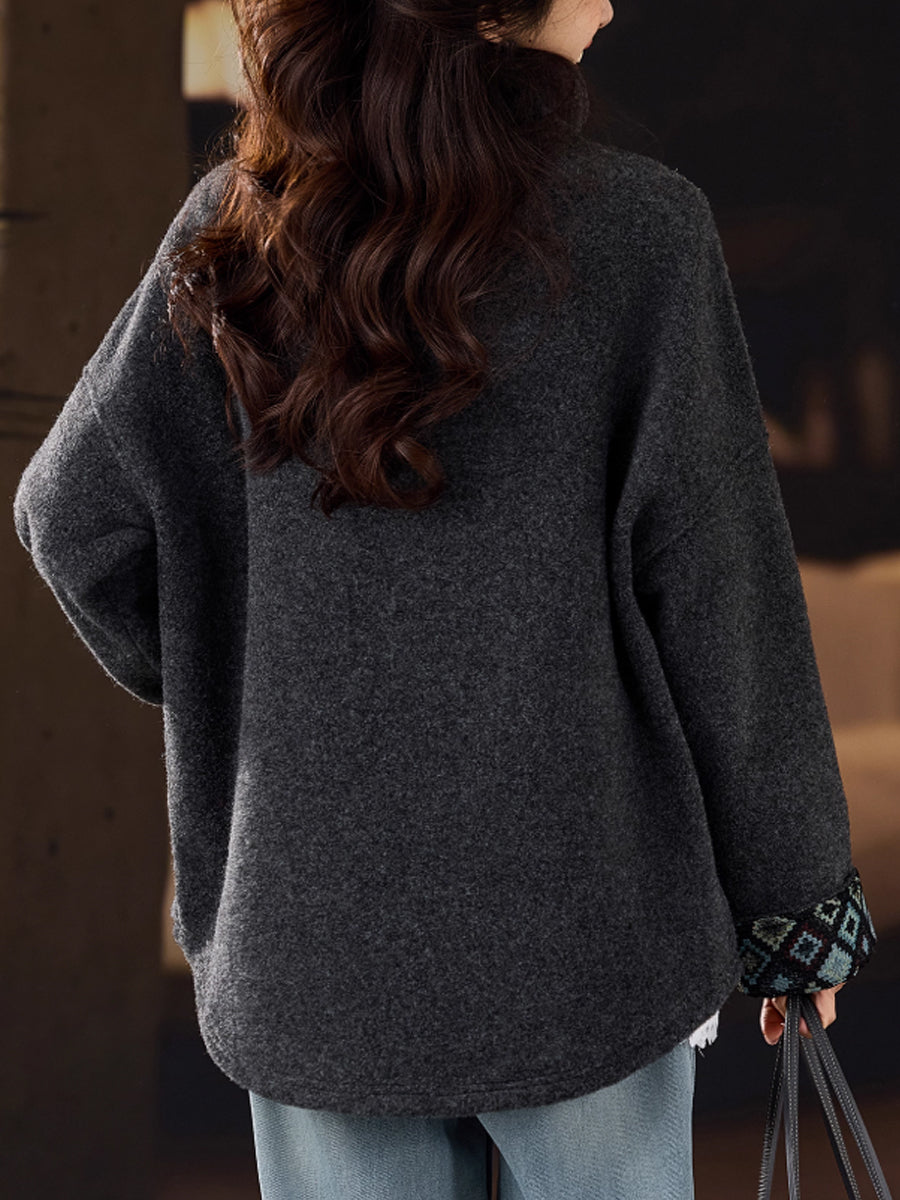 Women Winter Casual Fleece-lined Stand Collar Blouse