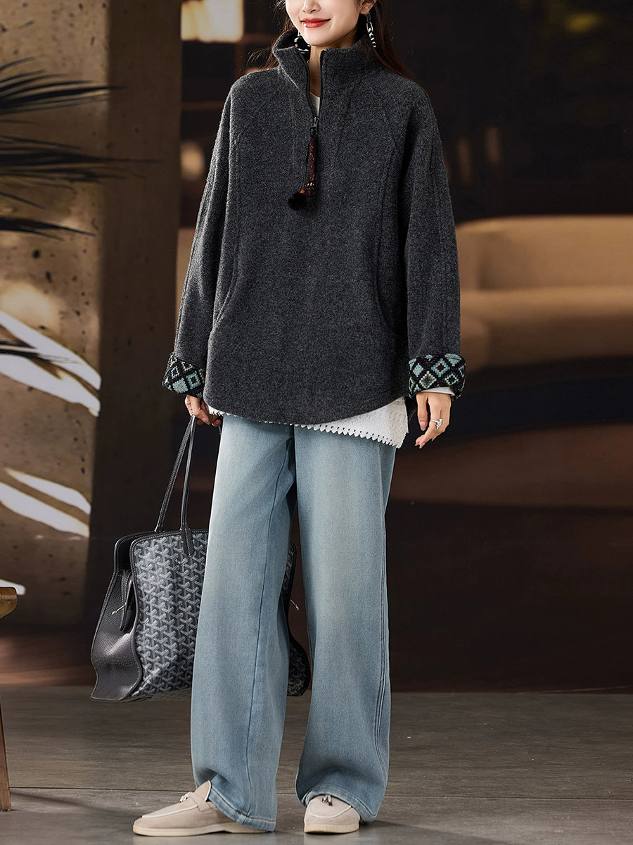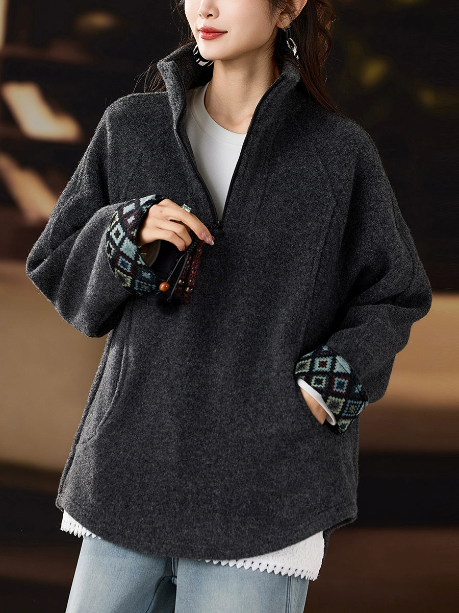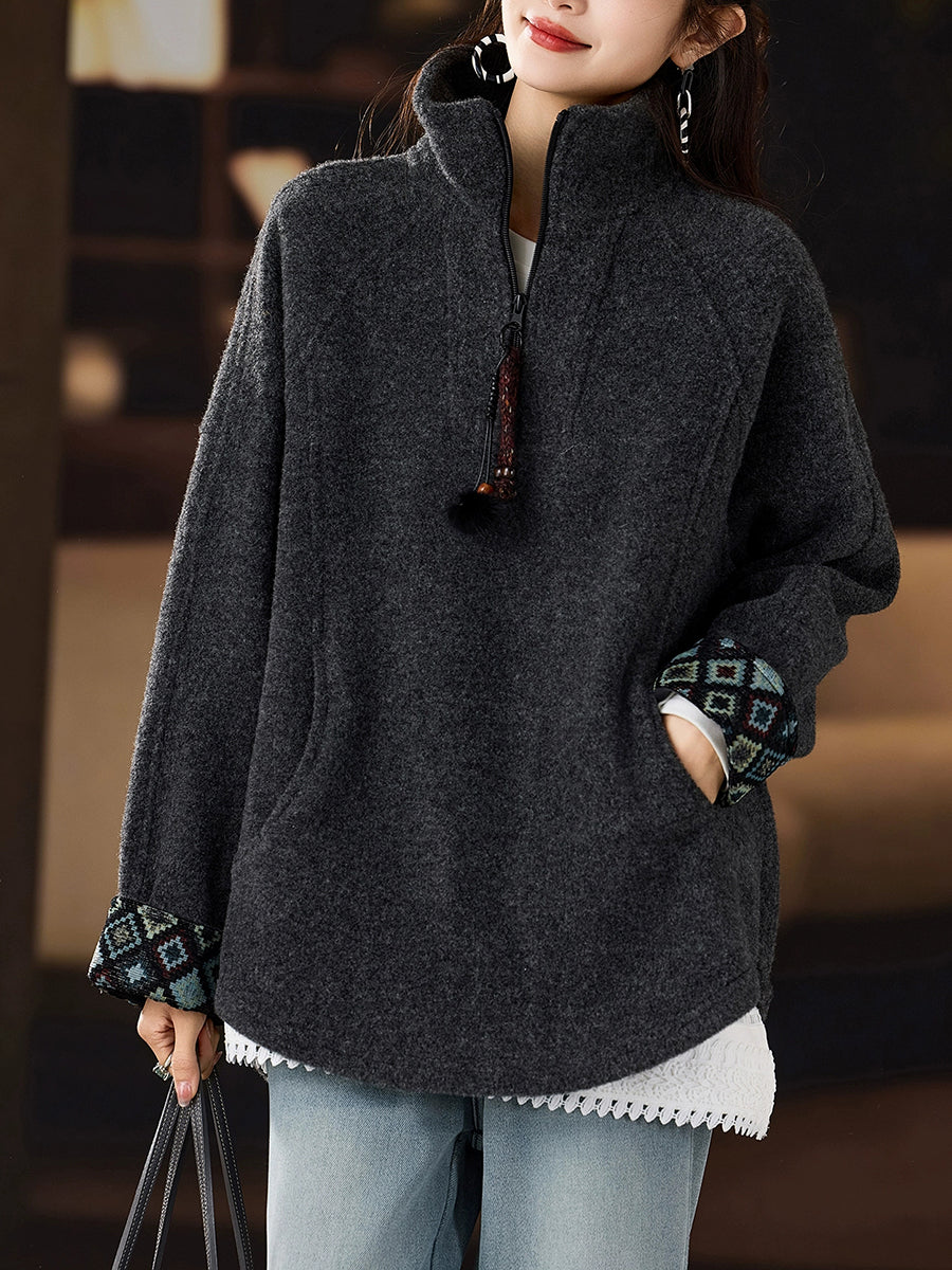 Crafted from premium 98% polyester, this winter essential delivers warmth without compromise. The structured stand collar frames the neckline with polished sophistication, while raglan sleeves provide unrestricted movement and a contemporary silhouette. Full-length sleeves offer complete coverage during cooler months, and the solid colorway ensures versatile styling across your seasonal wardrobe. Designed for autumn and winter wear, this casual blouse balances comfort with refined everyday elegance.