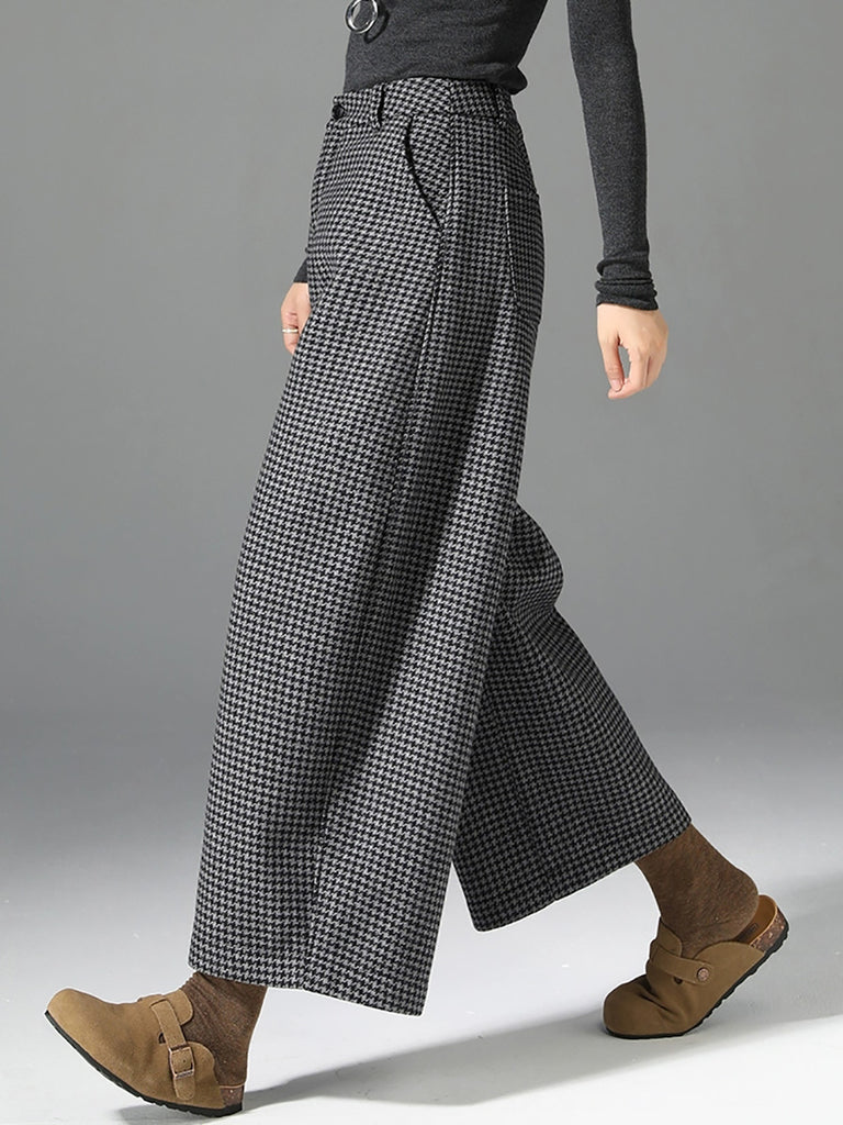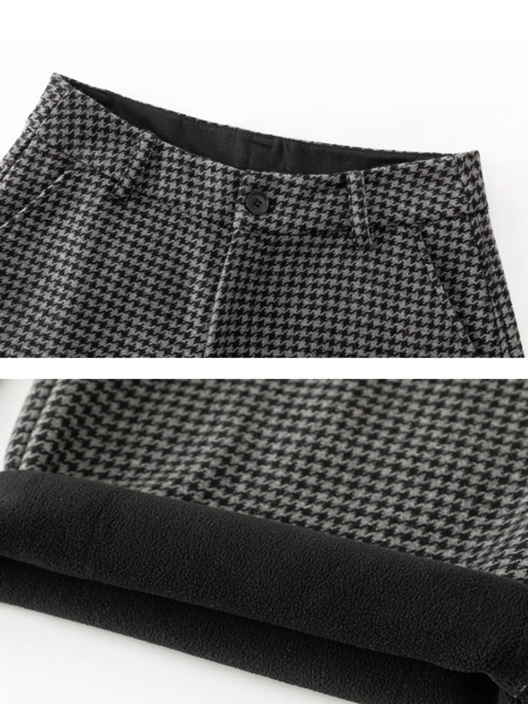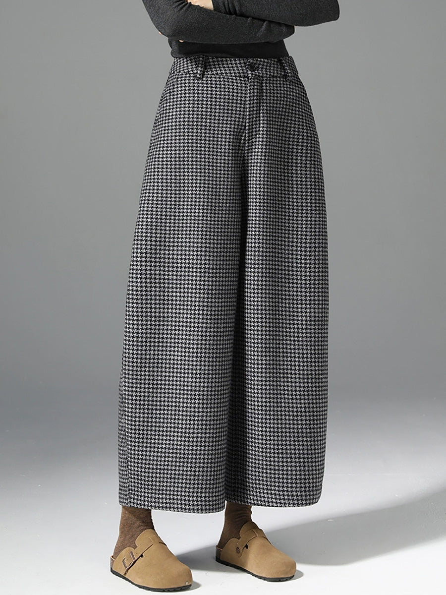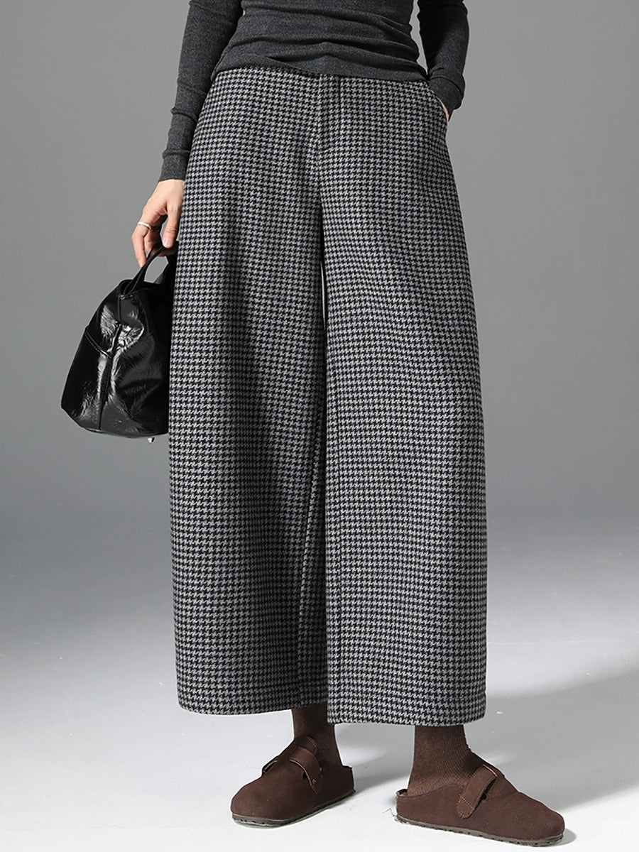Women Winter Casual Plaid Fleece-lined Wide-leg Pants