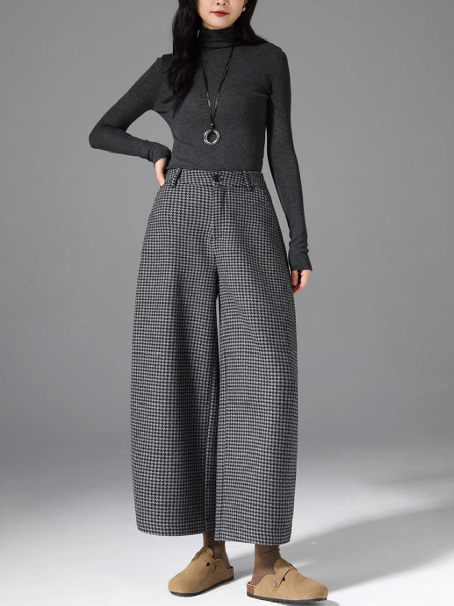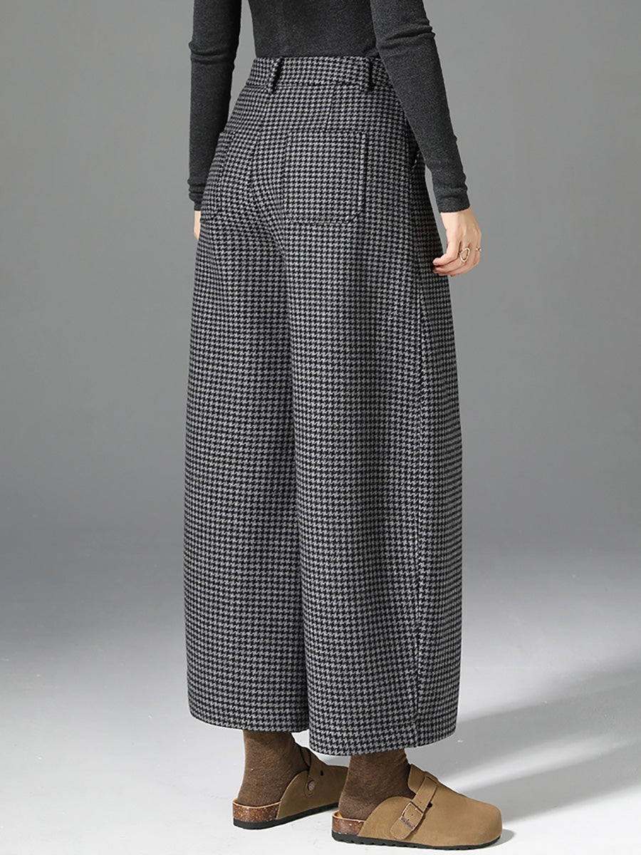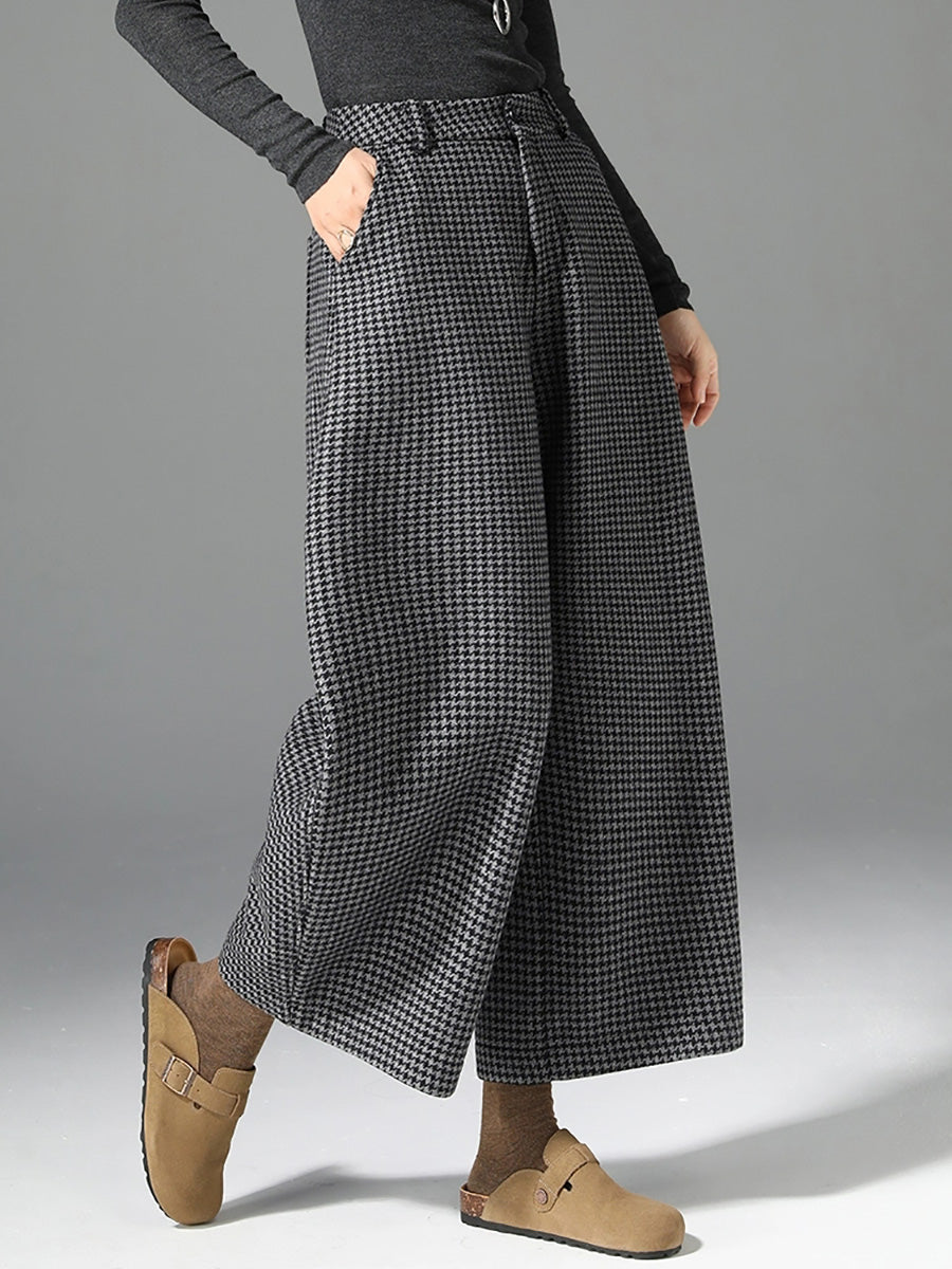 Women Winter Casual Plaid Fleece-lined Wide-leg Pants