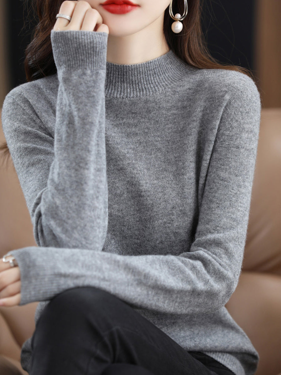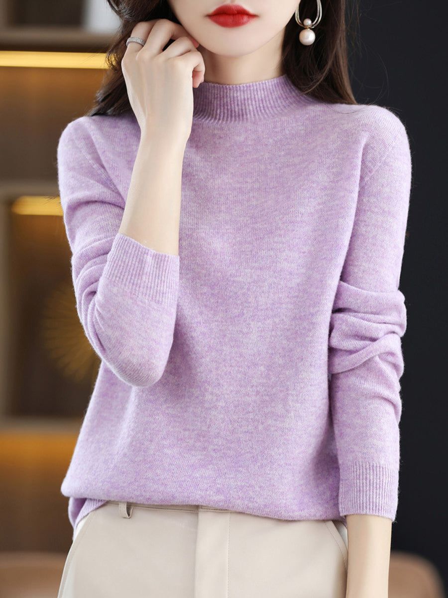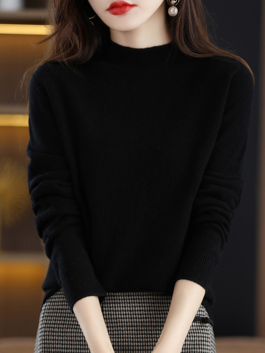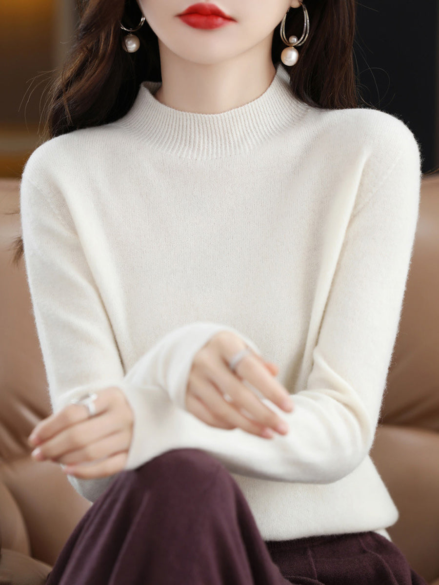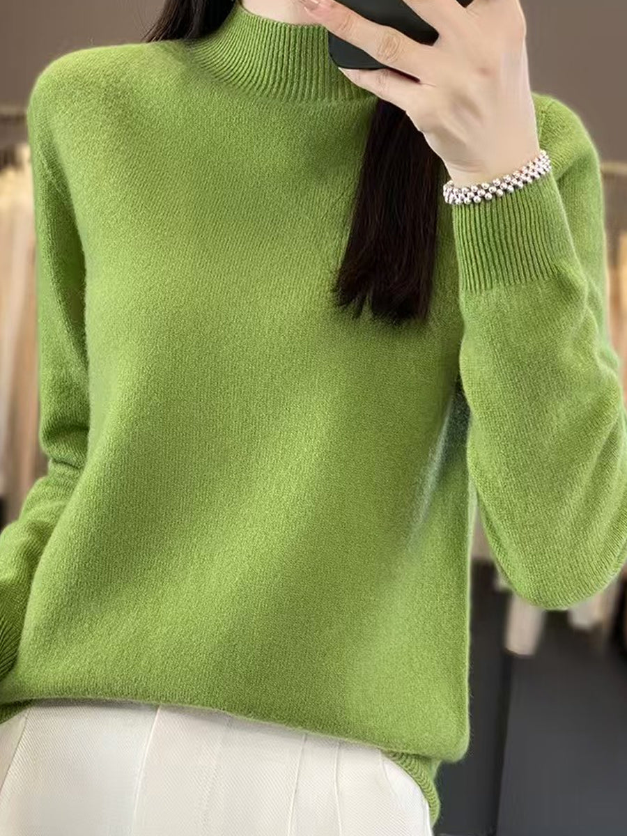 Women Winter Casual Pure Color Half-Turtleneck Sweater