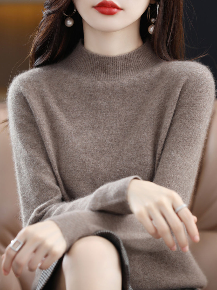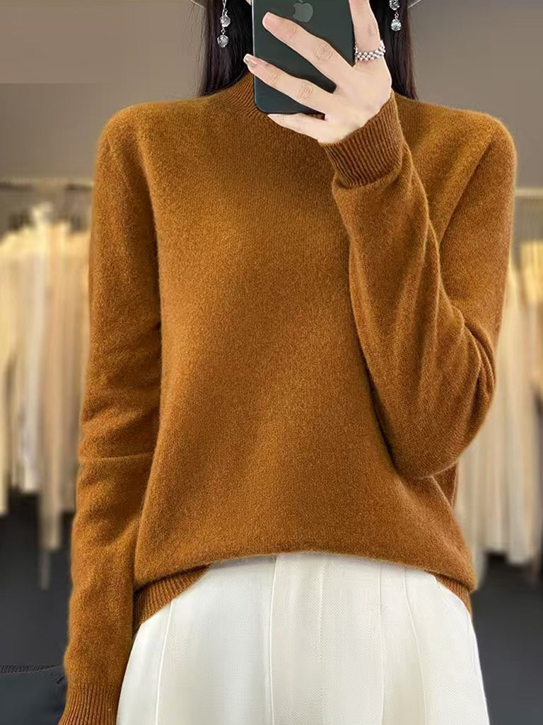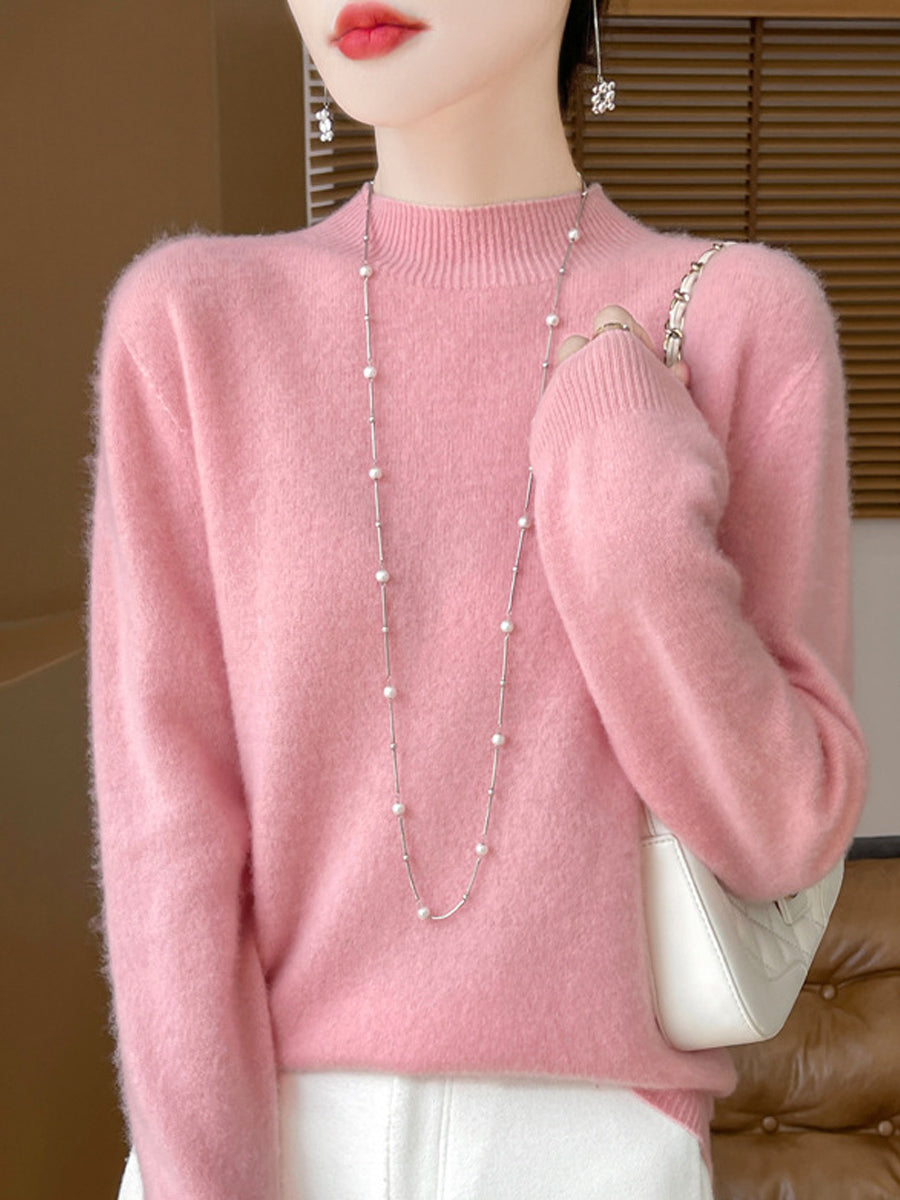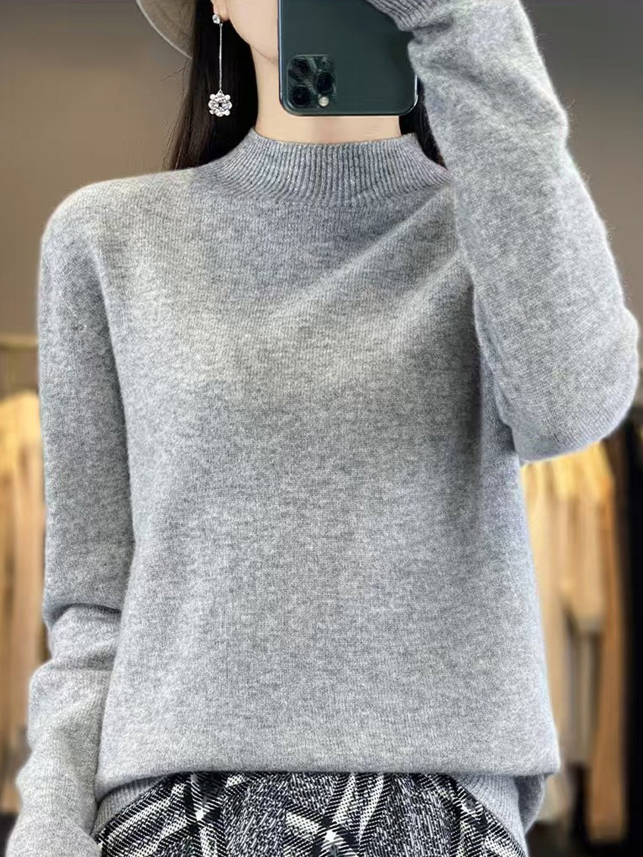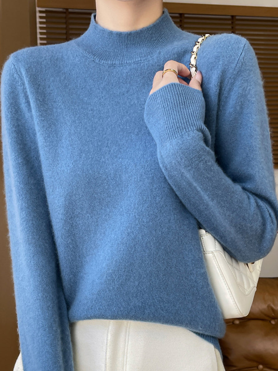 Women Winter Casual Pure Color Half-Turtleneck Sweater
