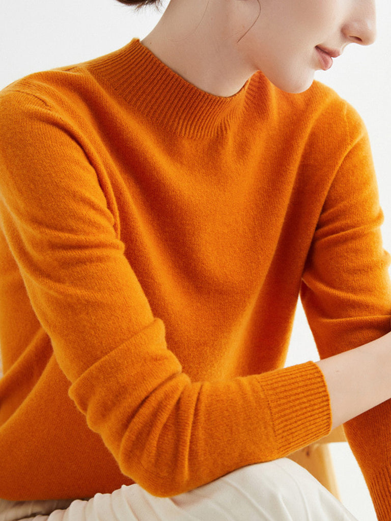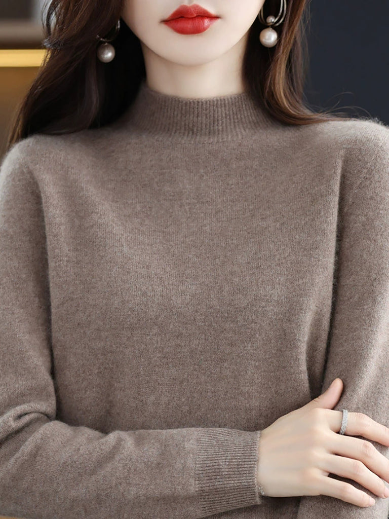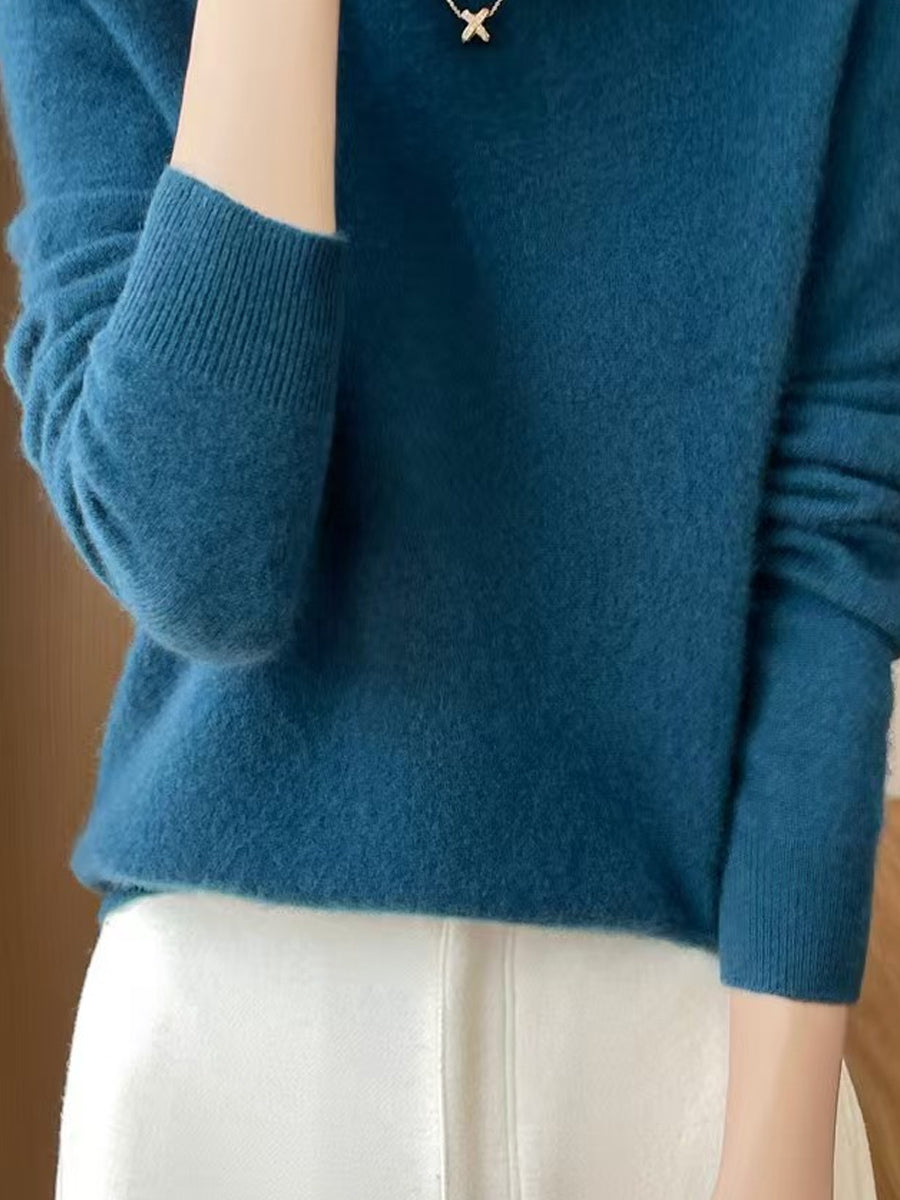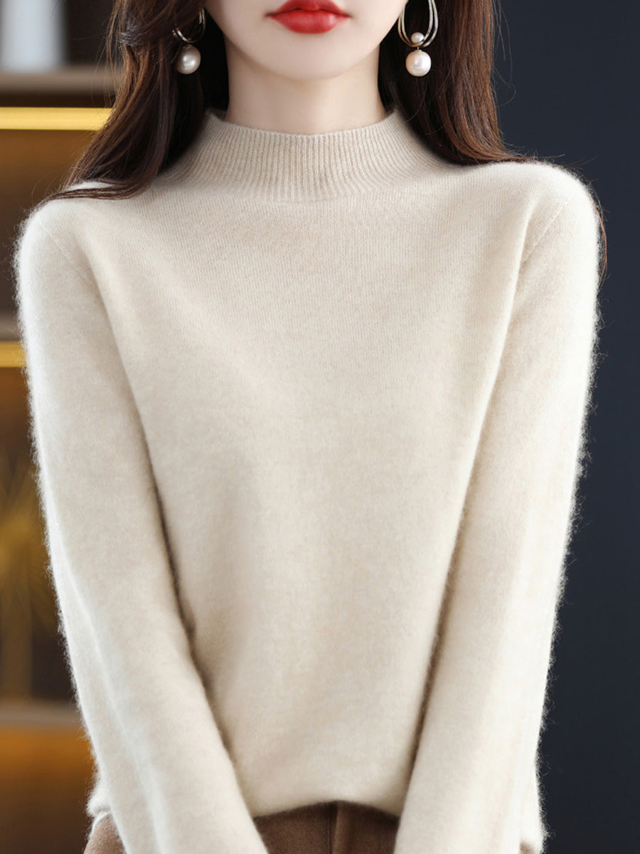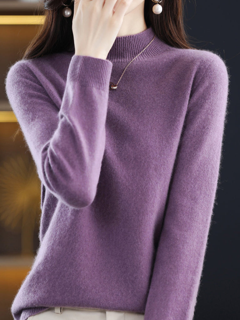 Women Winter Casual Pure Color Half-Turtleneck Sweater