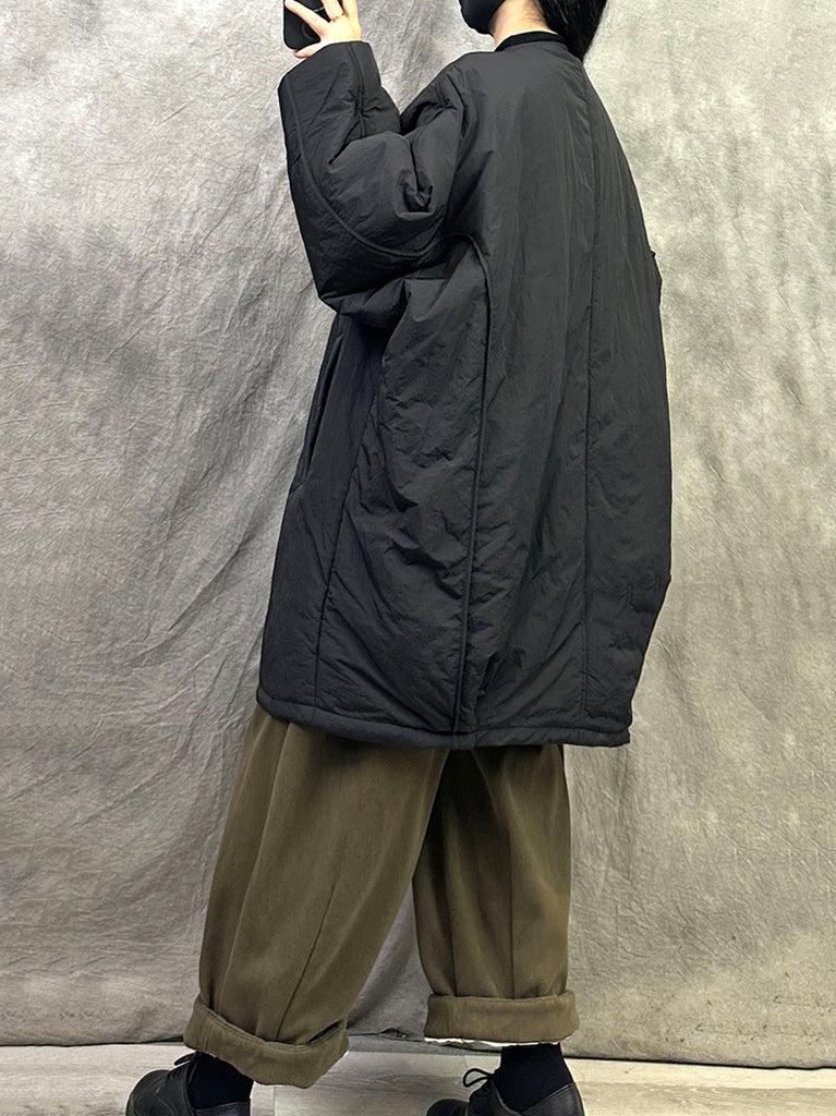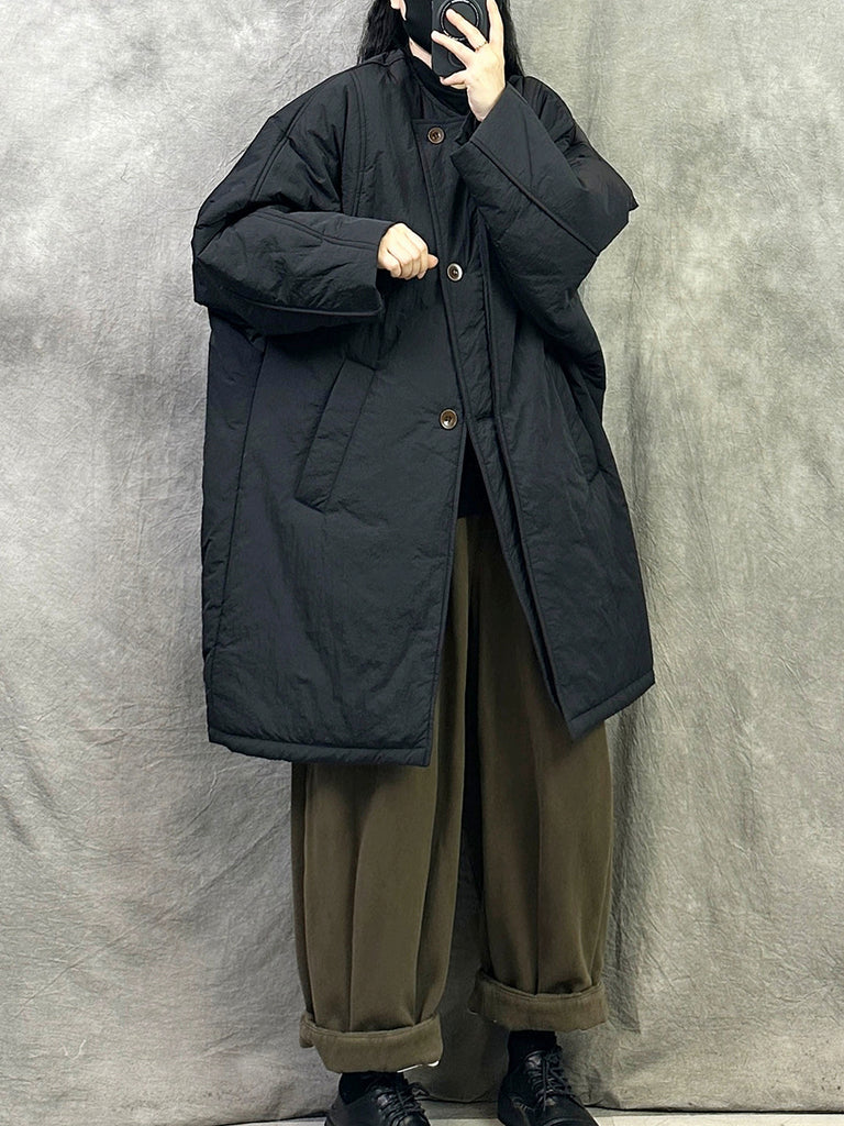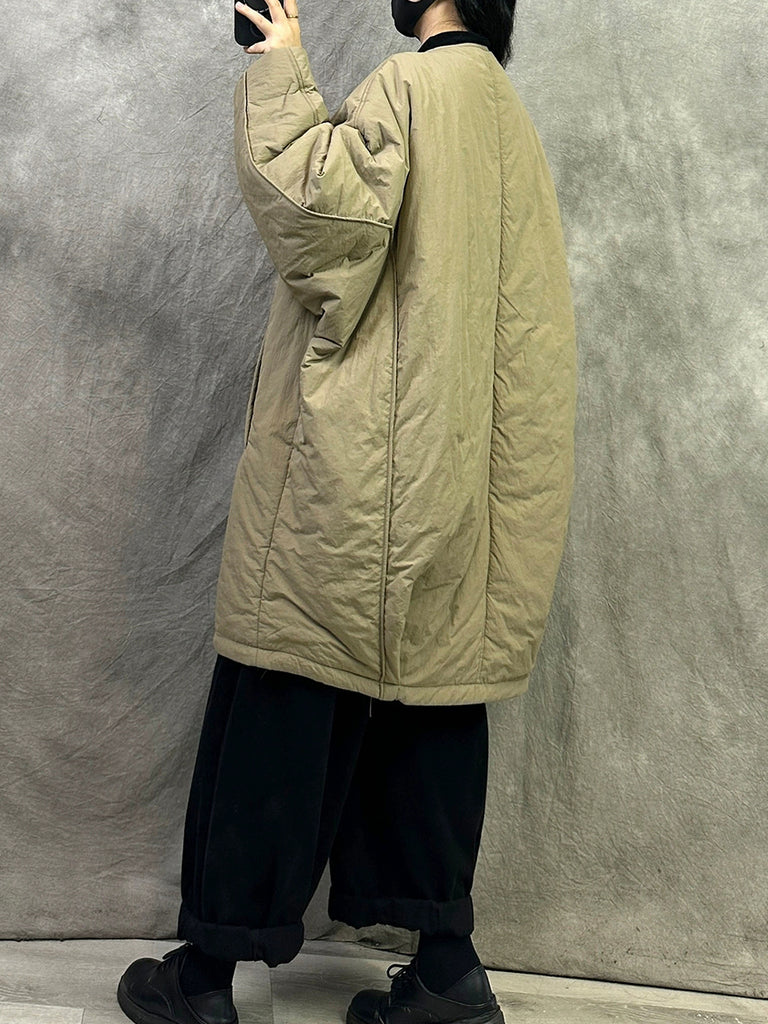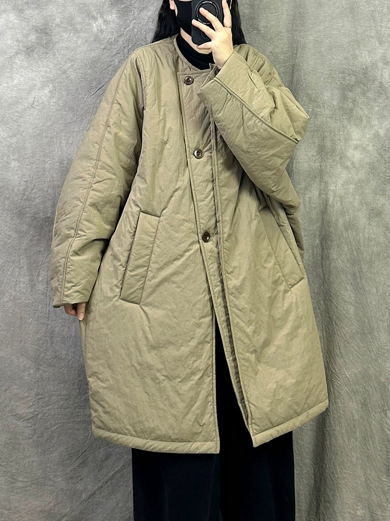 Women Winter Casual Pure Color Padded O-Neck Coat