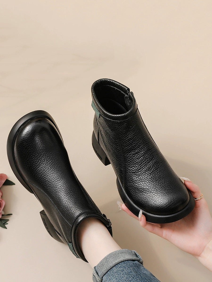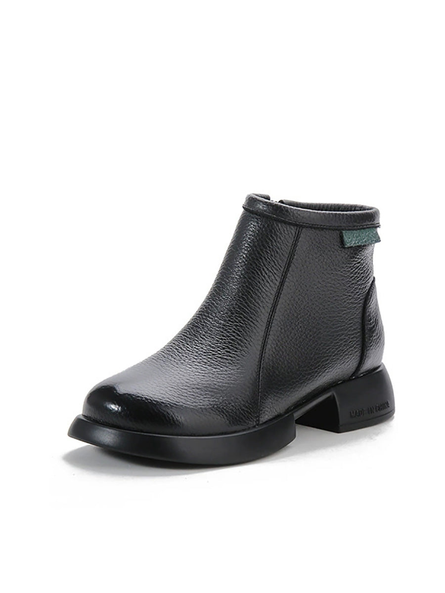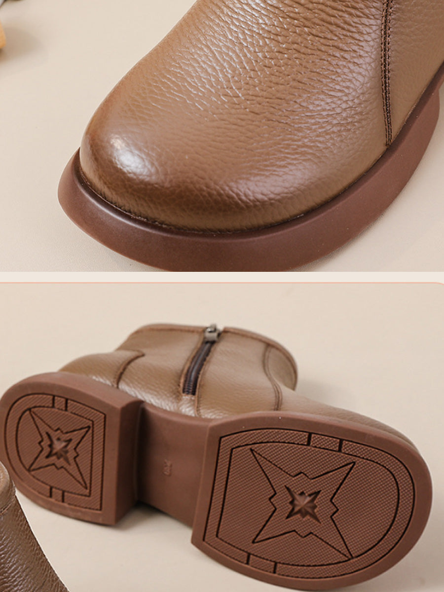 Women Winter Elegant Genuine Leather Low Heel Boots