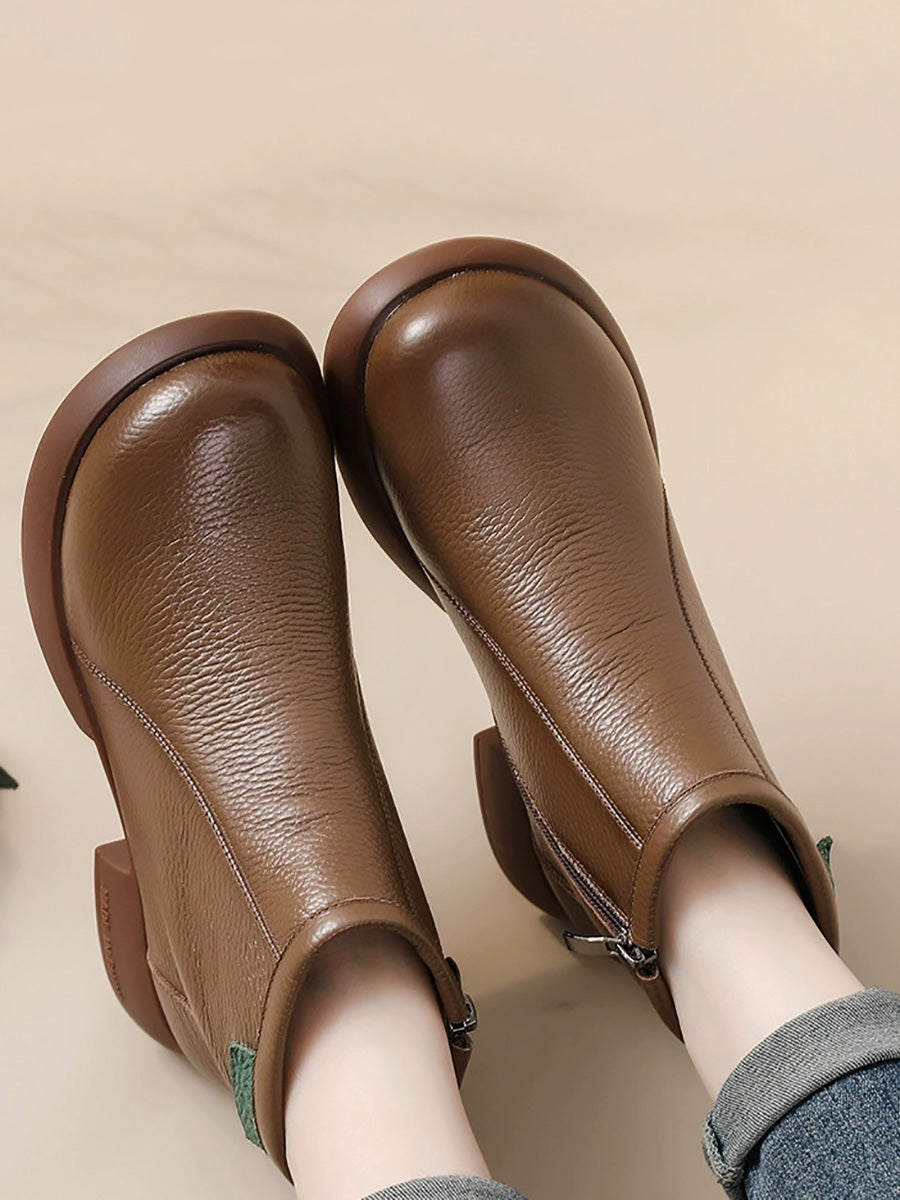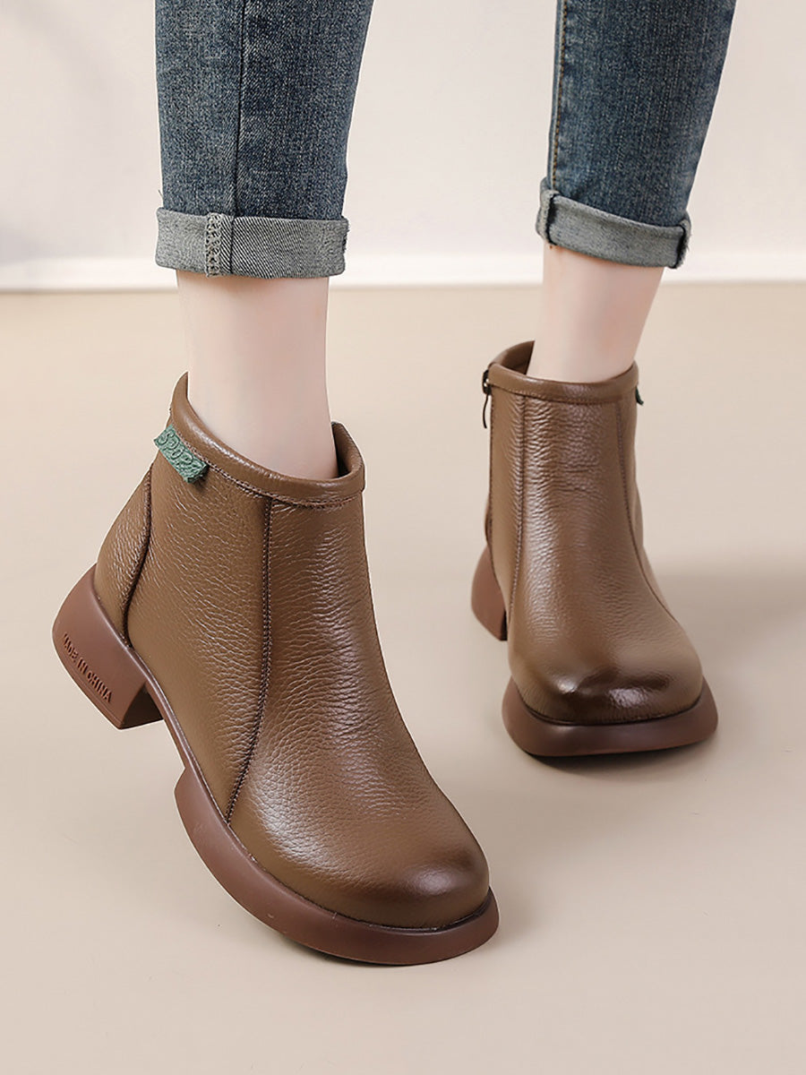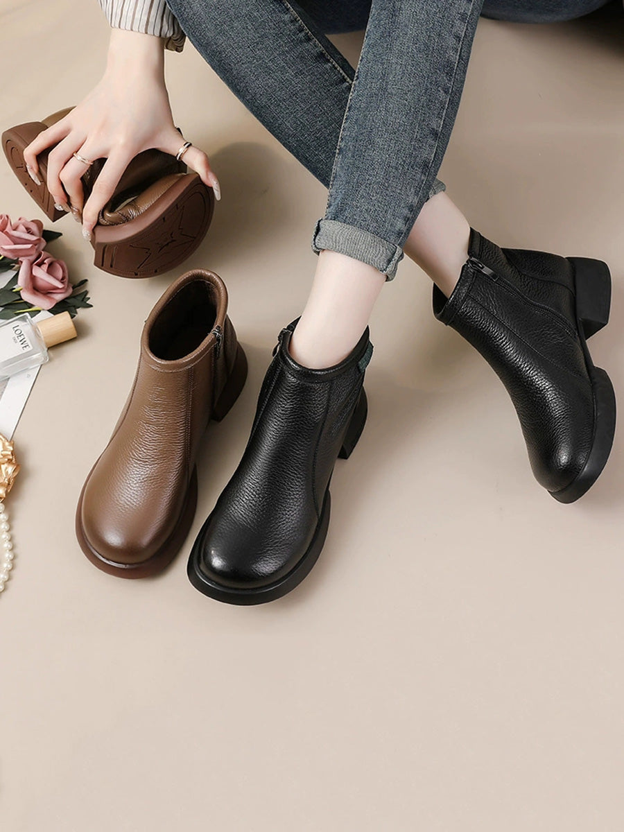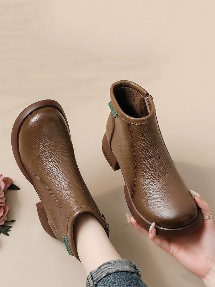 Women Winter Elegant Genuine Leather Low Heel Boots