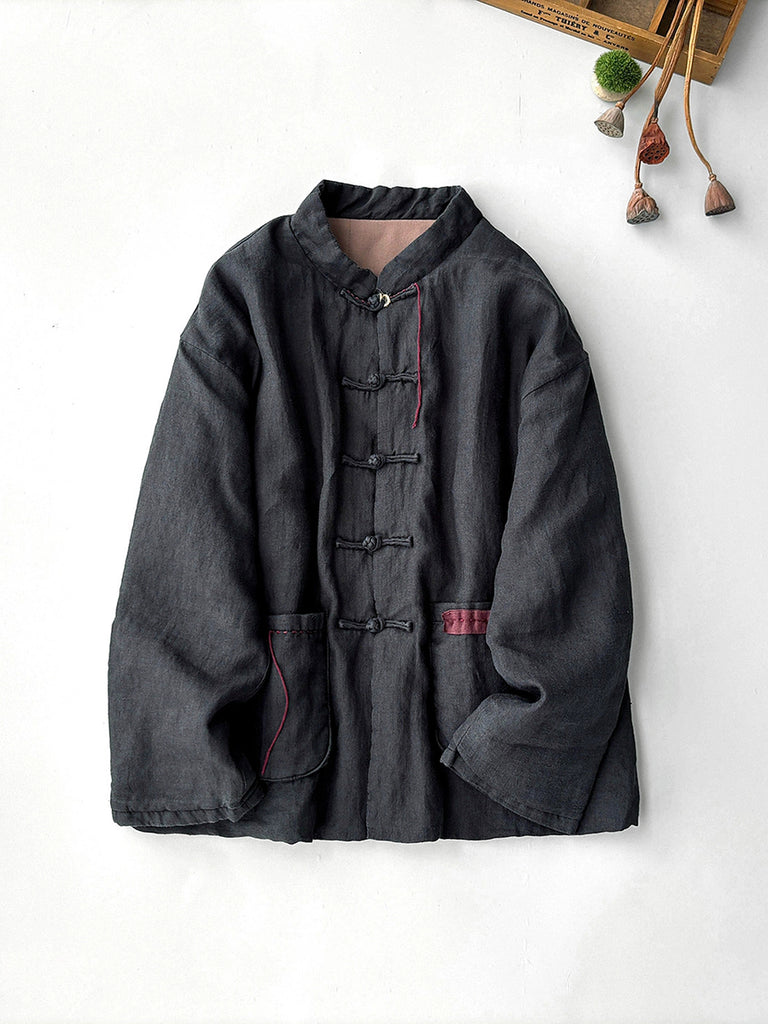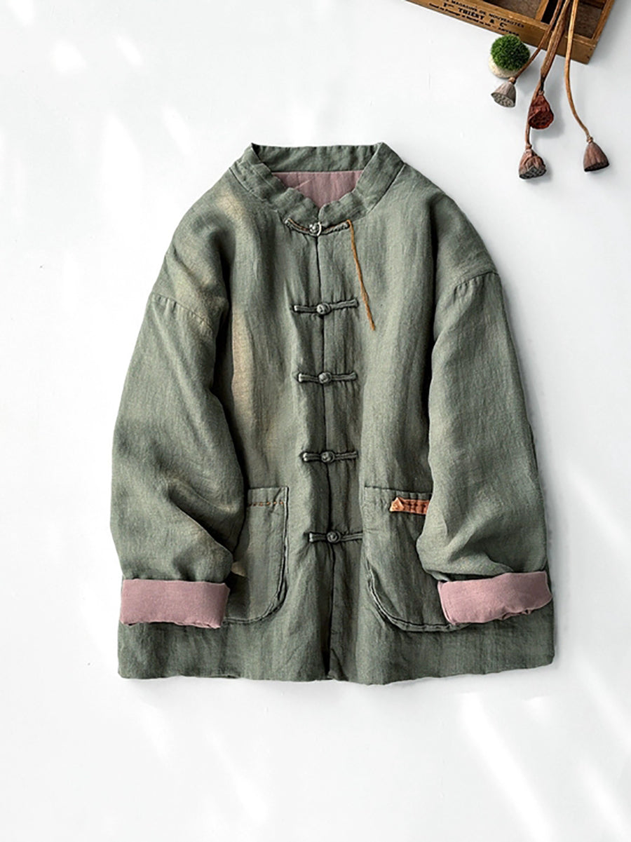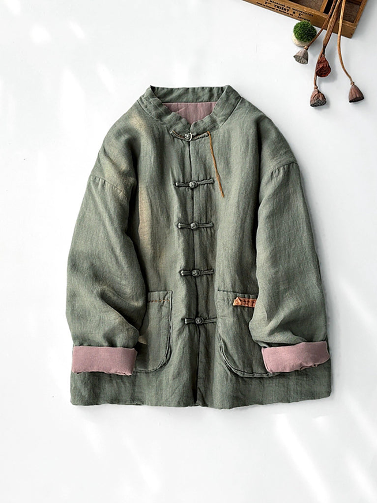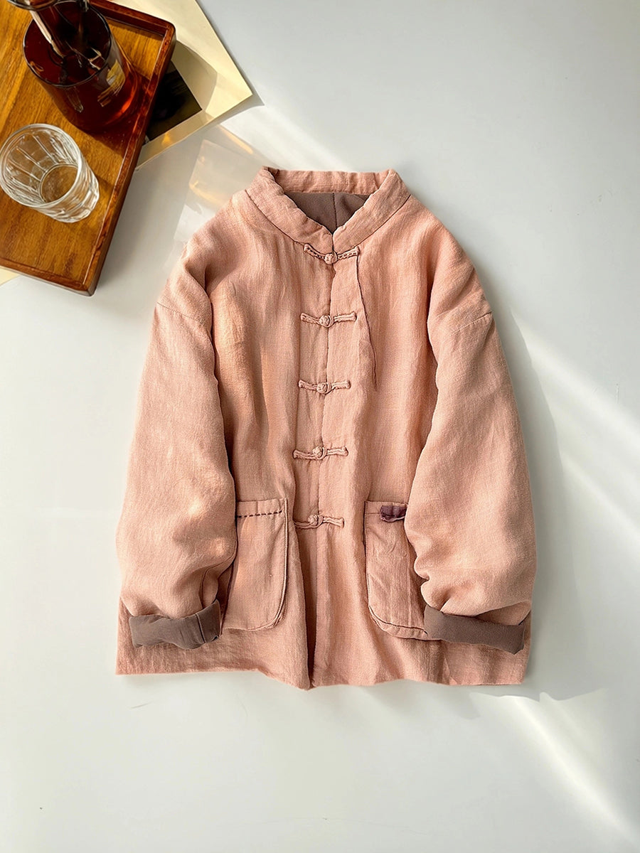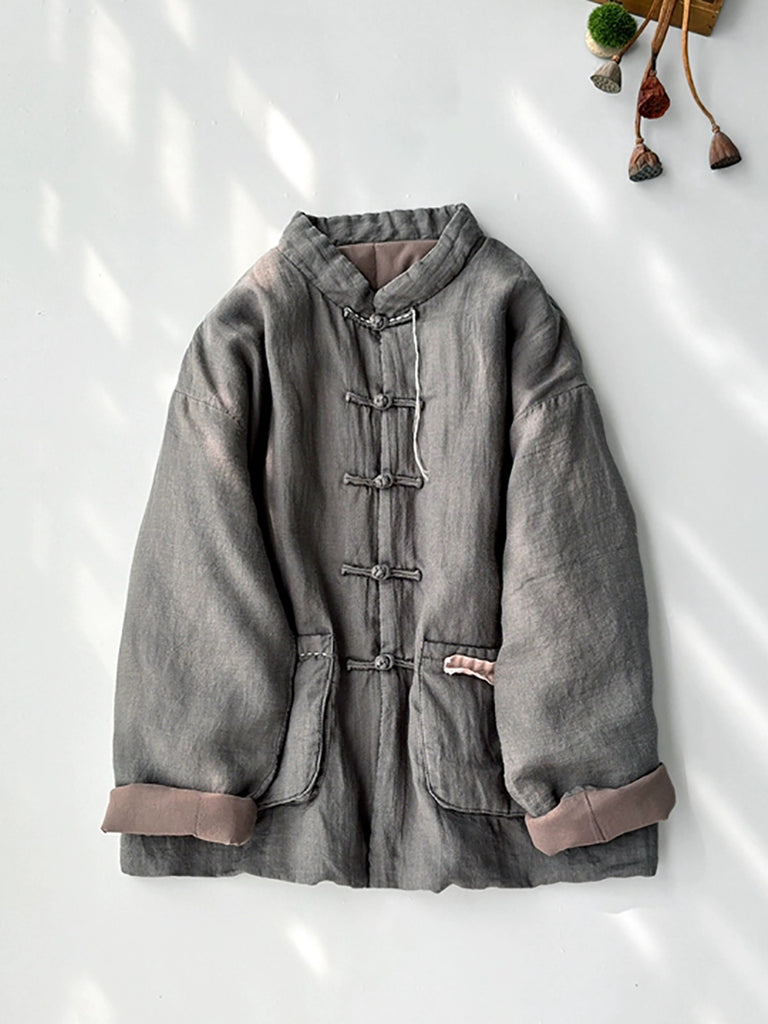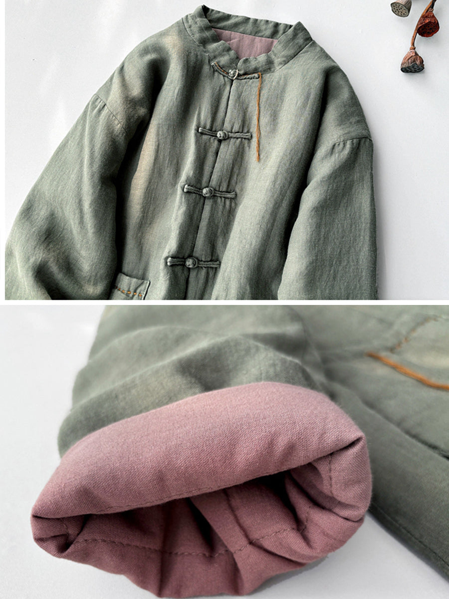Women Winter Ethnic Pure Color Stand Collar Padded Coat