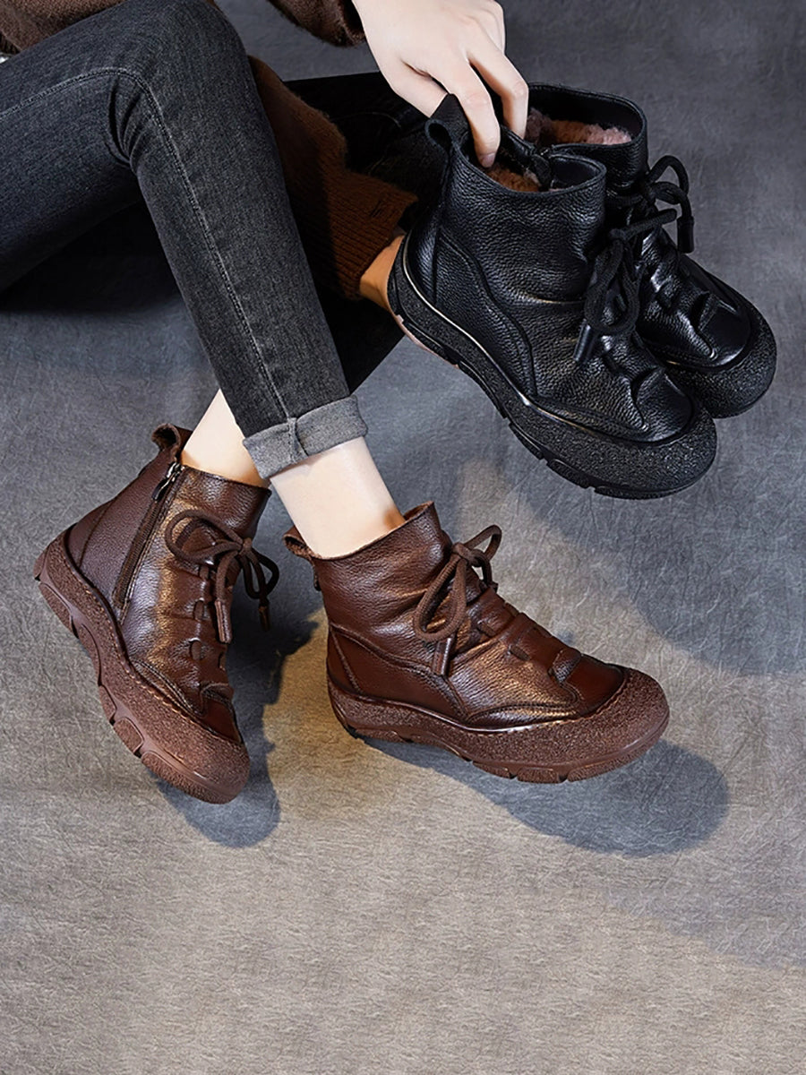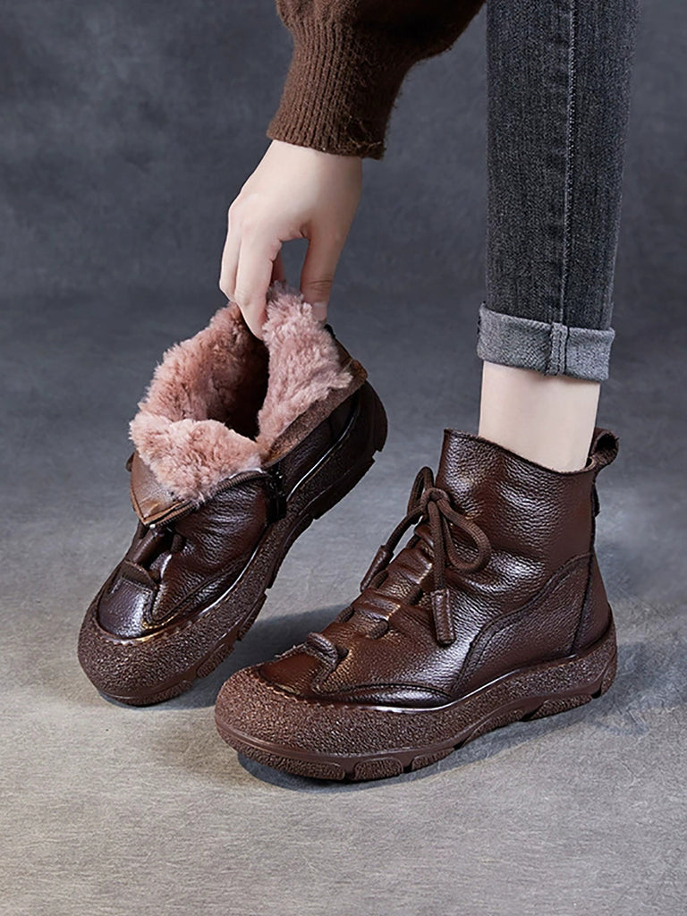 Women Winter Genuine Leather Fleece-lined Boots