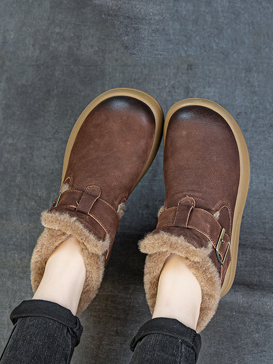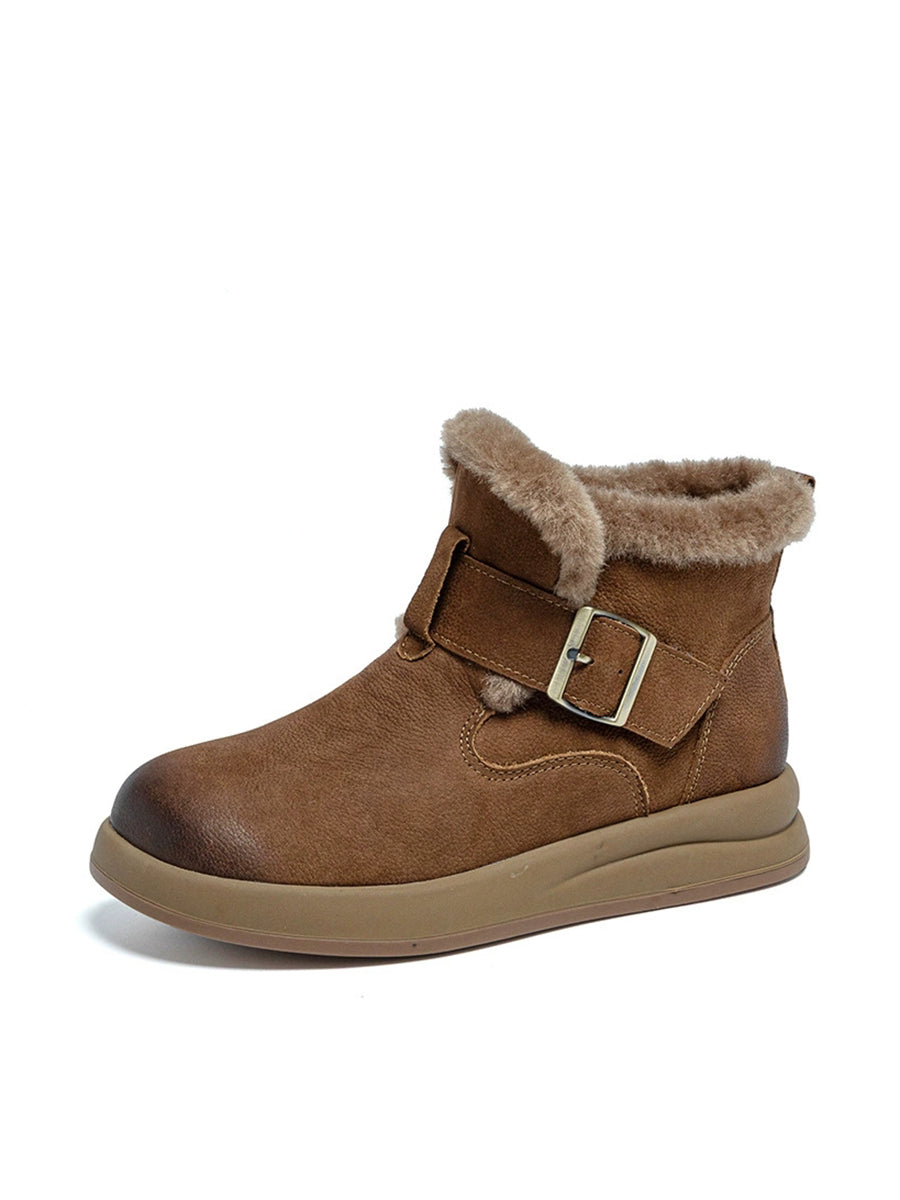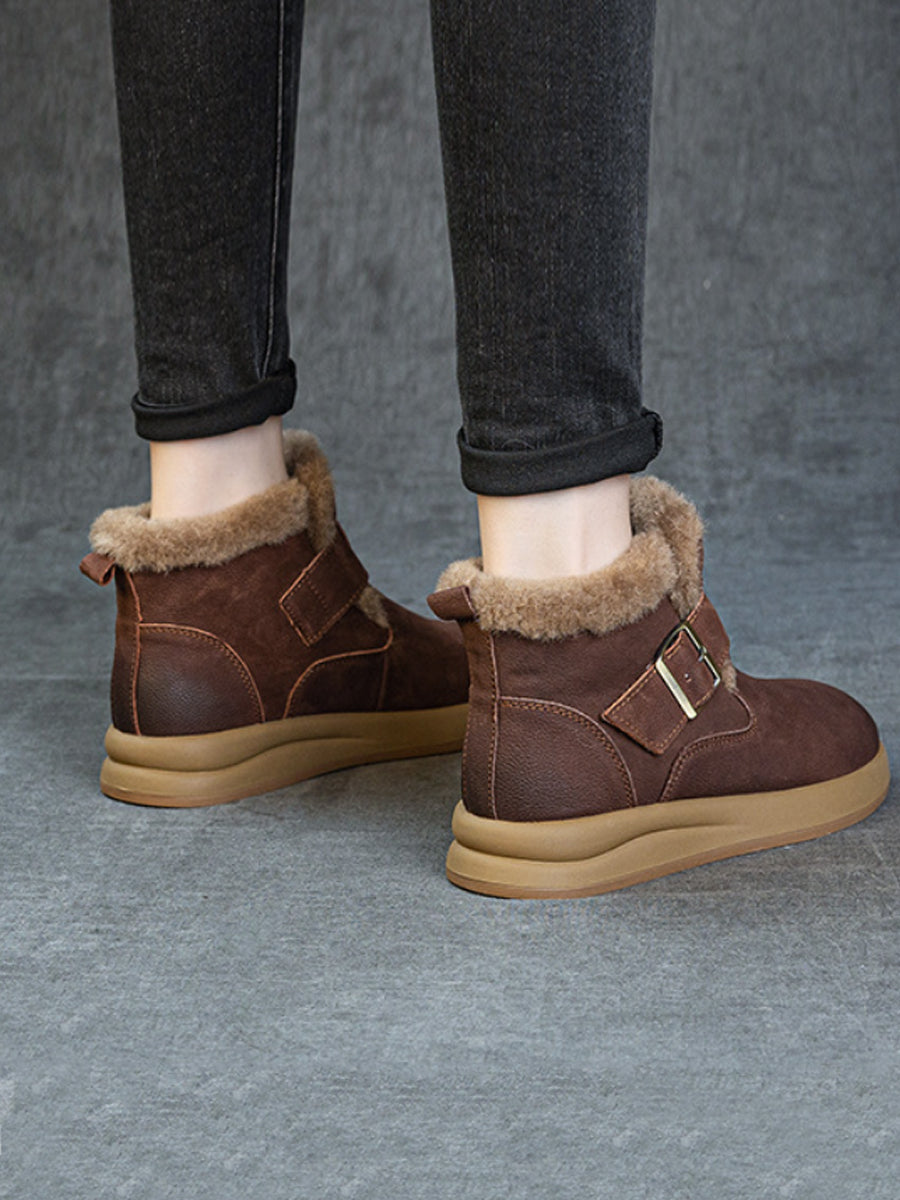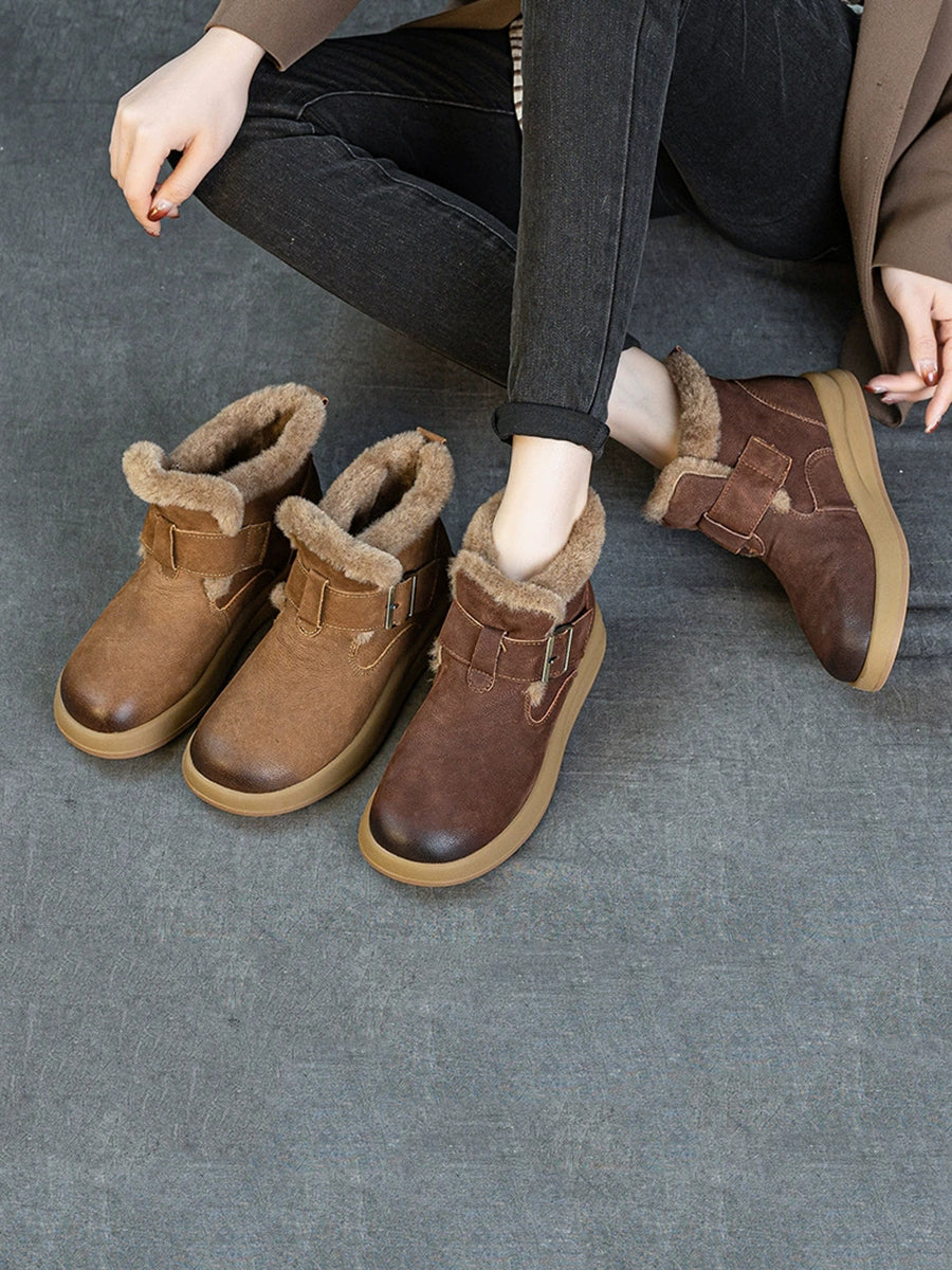 Women Winter Leather Fleece-lined Ankle Boots