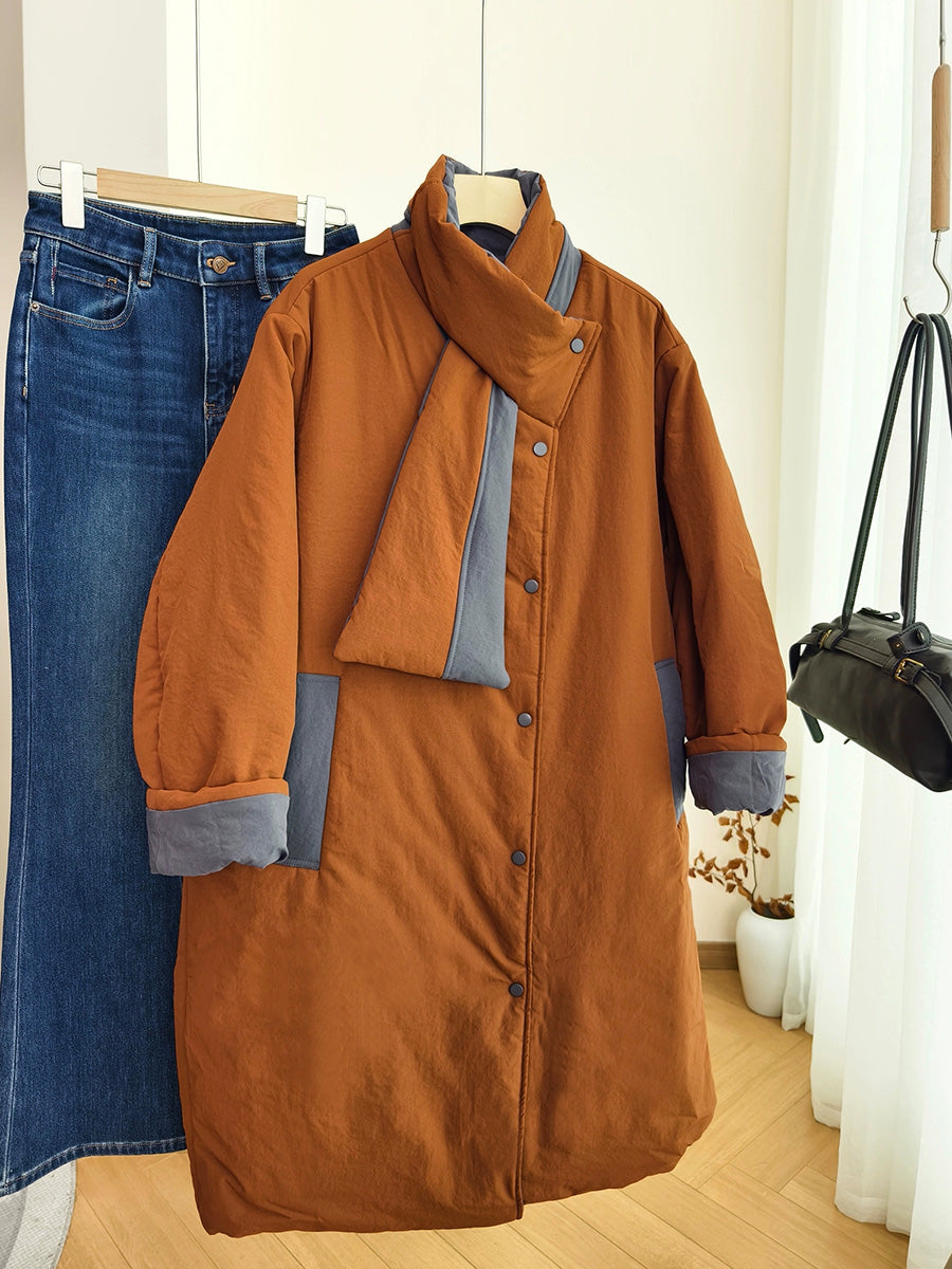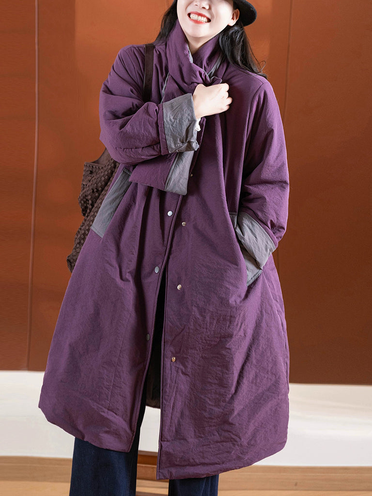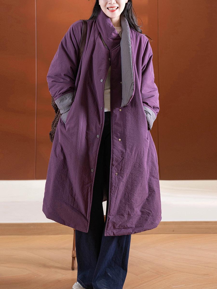 Women Winter Pure Color Turn-down Collar Padded Coat