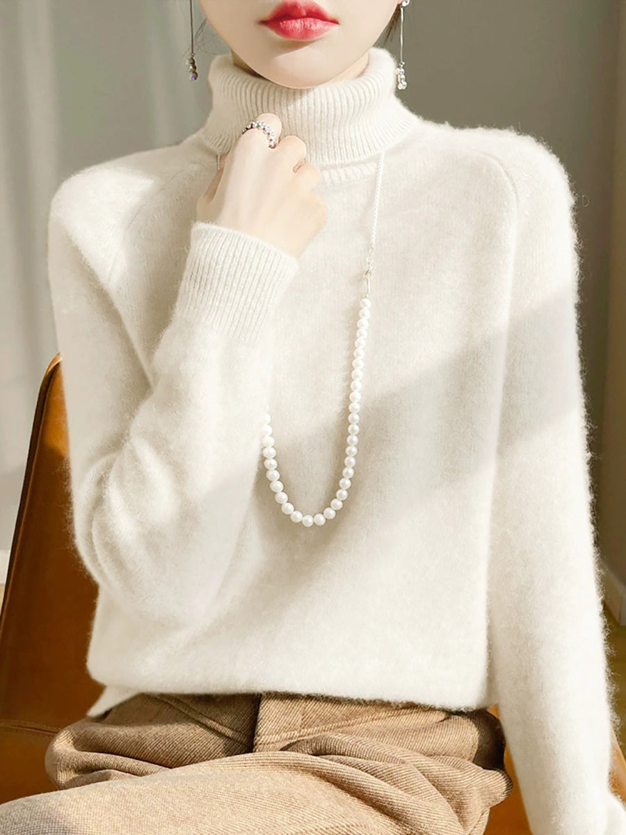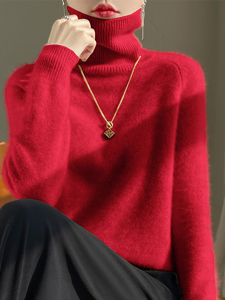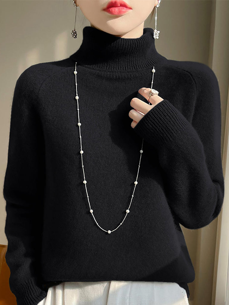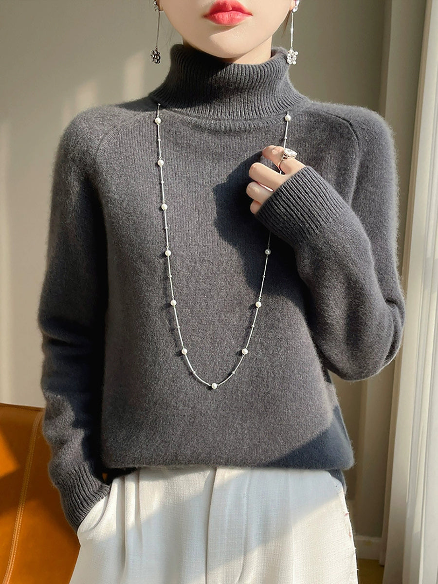 Women Winter Pure Color Turtleneck 100%Wool Sweater