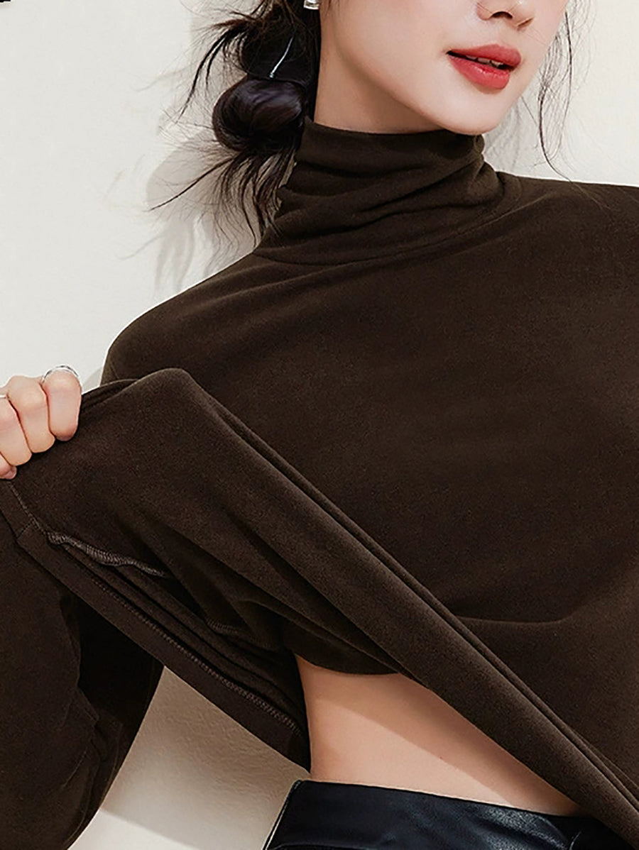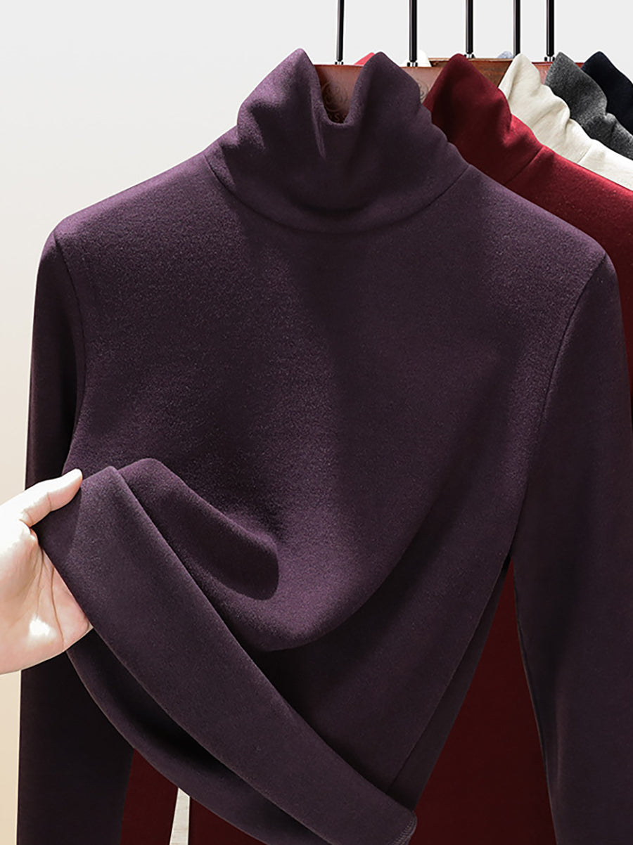 Women Winter Pure Color Warm Turtleneck Bottom Blouse