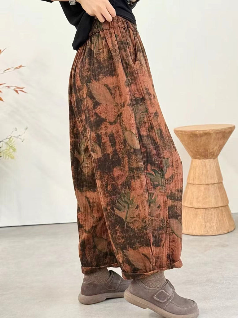 Women Winter Retro Flower Harem Padded Pants