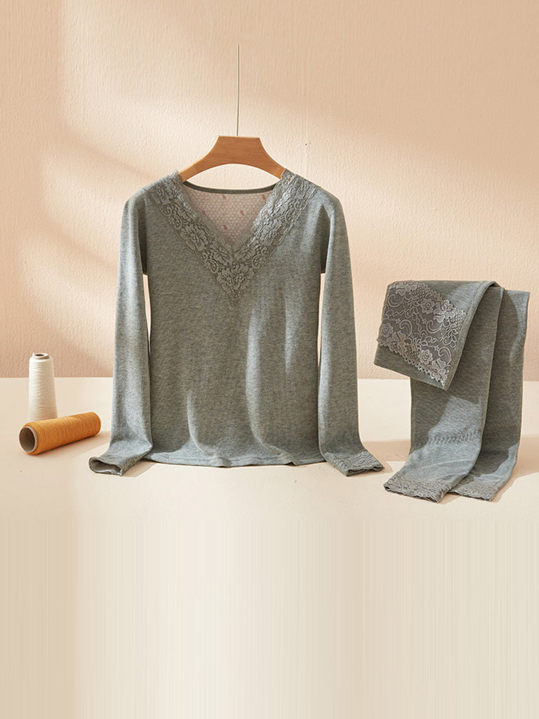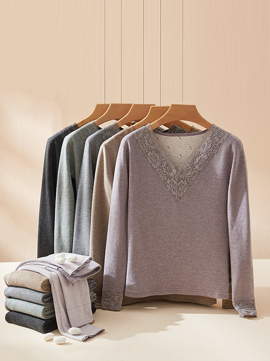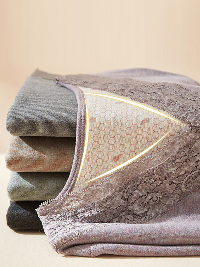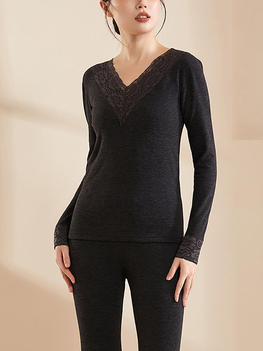 Women Winter Seamless Lace Warm With Bra Pad Base Suits