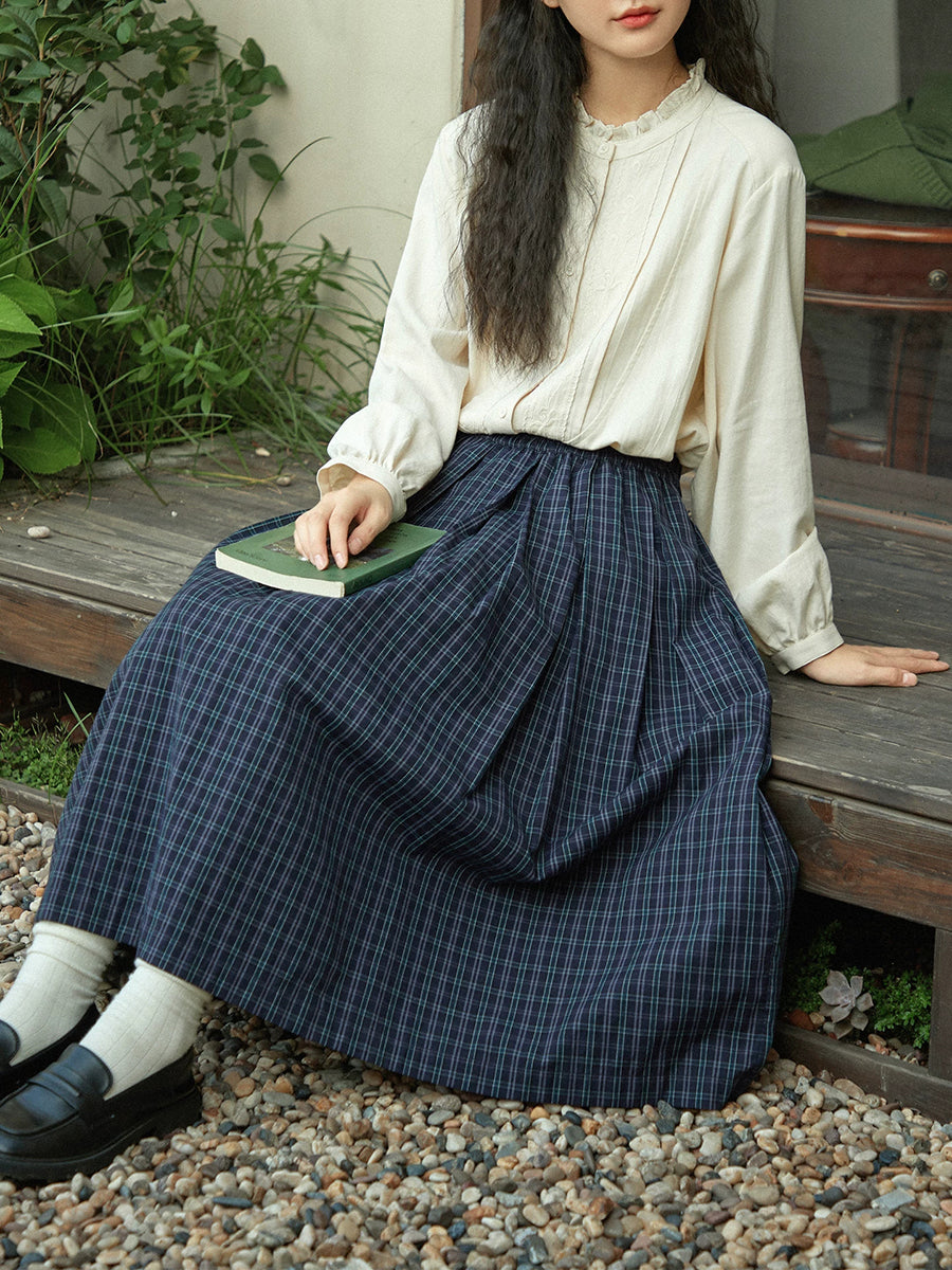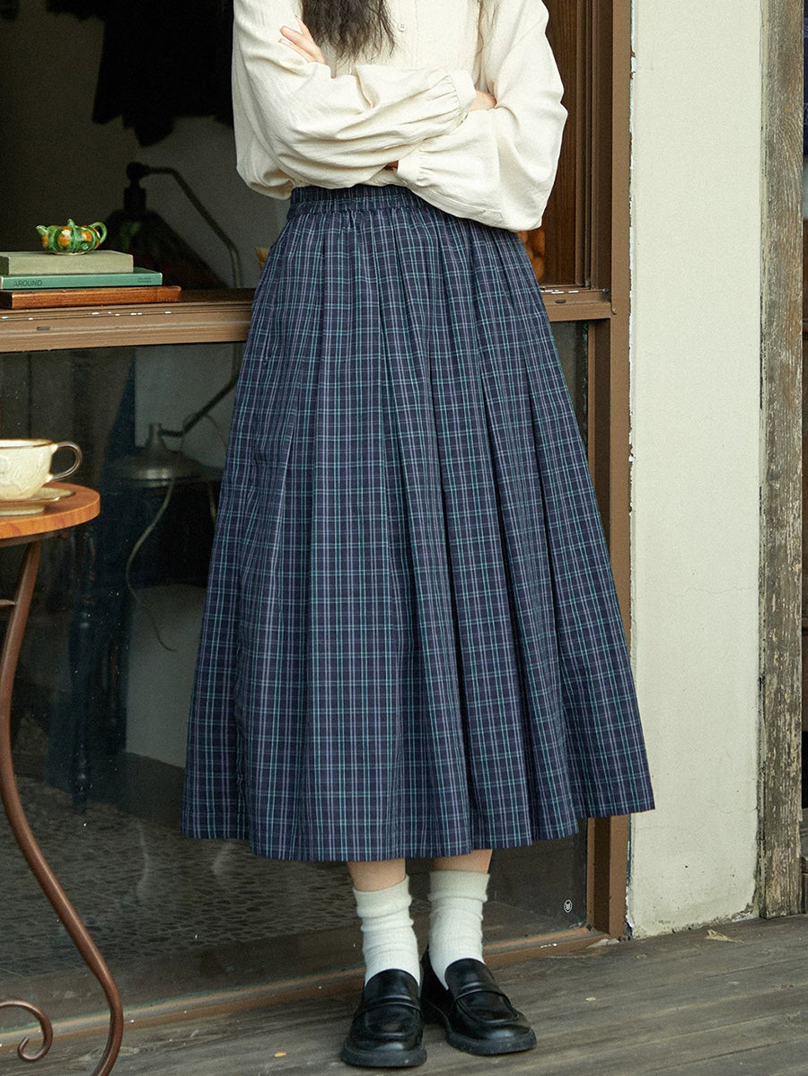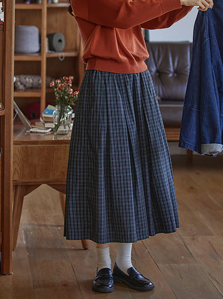 Women Winter Vintage Plaid Pleated A-Shape Skirt