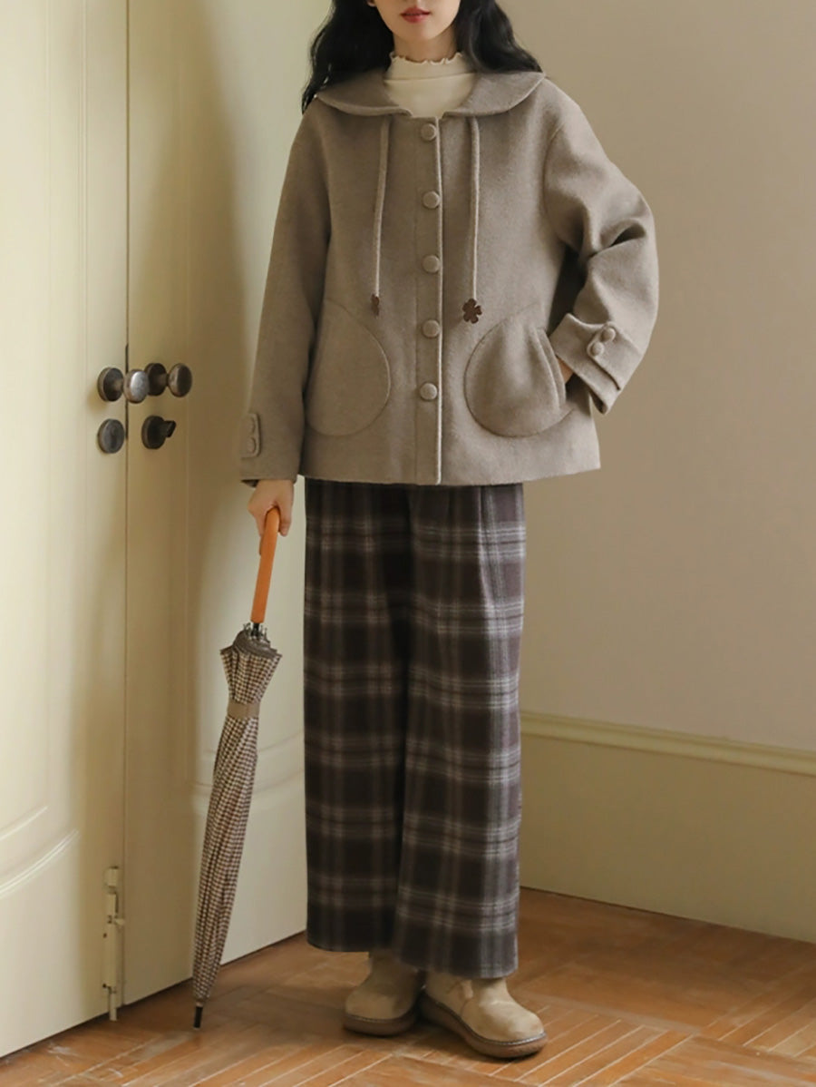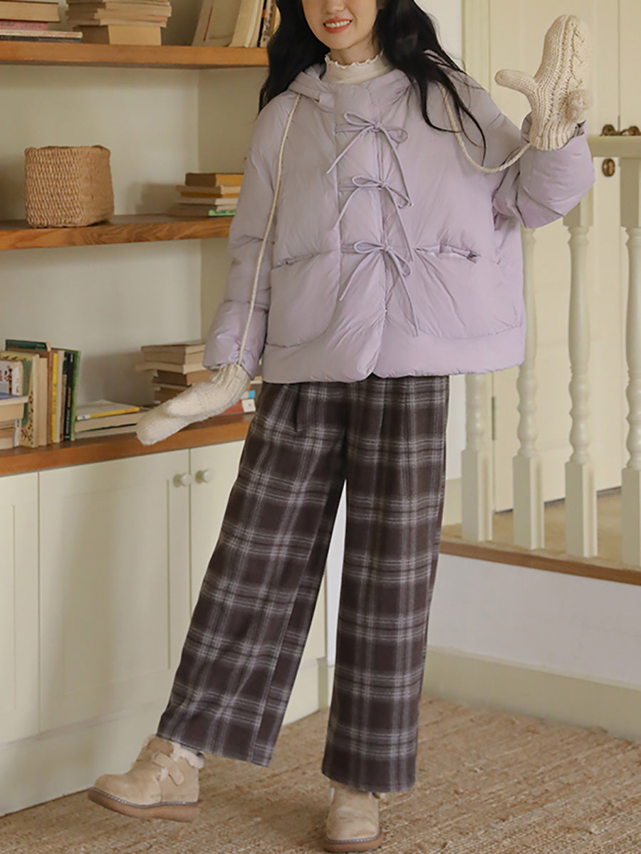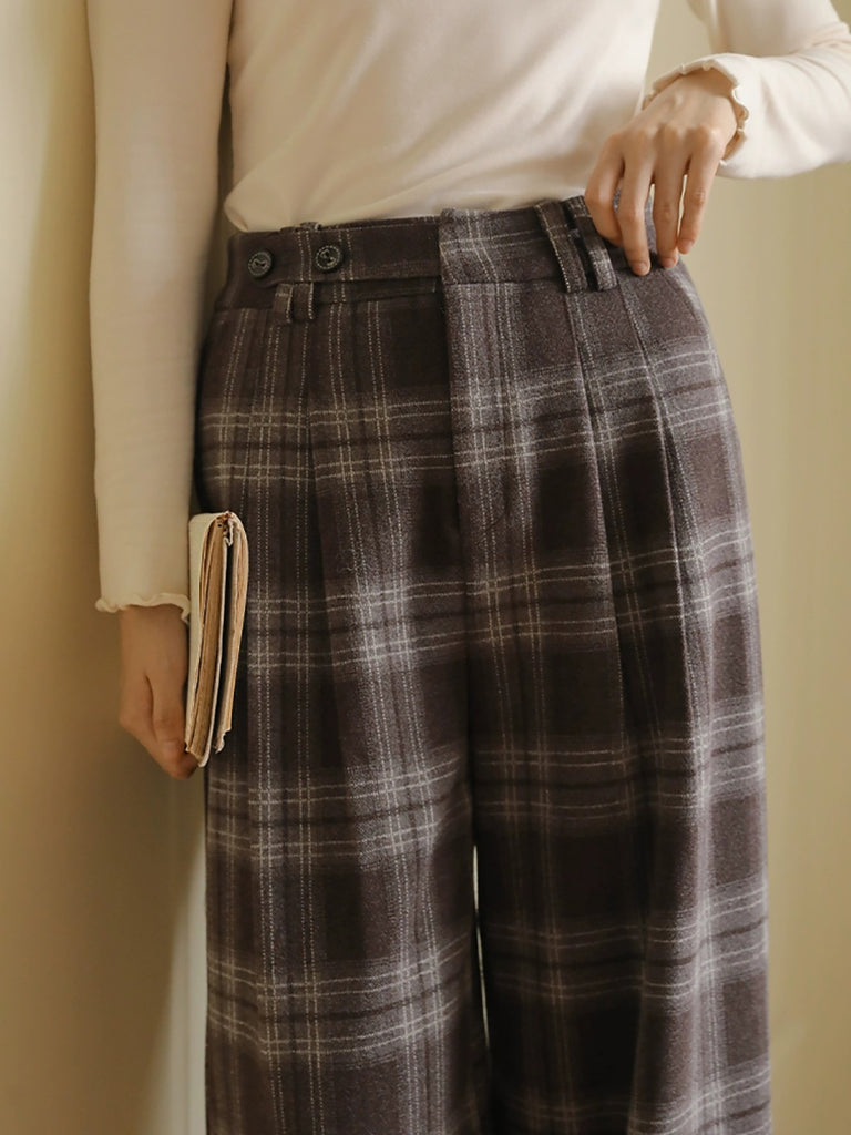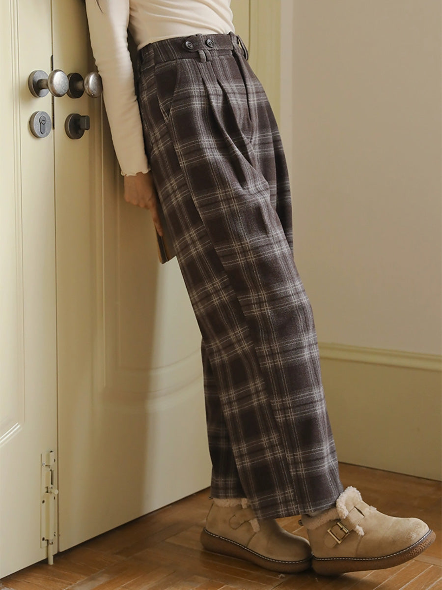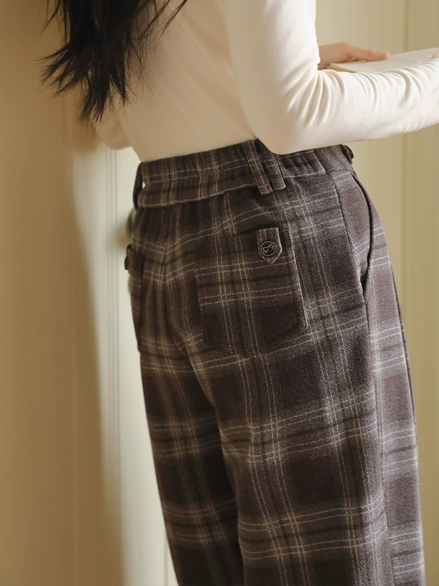 Women Winter Vintage Plaid Straight Pants
