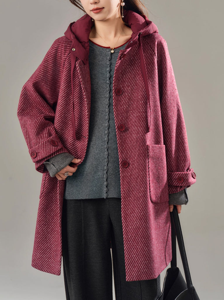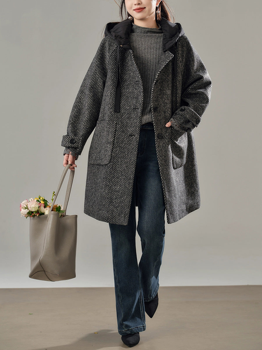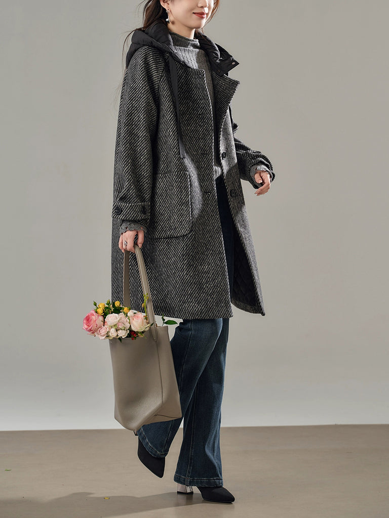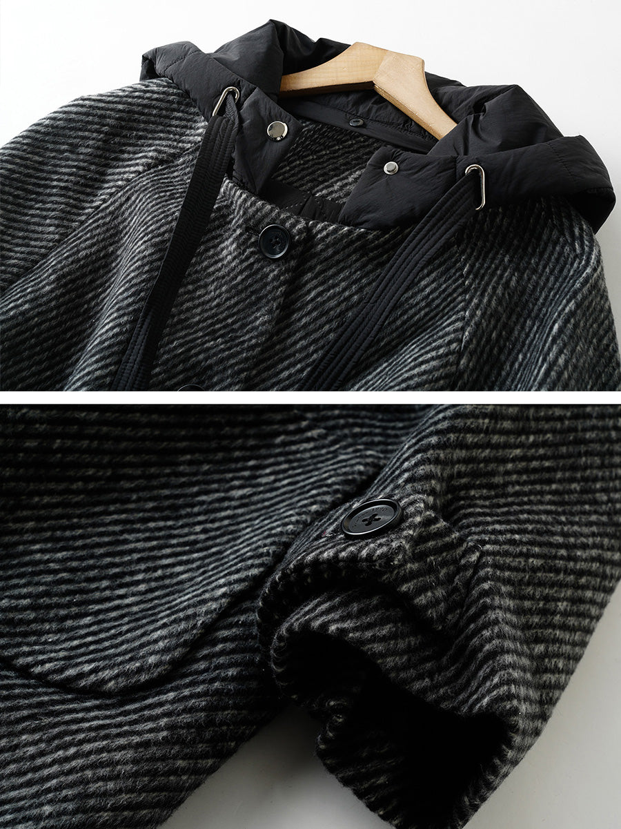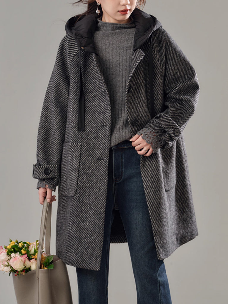 Women Winter Vintage Stripe Spliced Hooded Coat