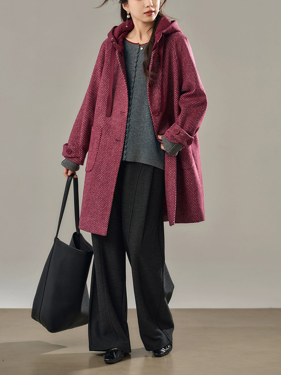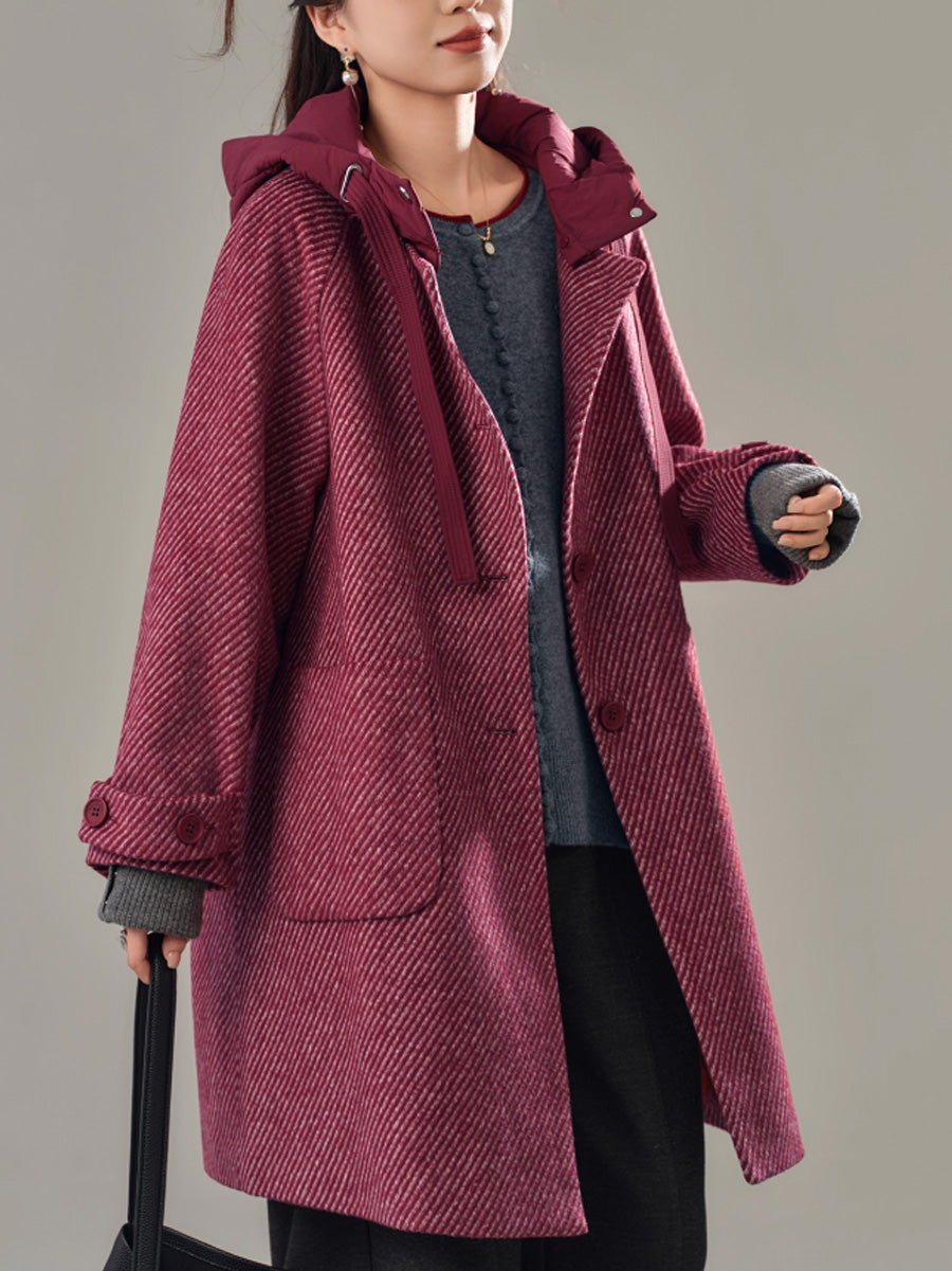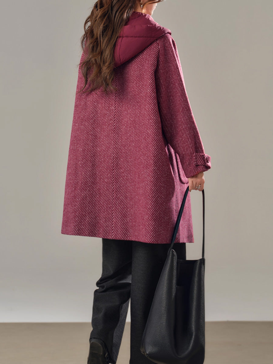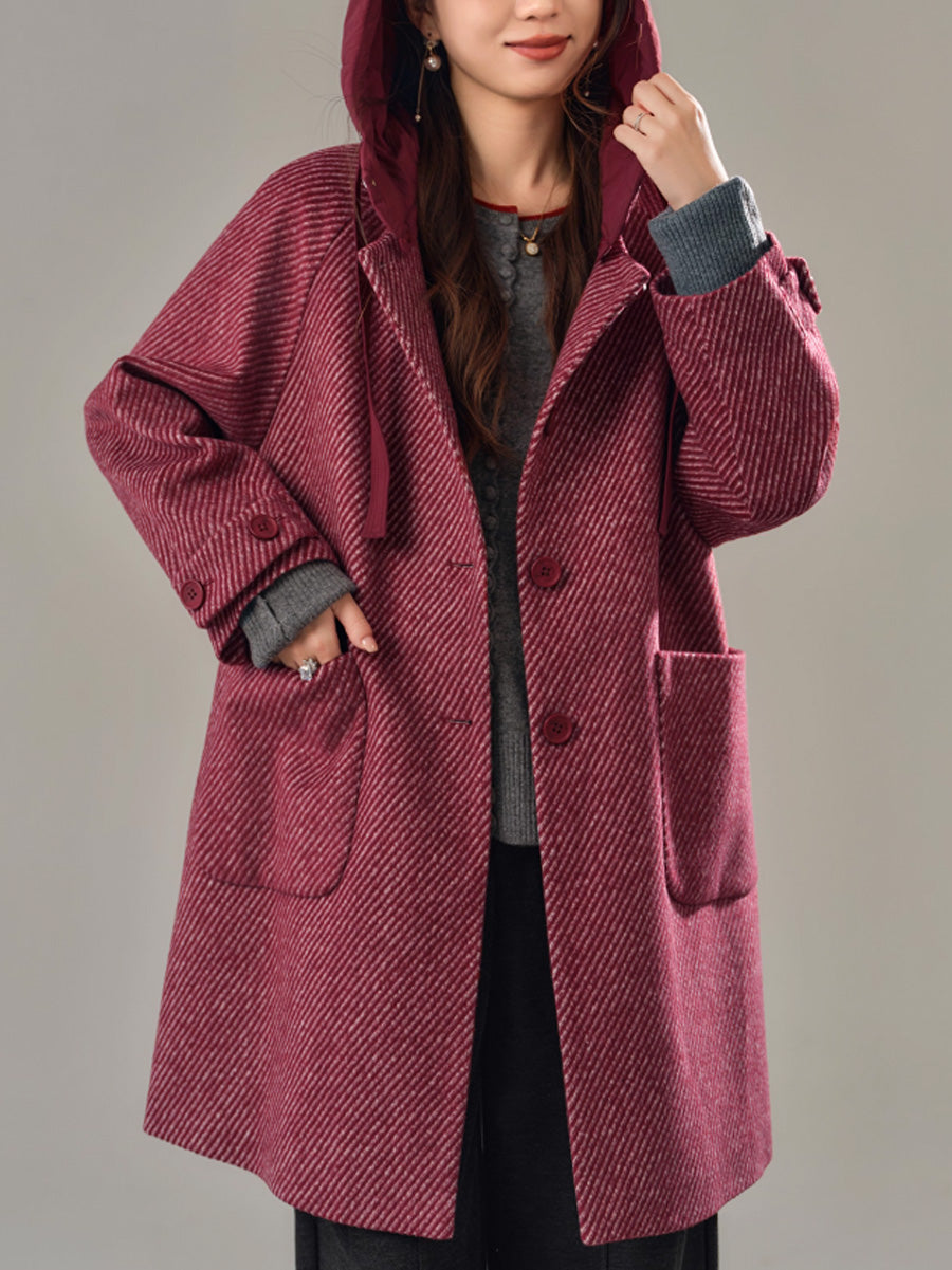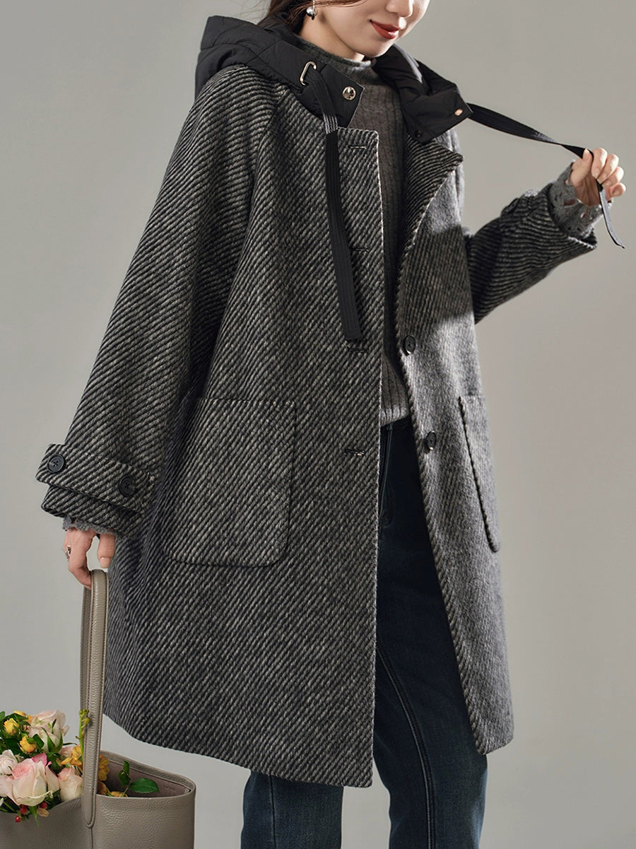 Women Winter Vintage Stripe Spliced Hooded Coat