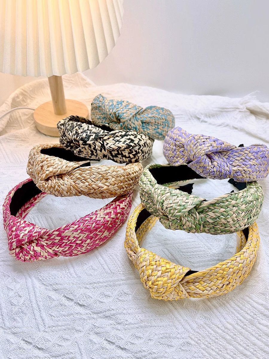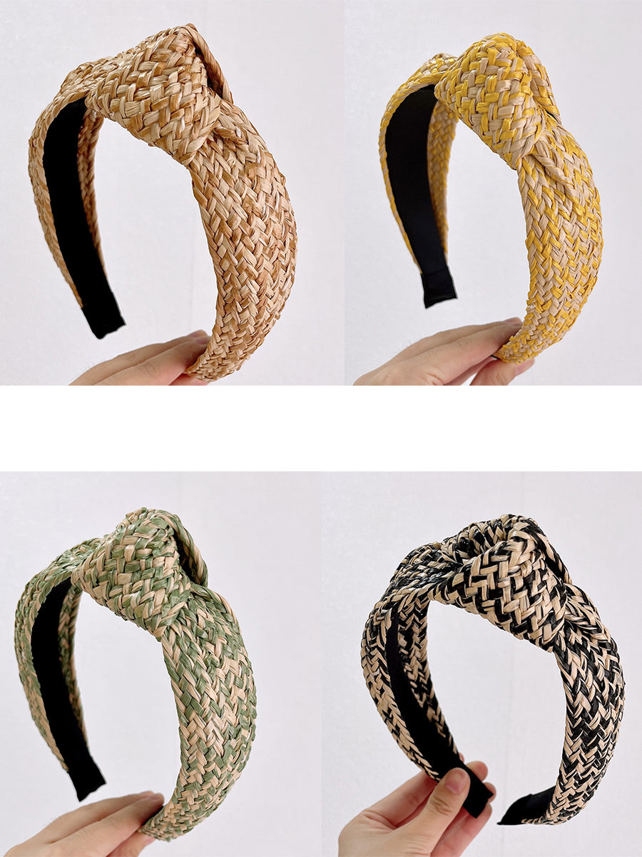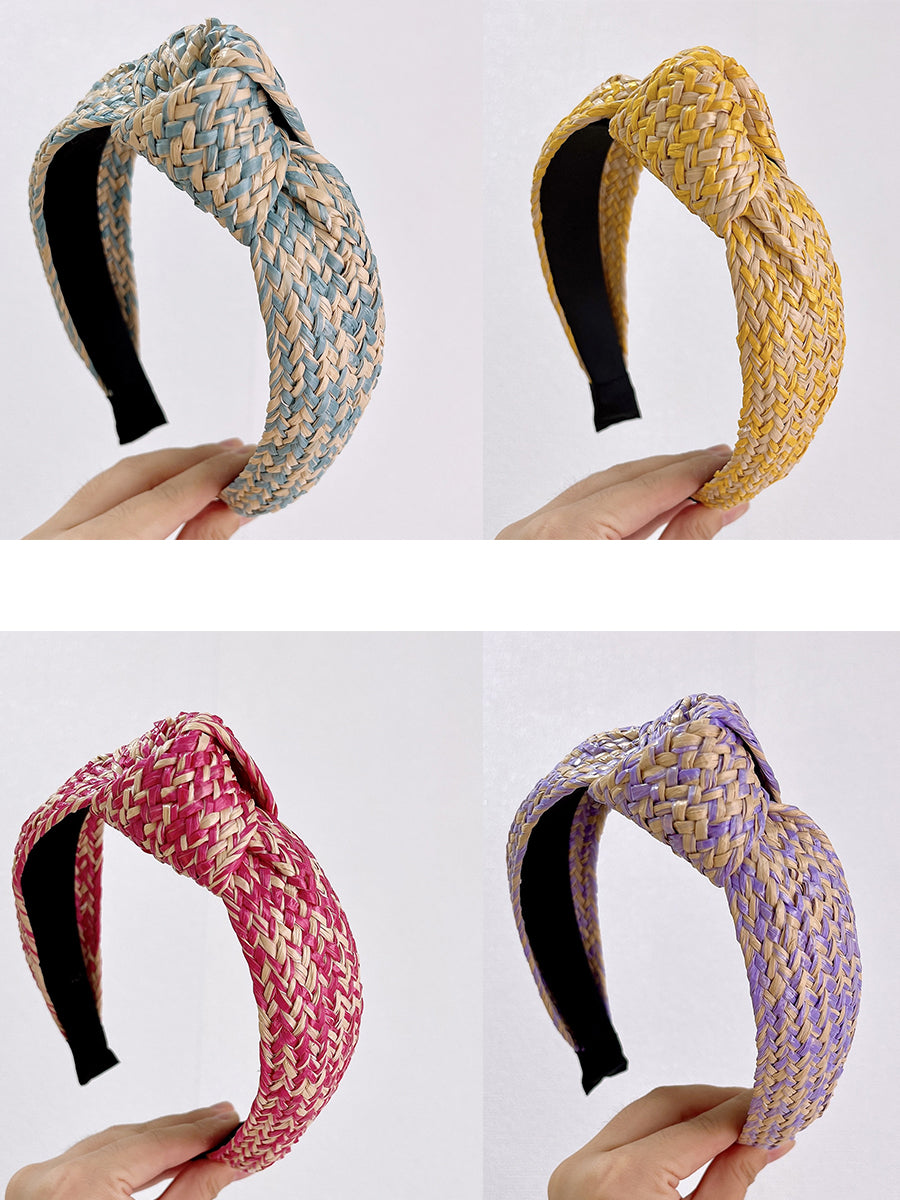アーティスティックなラフィアグラスニットノットヘアバンド 4個セット