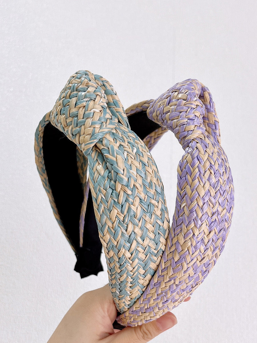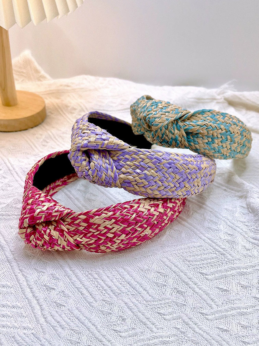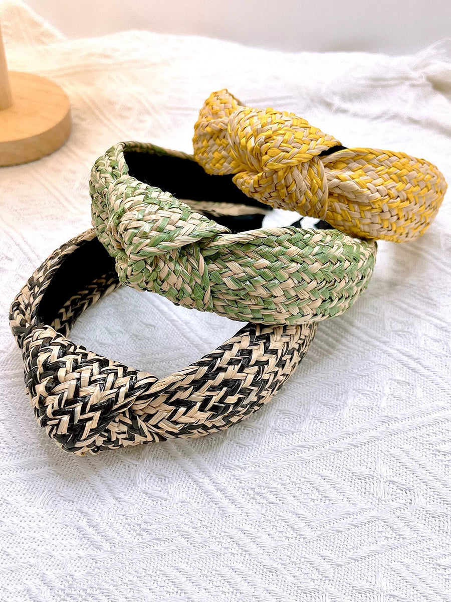 アーティスティックなラフィアグラスニットノットヘアバンド 4個セット
