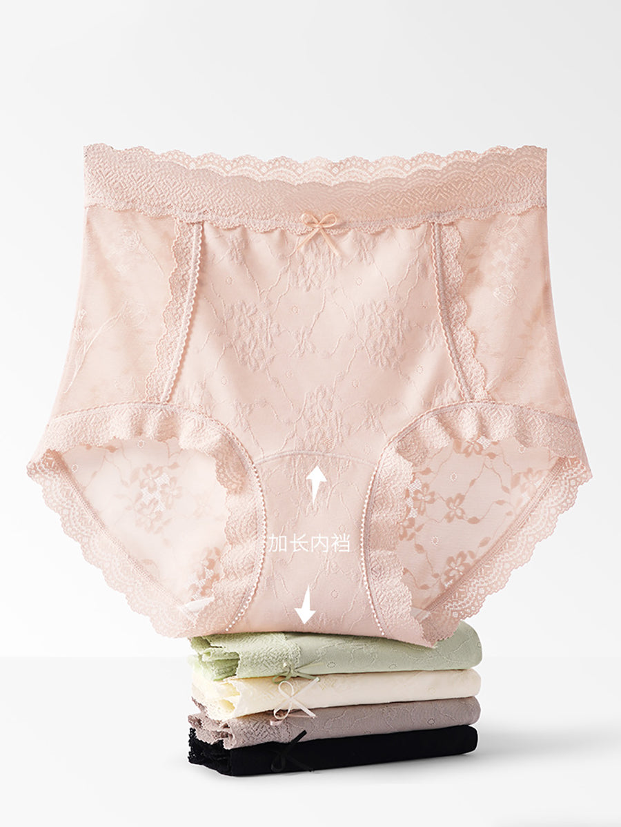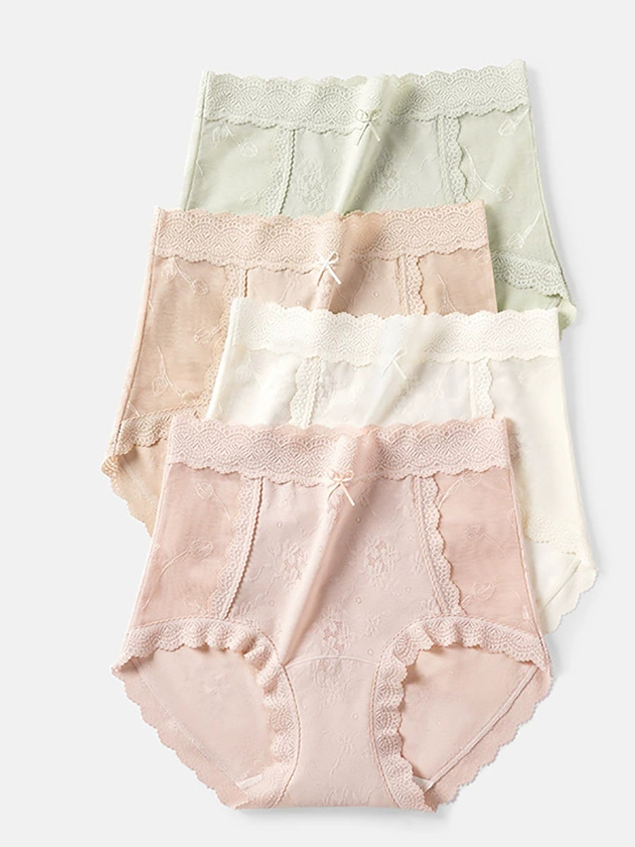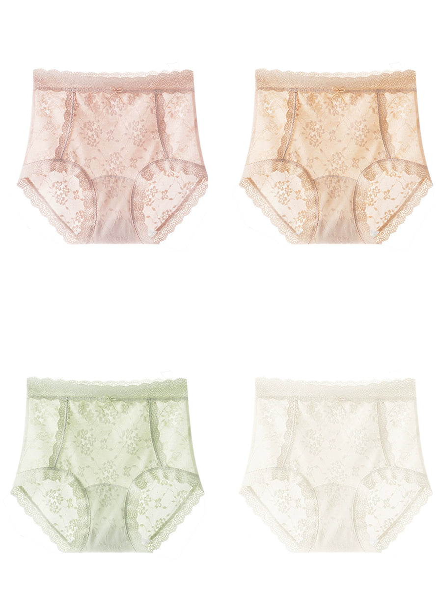 女性用アーティスティックフラワーレースハイウエスト下着4枚セット
