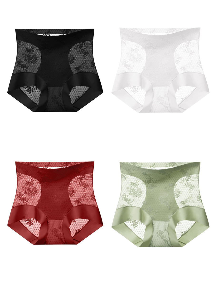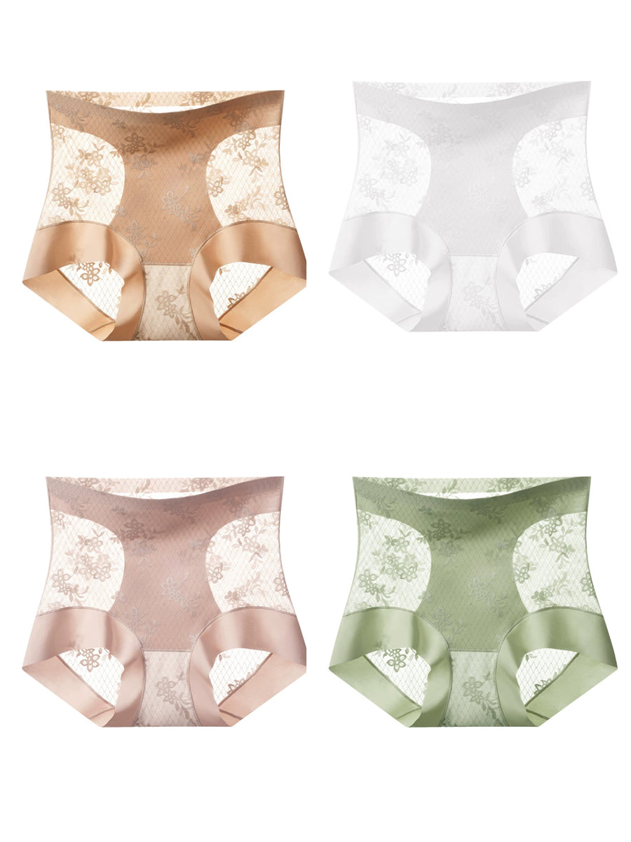 女性用アーティスティックレースハイウエスト下着4枚セット