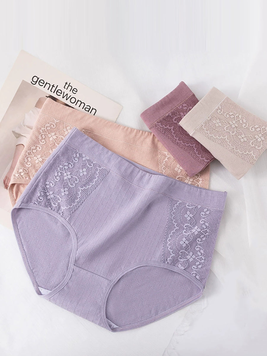 4ピース レディース アーティスティック レース スプライス ハイウエスト 下着