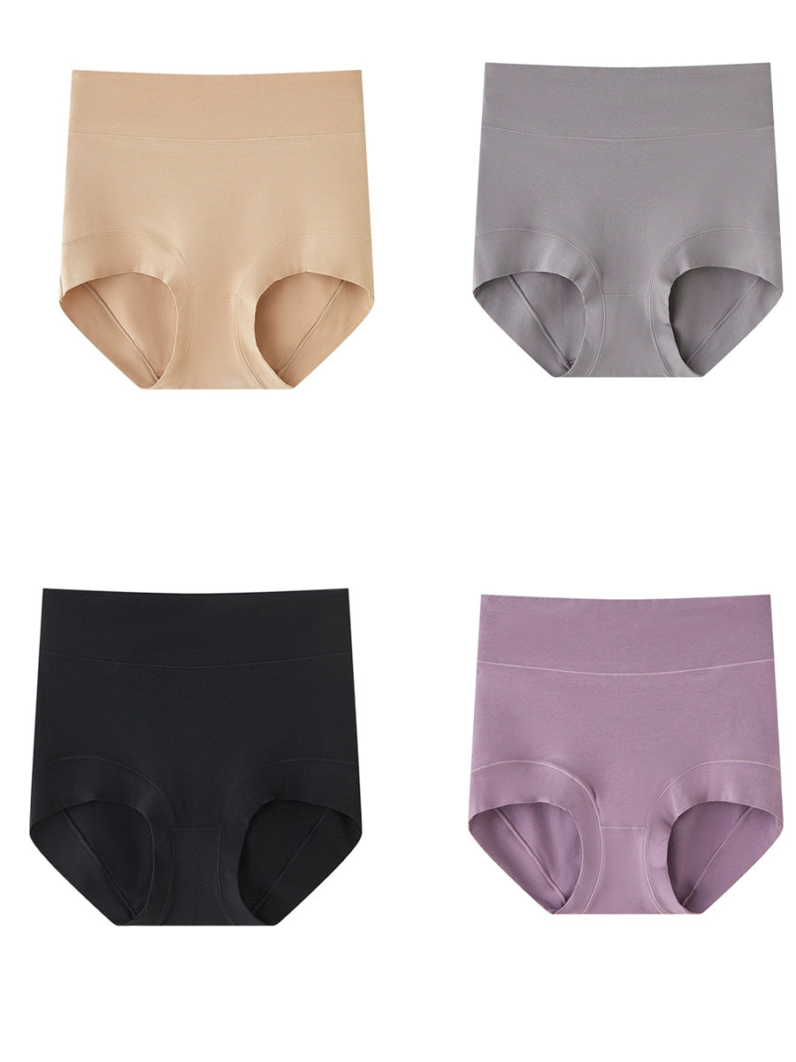 女性用アーティスティックな純色ハイウエスト下着4枚セット