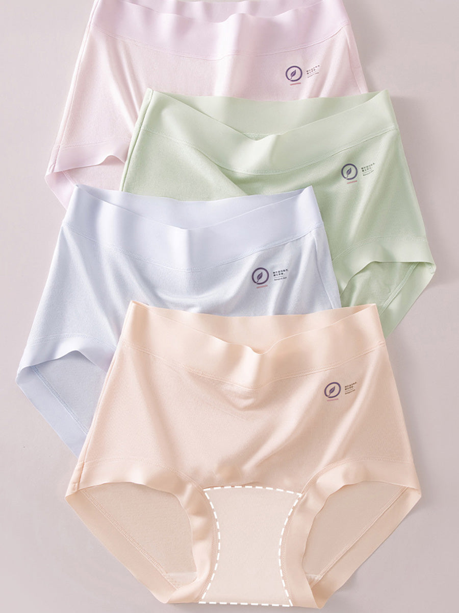 4ピース レディース カジュアル ピュアカラー ハイウエスト 下着