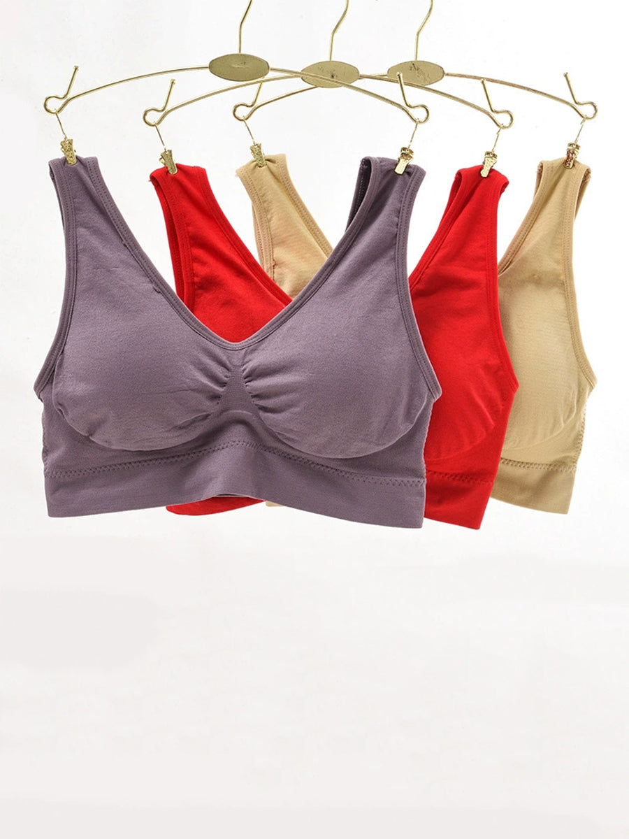 4ピース レディース カジュアル ピュアカラー ワンピース ワイヤレスブラ