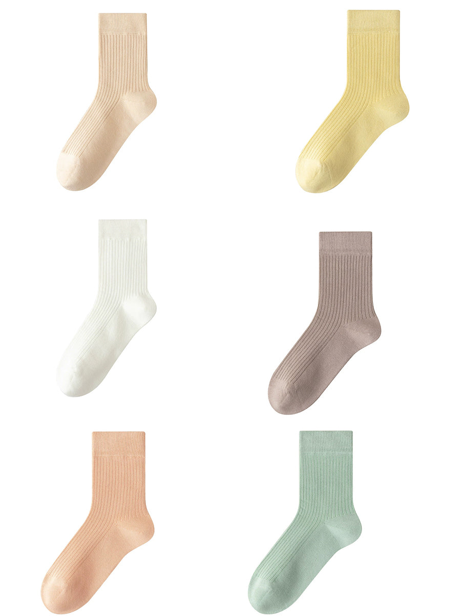 レディース 春 ピュアカラー ソックス 6足組