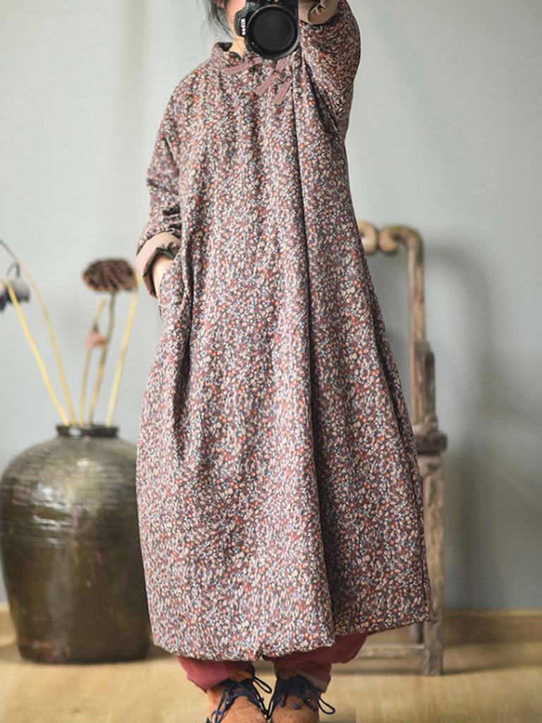 Plus Size - Autumn Women Loose Floral Cotton Dress