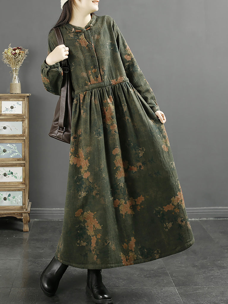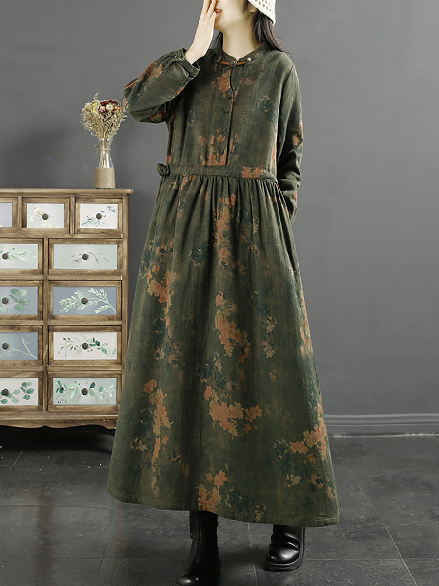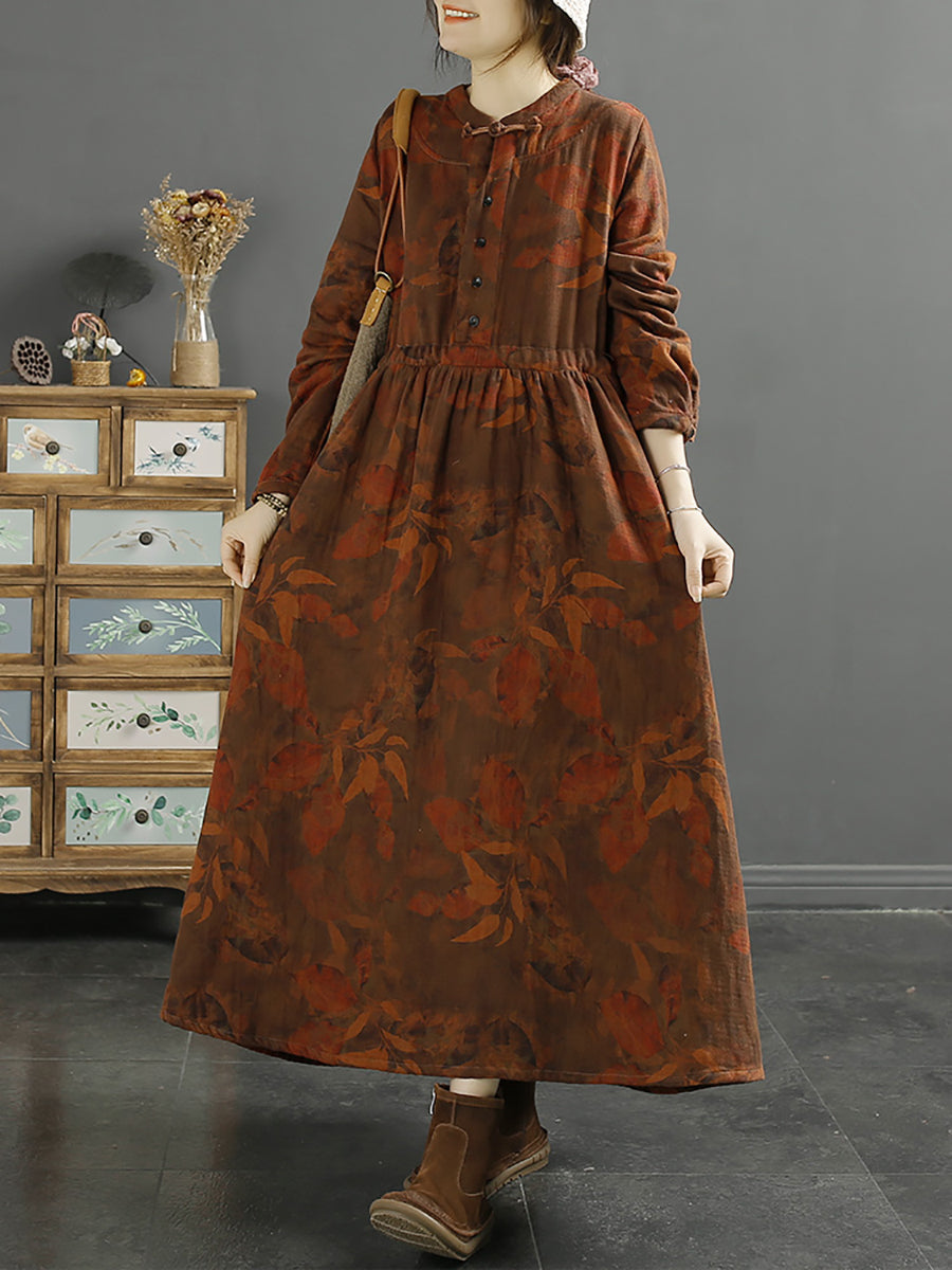 このドレスを着て涼しく過ごしましょう。コットン50%、レーヨン50%の素材を使用し、エレガントなOネック、キュートなフラワープリント、ショートスリーブ、くるぶし丈の裾が特徴です。ポイントは、ボタンの装飾がスタイリッシュでクラシックな雰囲気を添えています。夏のあらゆるシーンにぴったりです。