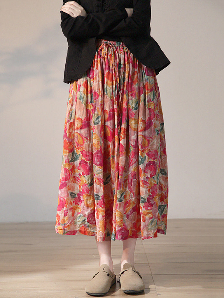 This skirt is made from 100% Ramie fabric with an elastic waist and drawstring closure for an adjustable fit. The ankle-length A-Line silhouette features a vintage, artsy floral pattern for a fashionable look ideal for the Spring and Summer seasons.