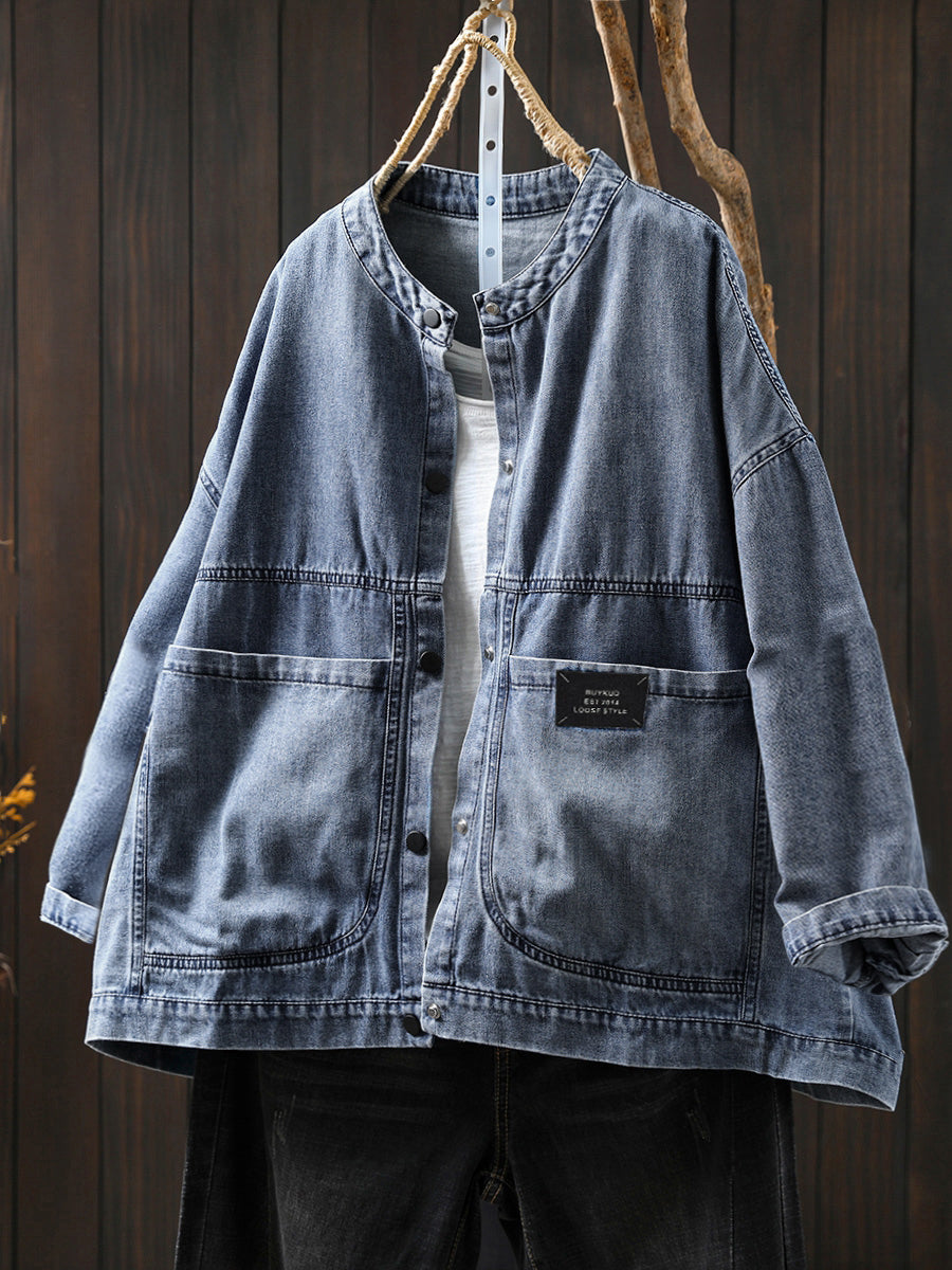 プラスサイズ レディース 夏 レトロ ピュアカラー スタンドカラー デニムコート