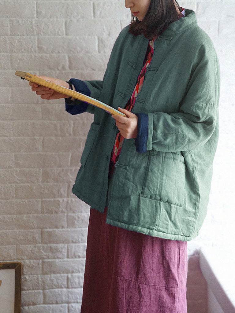 This blend of high-quality linen and rayon is both durable and comfortable, providing a classic look even in harsh weather conditions. The stand collar and full-length sleeves will keep you protected and warm.