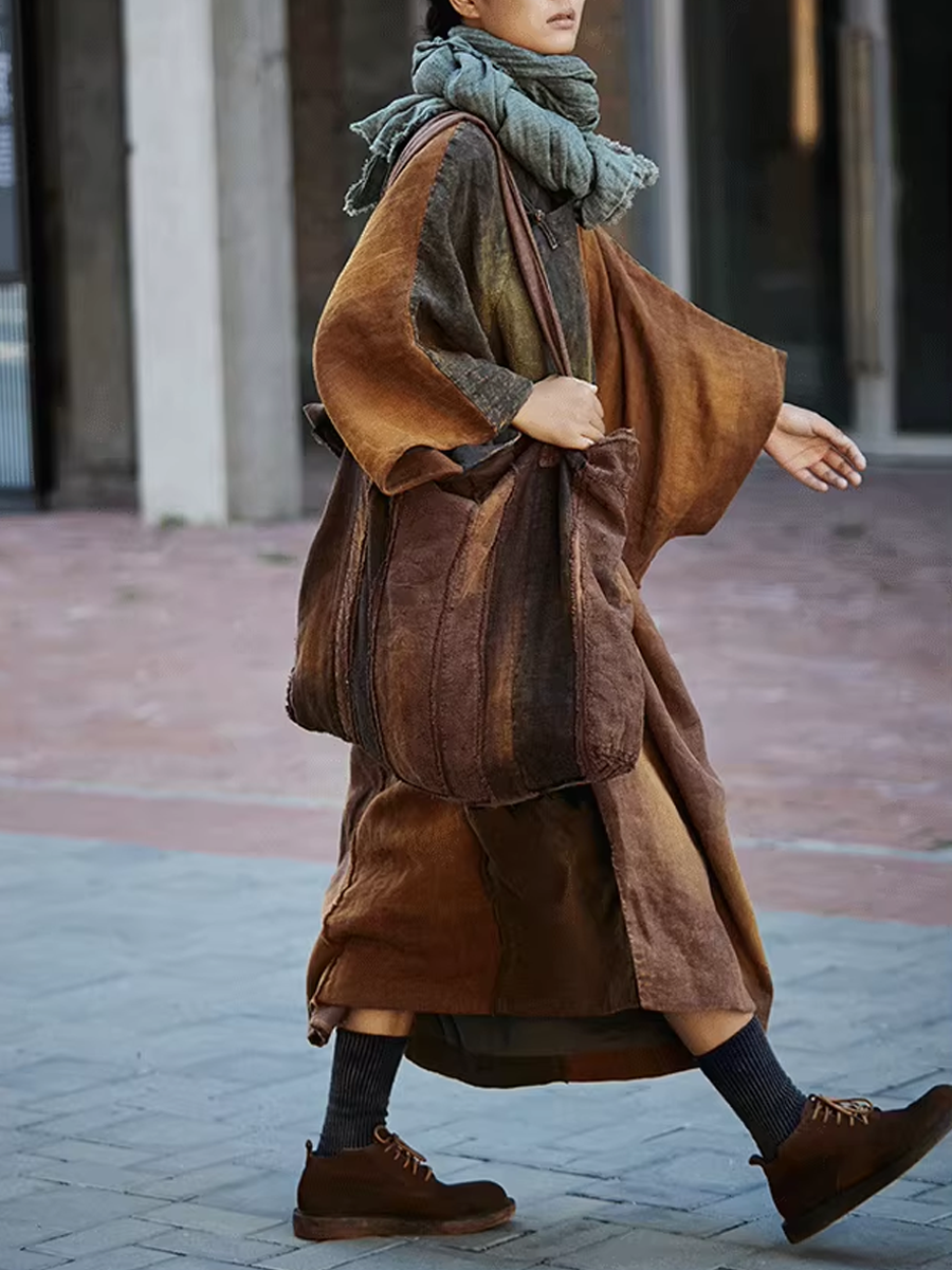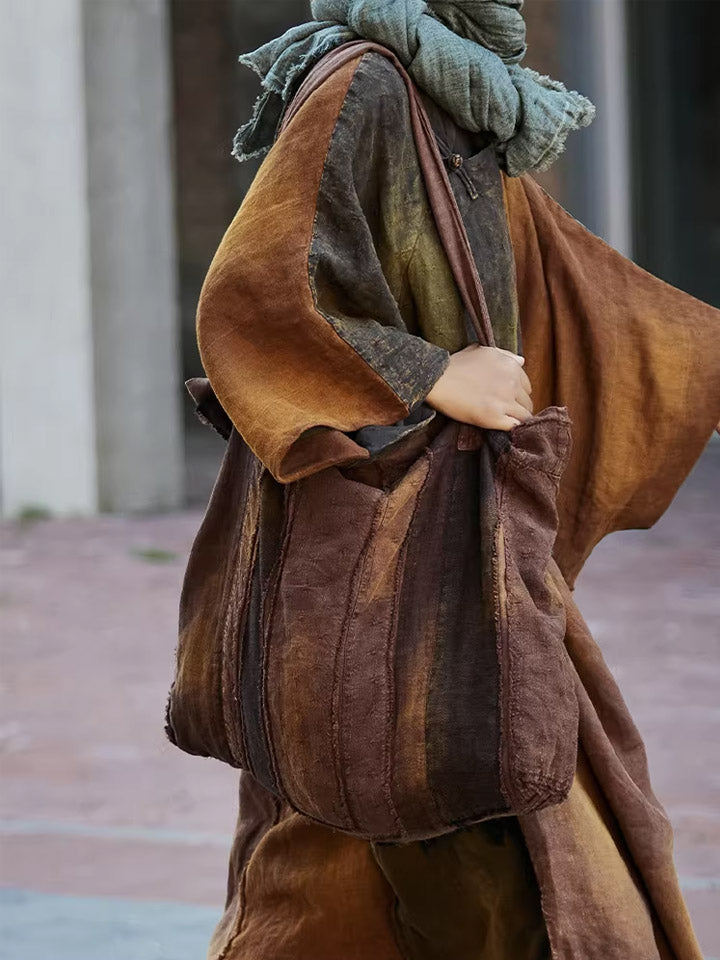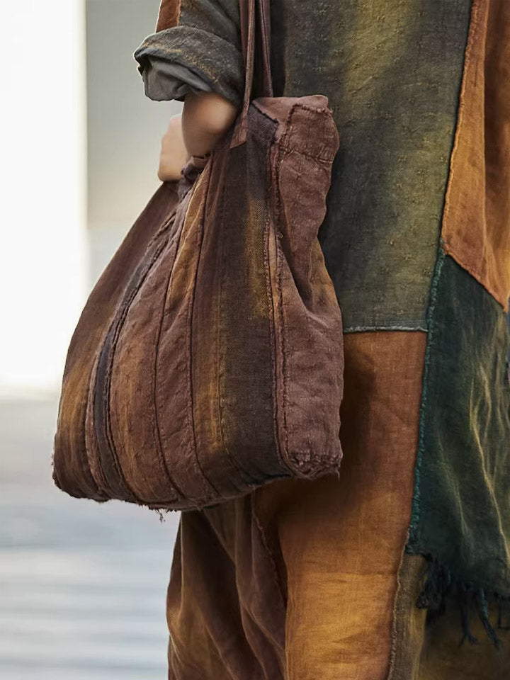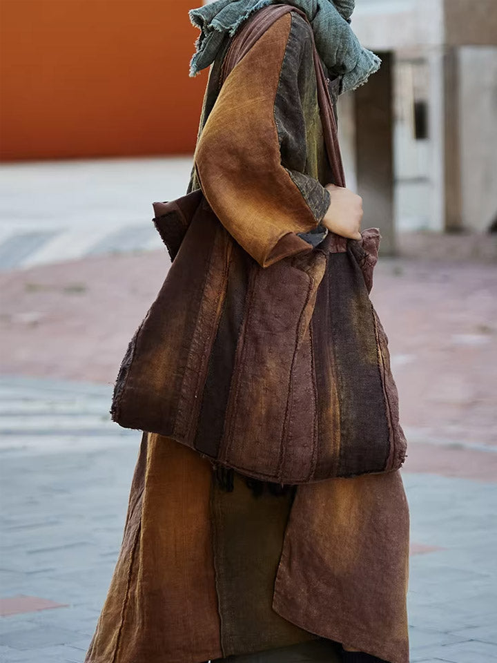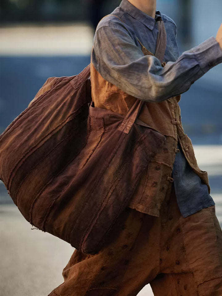 1106 レトロ 植物染め スプライス ブラウン パッチワーク ショルダーバッグ