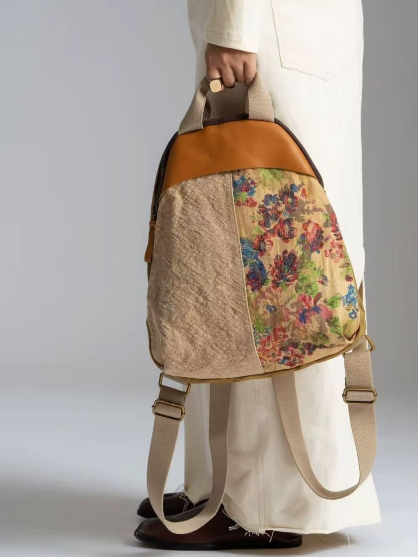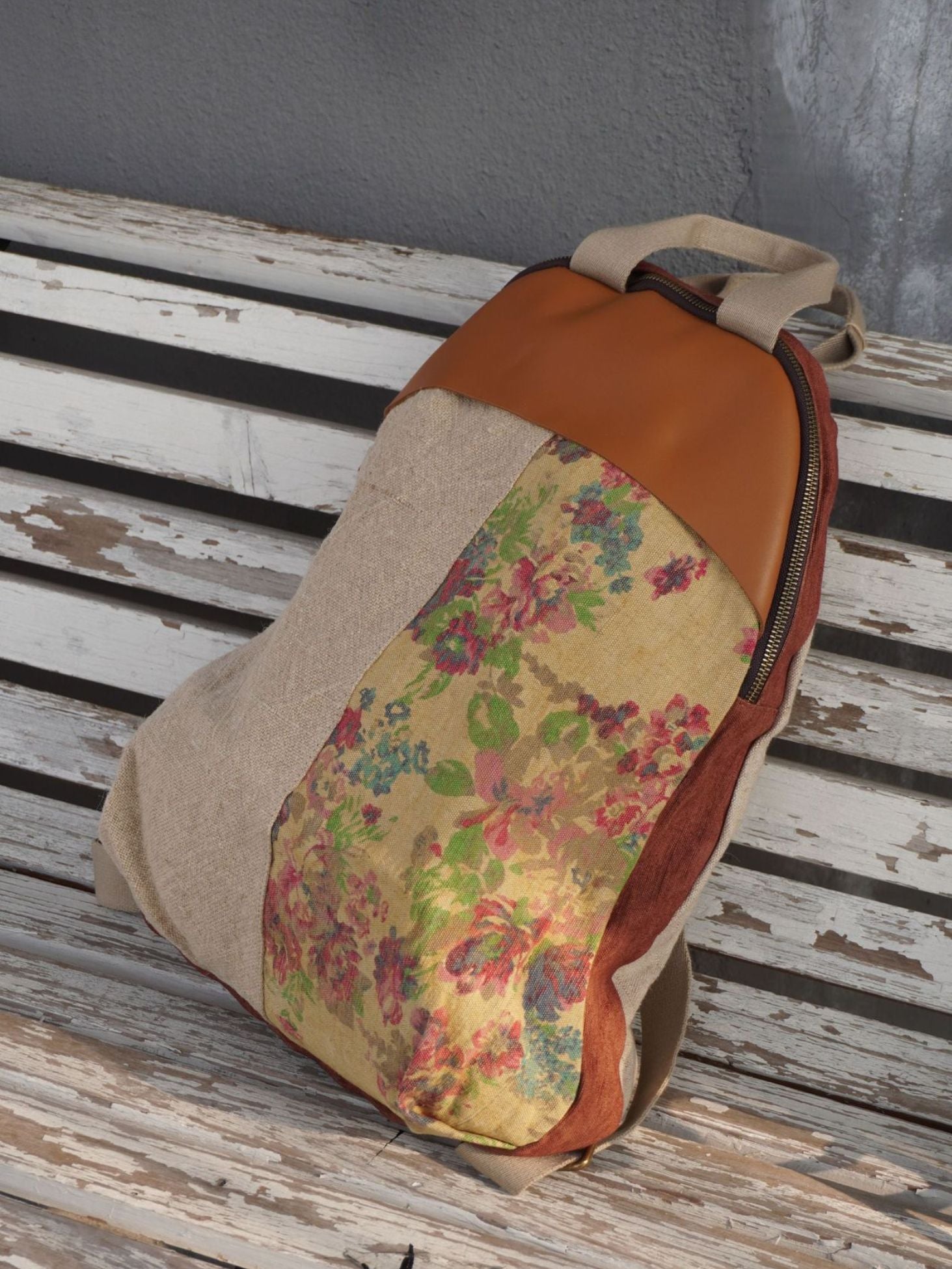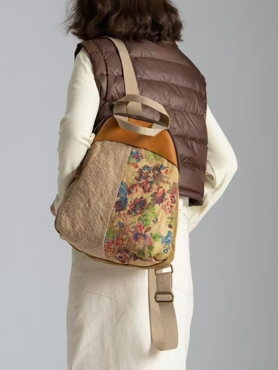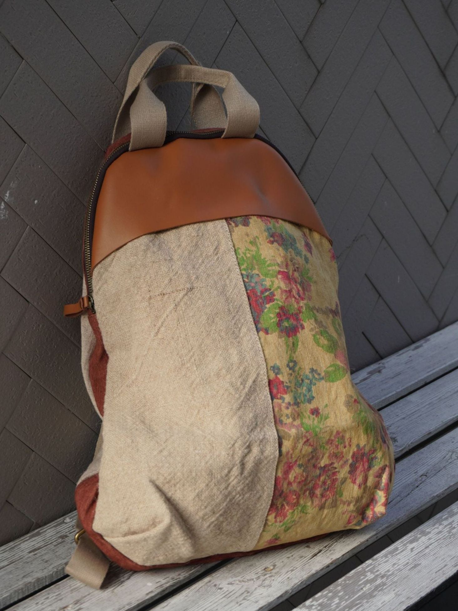 03055 ヴィンテージリネン スプライスレザー バックパック