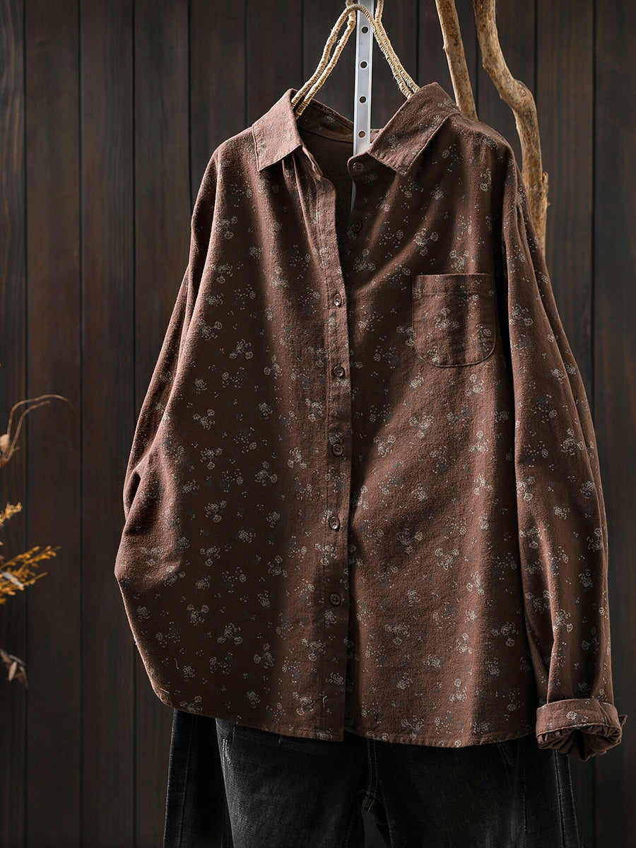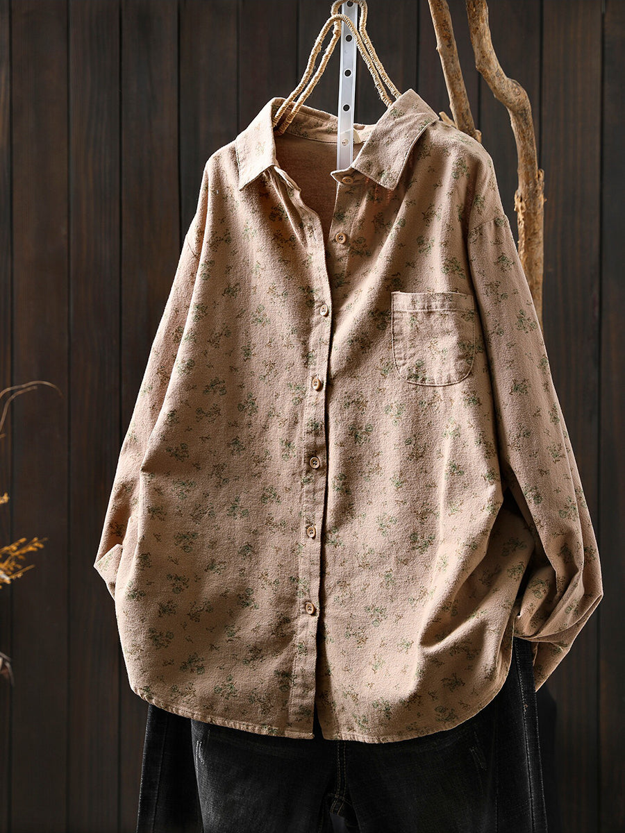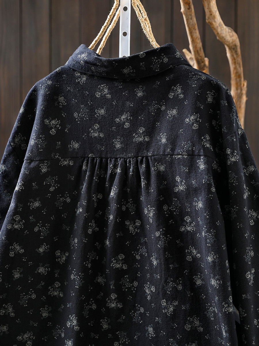 レディース アーティスティック 秋 花柄 ターンダウンカラー コットンブラウス